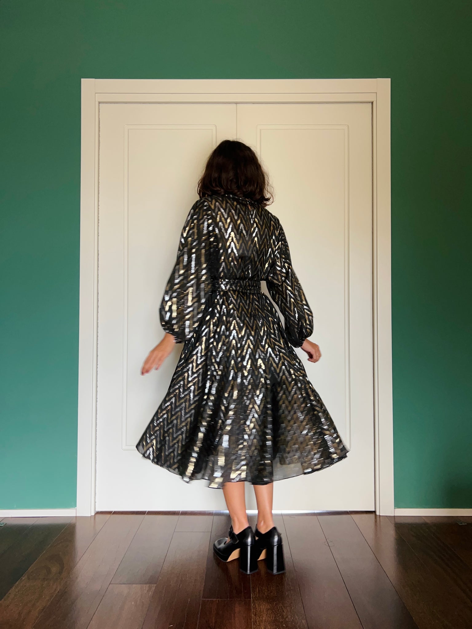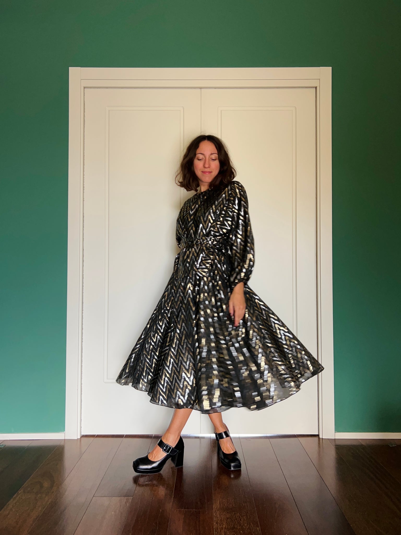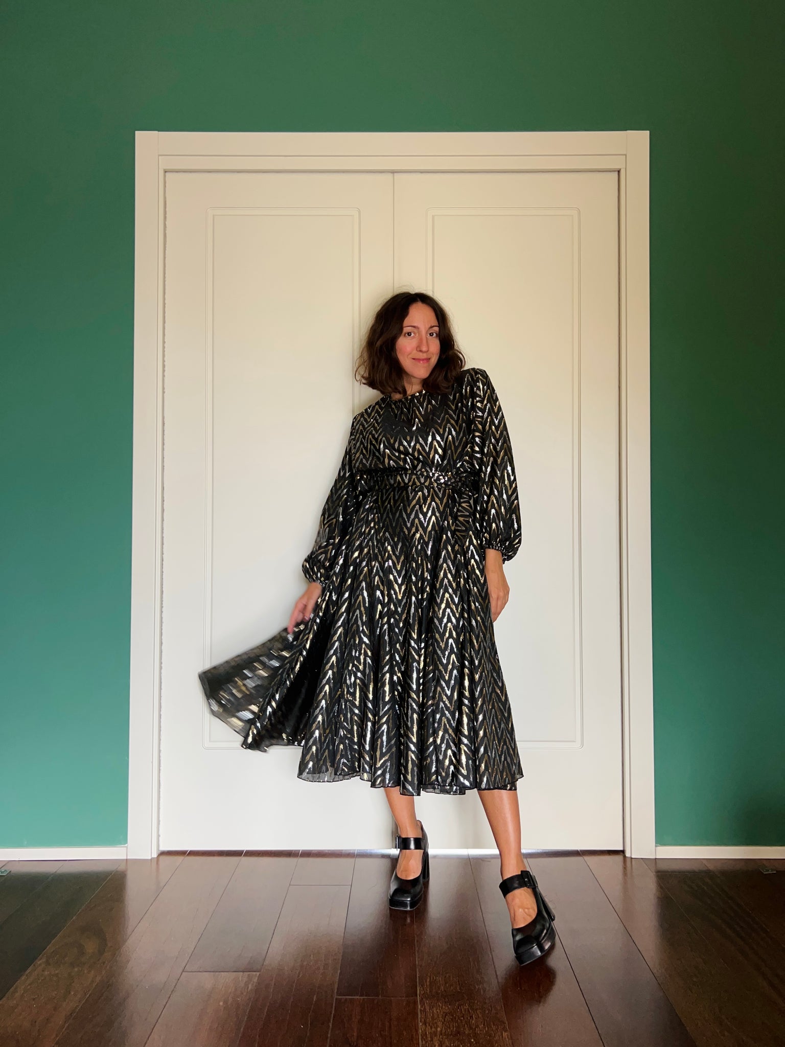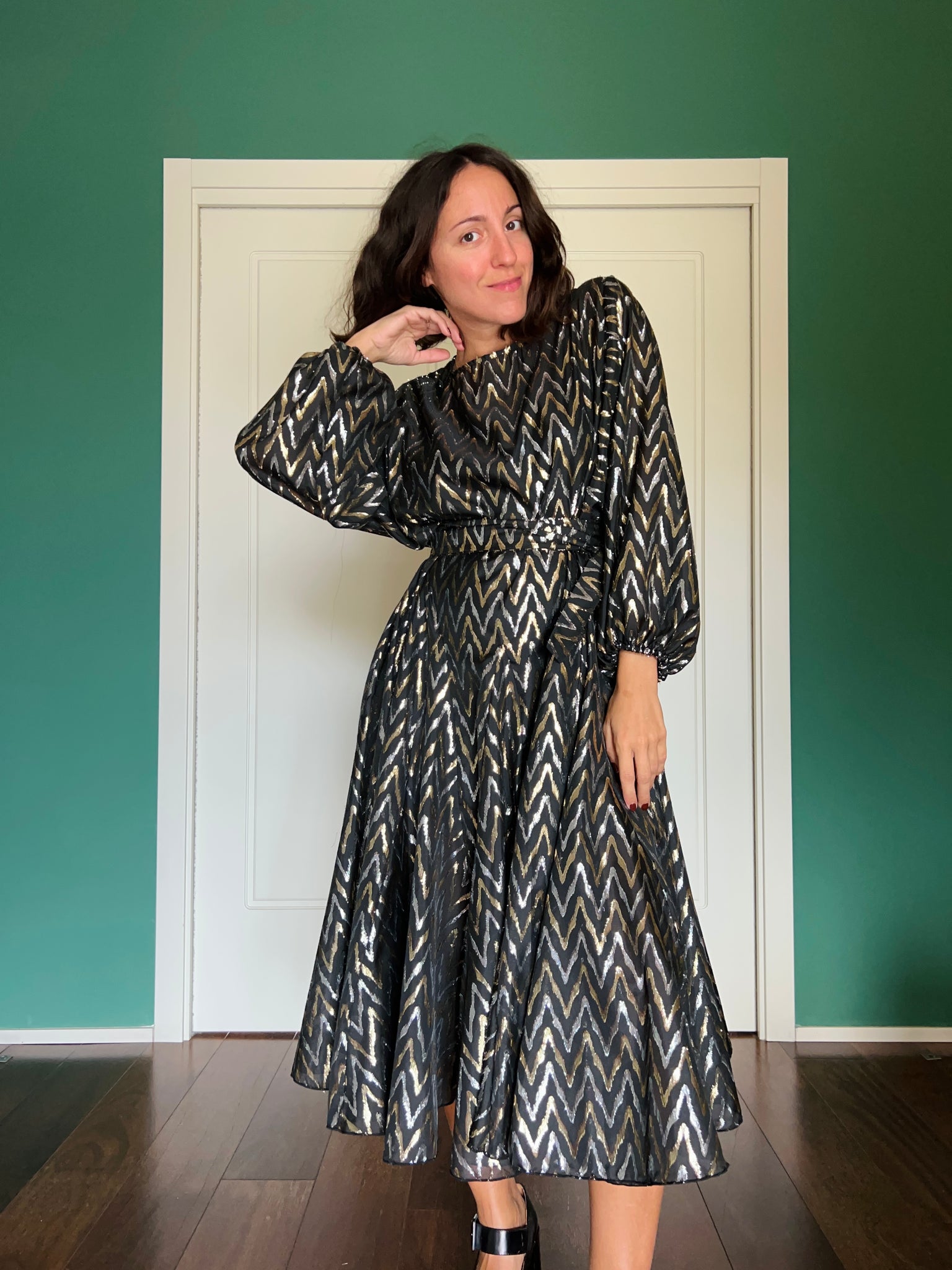Abito sartoriale by Chiara Luppi realizzato con tanti metri di voile, con tanti spicchi nella gonna che creano movimento, e nastro lungo da legare in vita.
