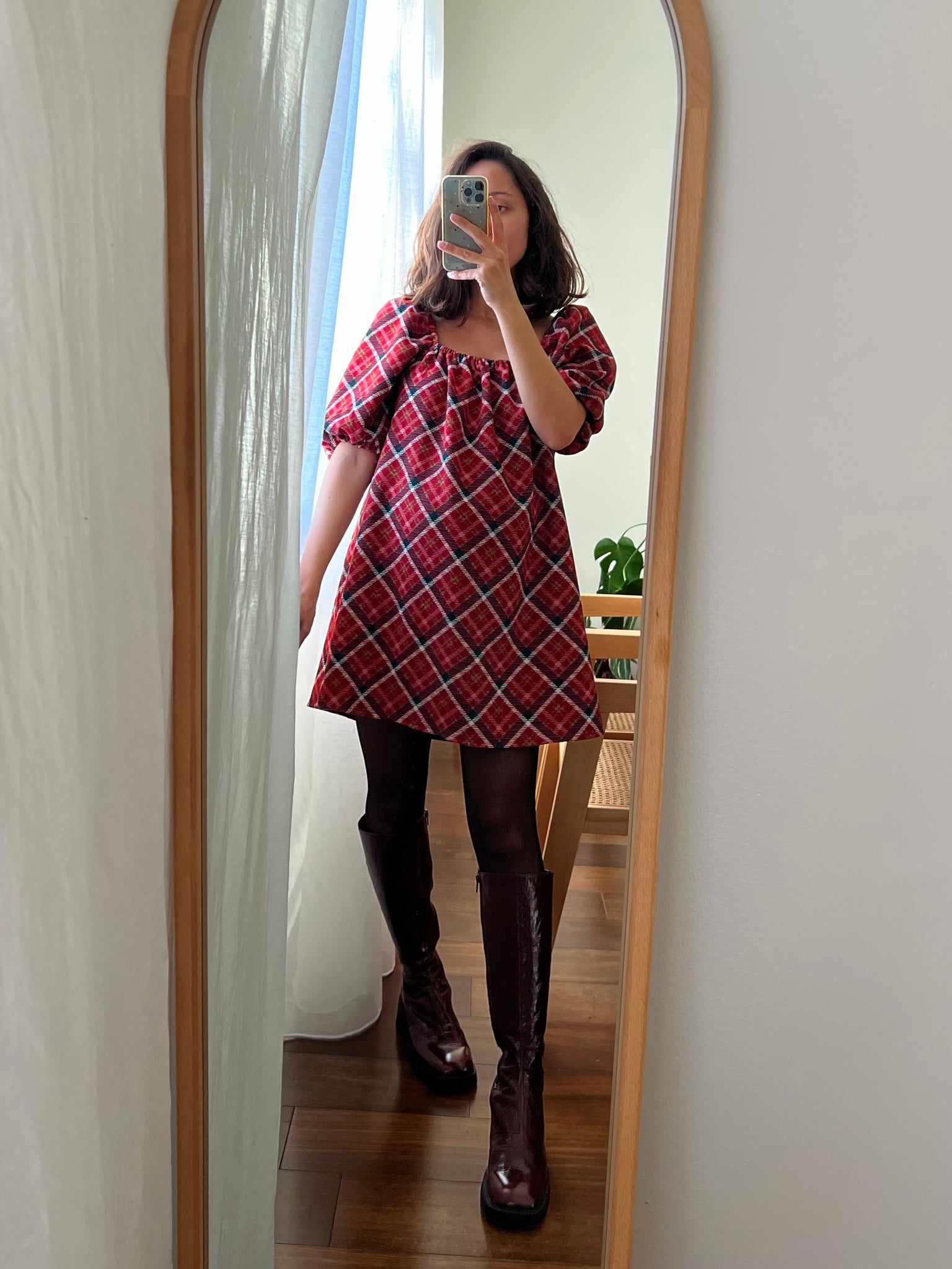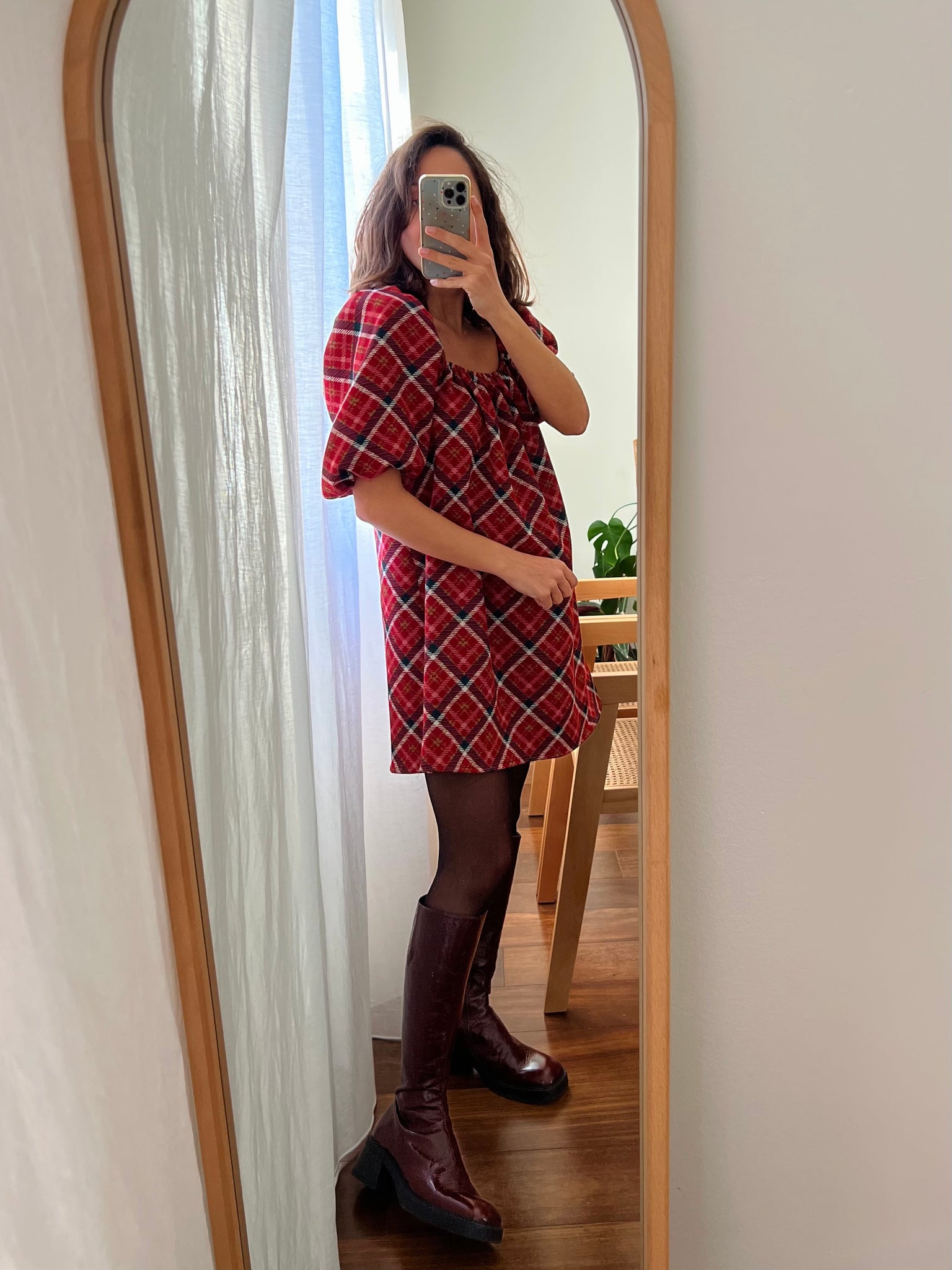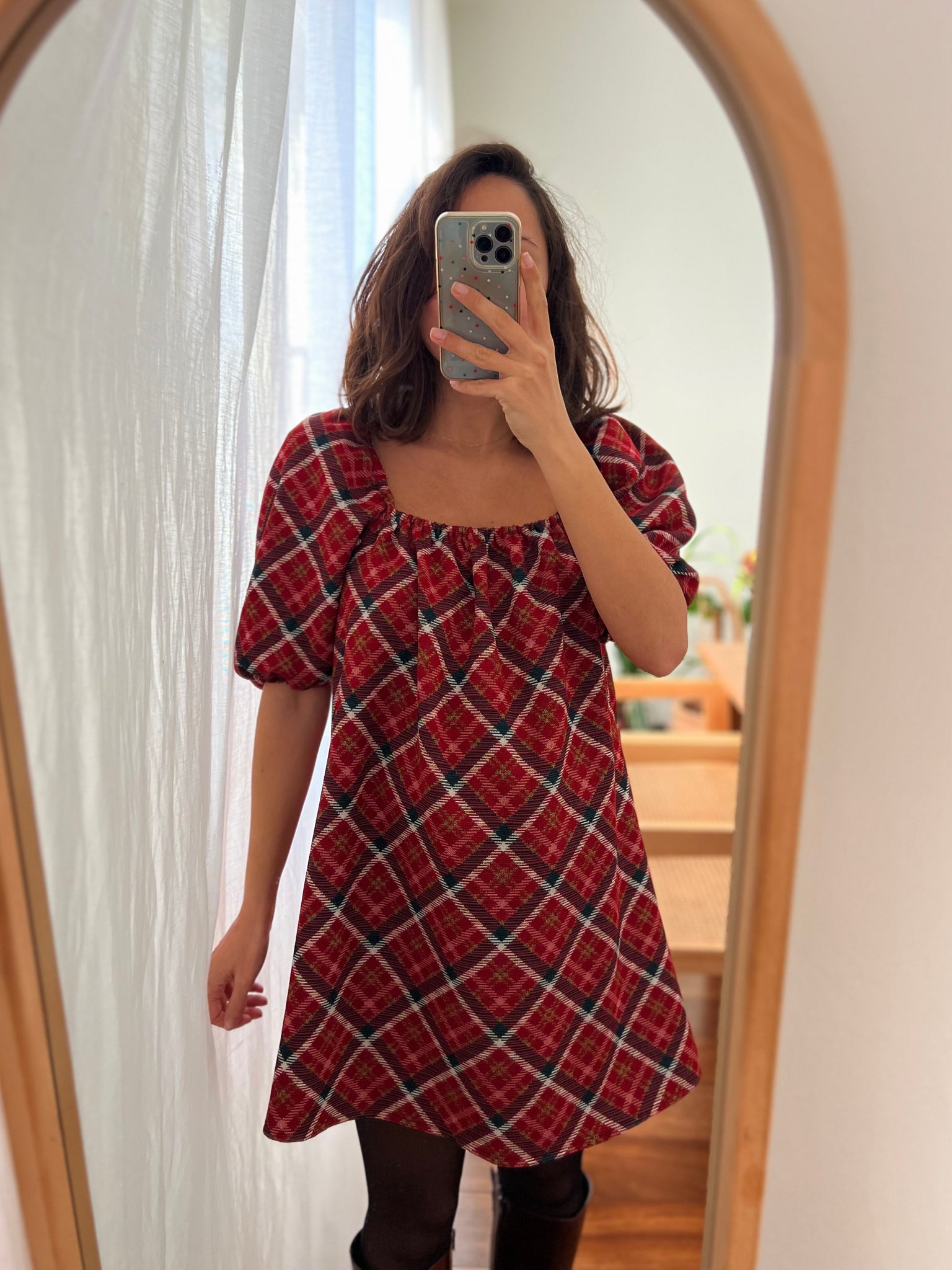 Abito corto tartan rosso