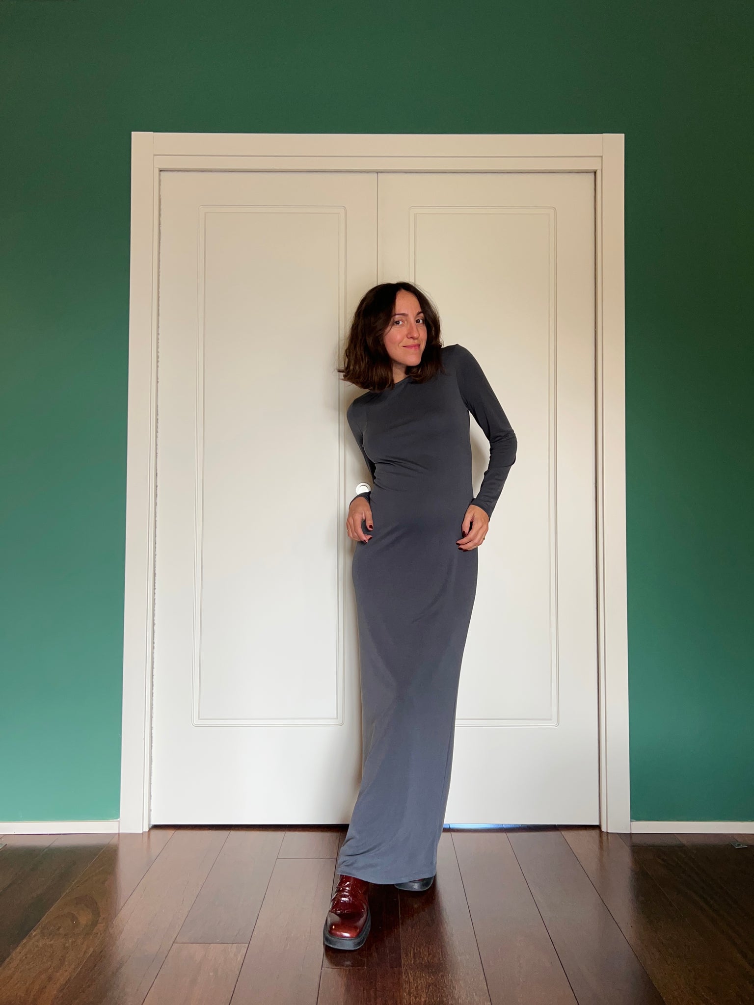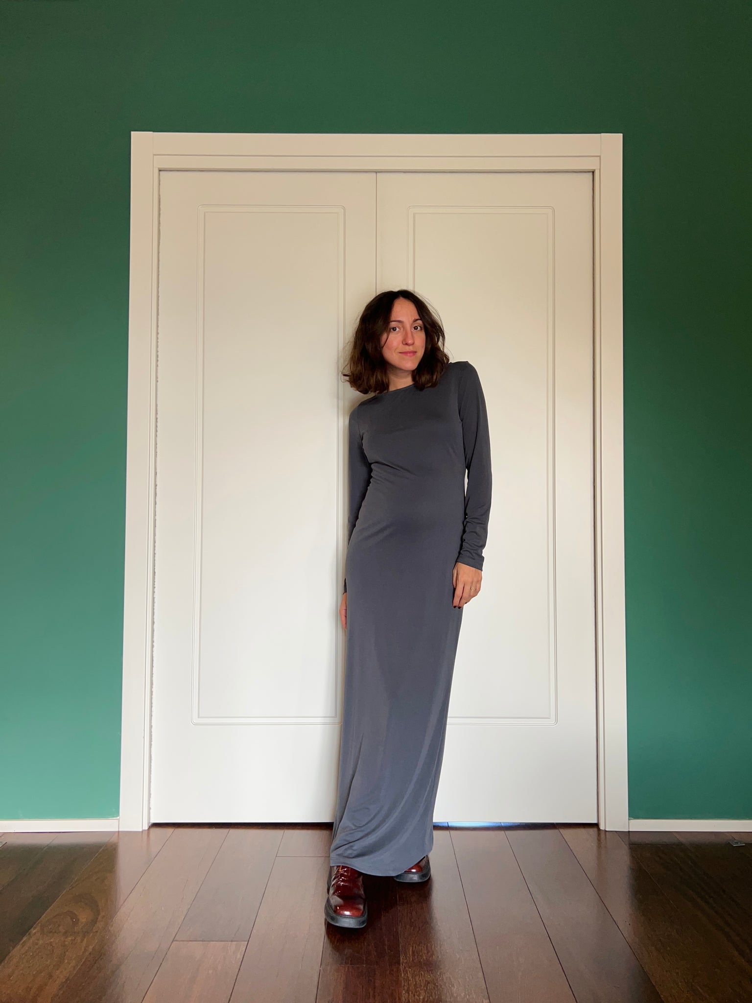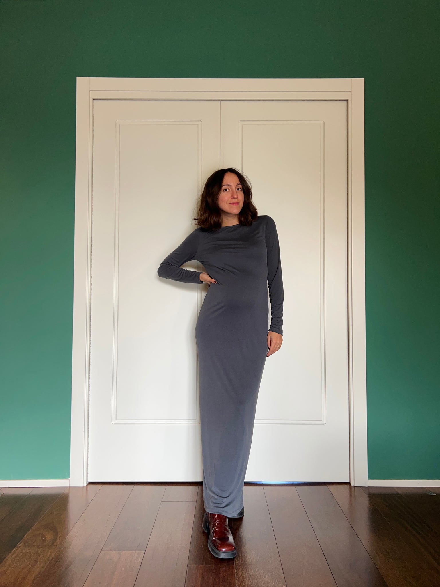 Abito sartoriale by Chiara Luppi, nuovo modello stretto a manica lunga, in viscosa elasticizzata.