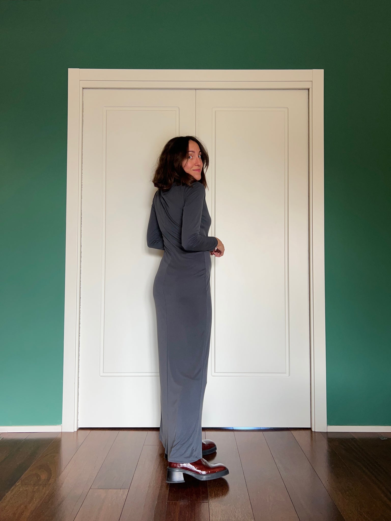 Abito lungo a costine grigio