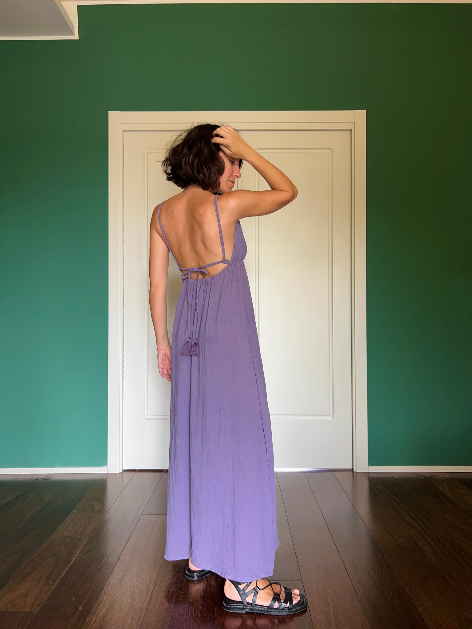 Abito lungo con la schiena nuda • lavanda