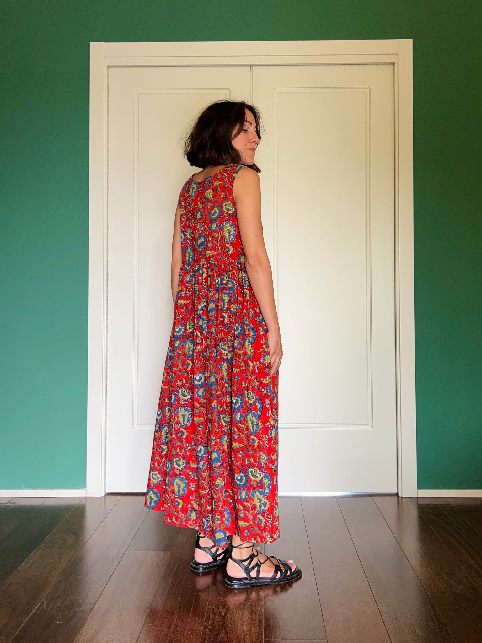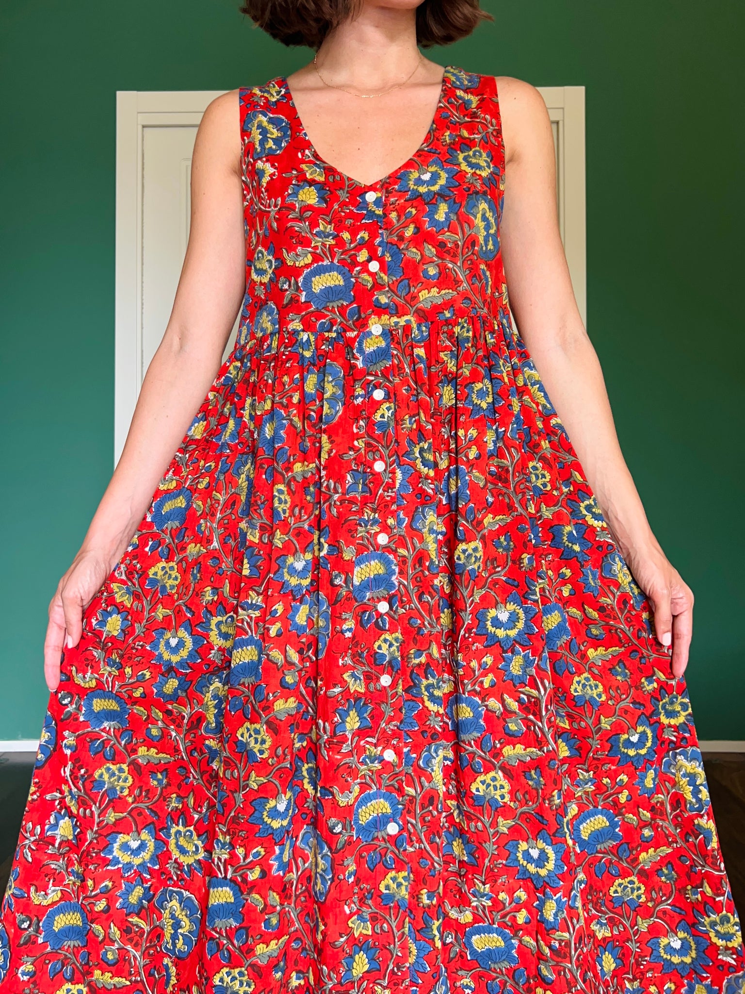 100% cotone stampato a mano con la tecnica del blockprinting.