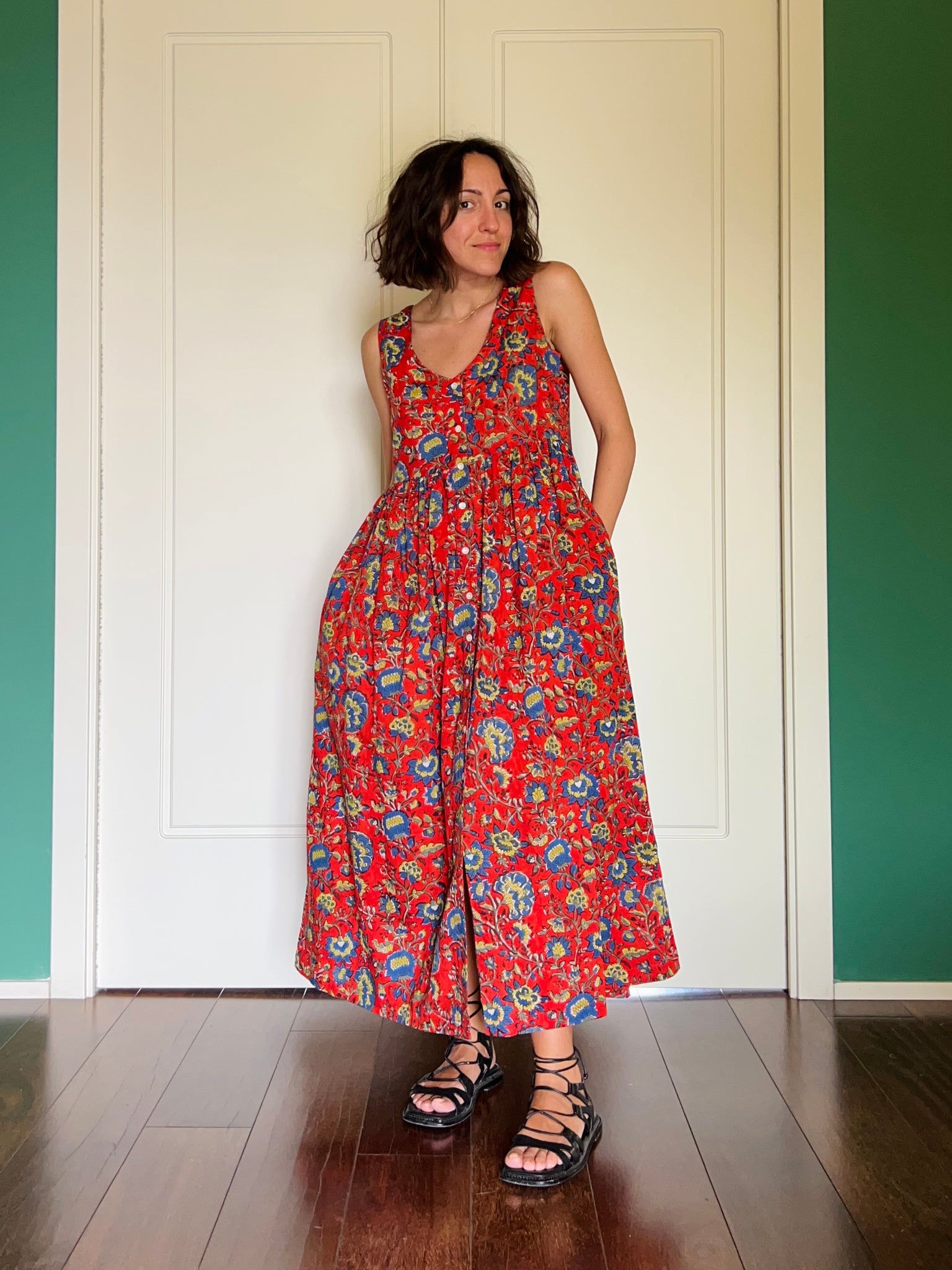 Abito ampio con tasche e bottoni su tutta la lunghezza.
