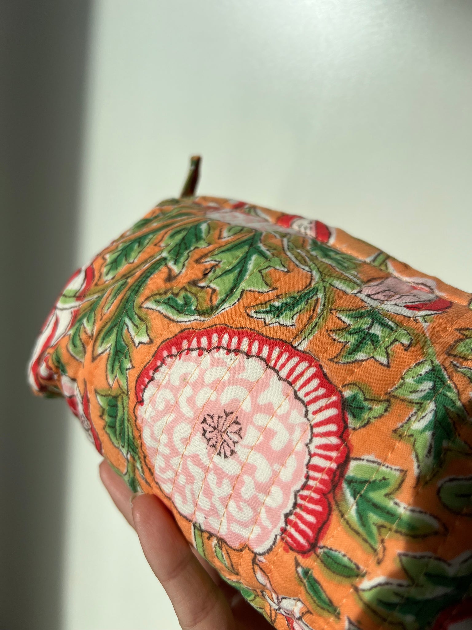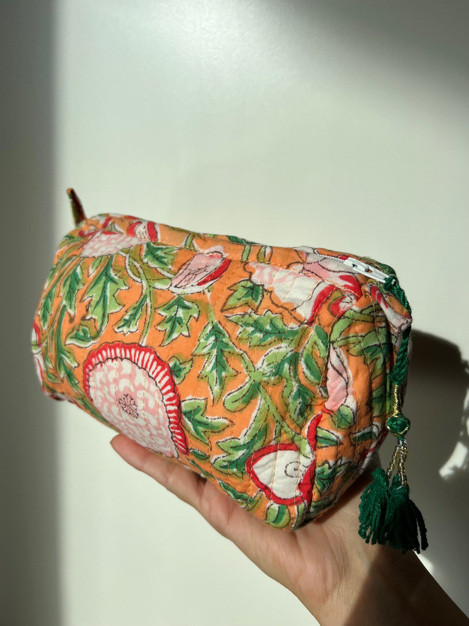Trousse in cotone indiano con stampe block printed.