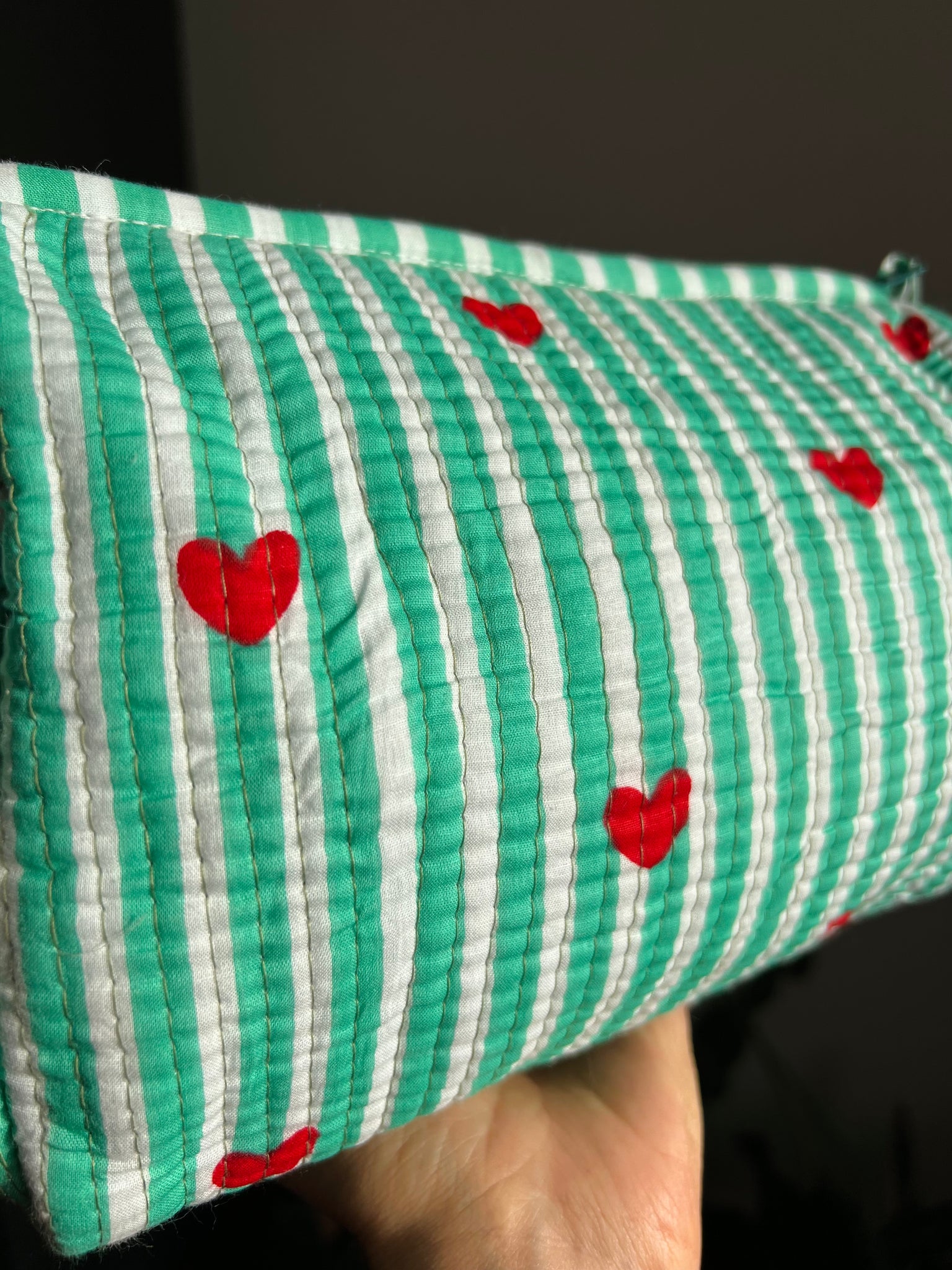 Beauty case di cotone cuori verde smeraldo