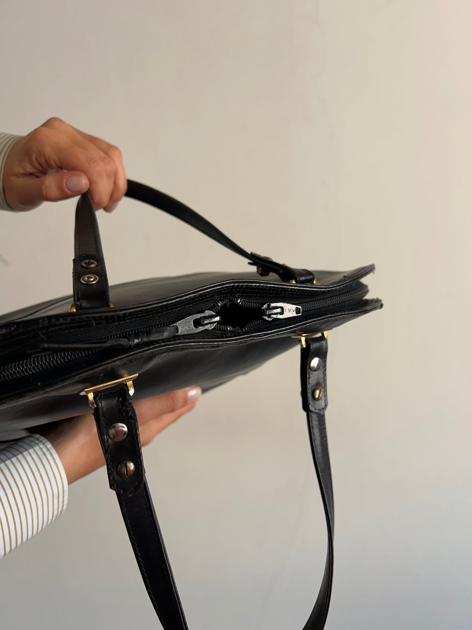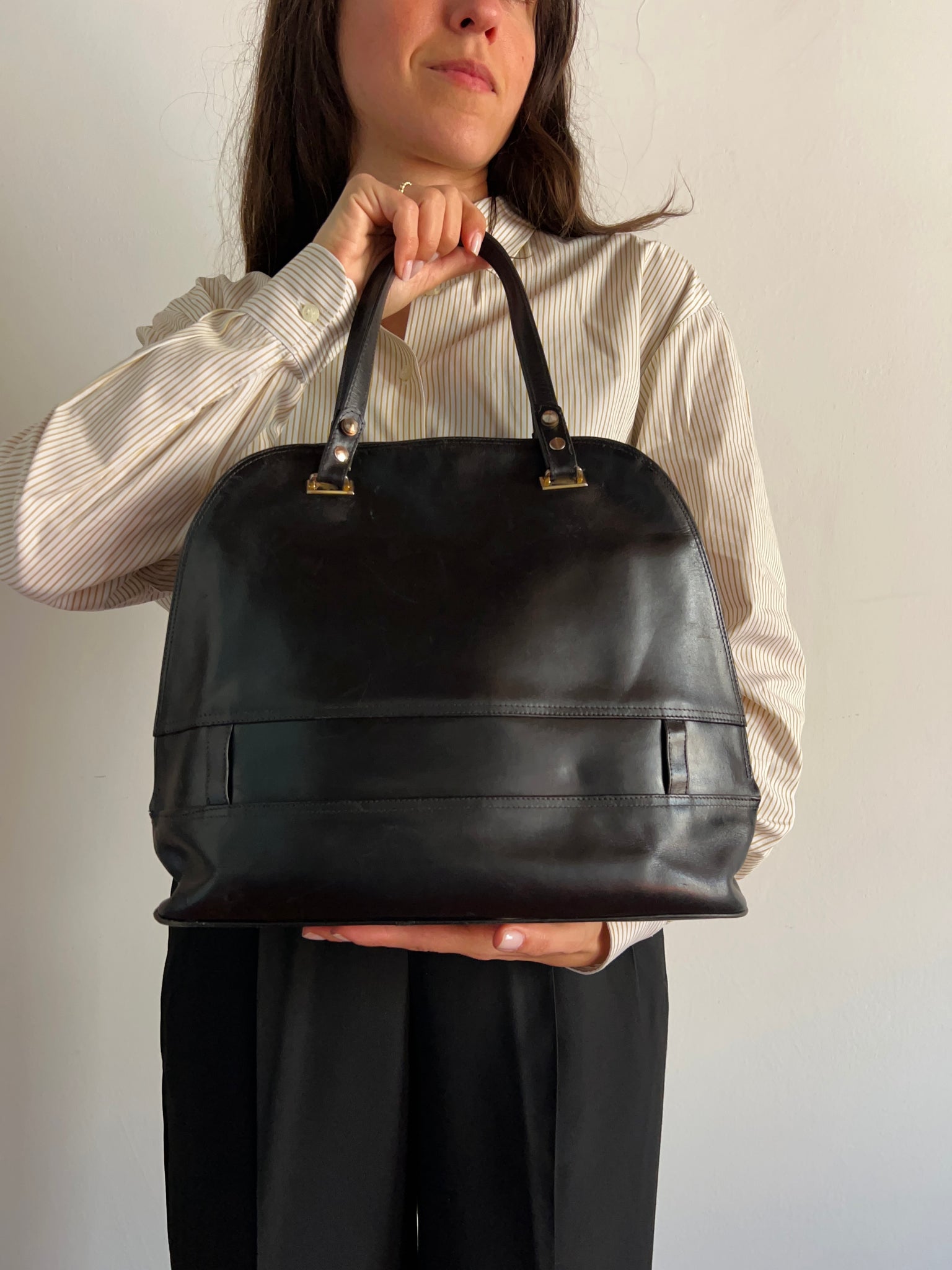 Borsa vintage in vera pelle, con chiusura con doppia cerniera.