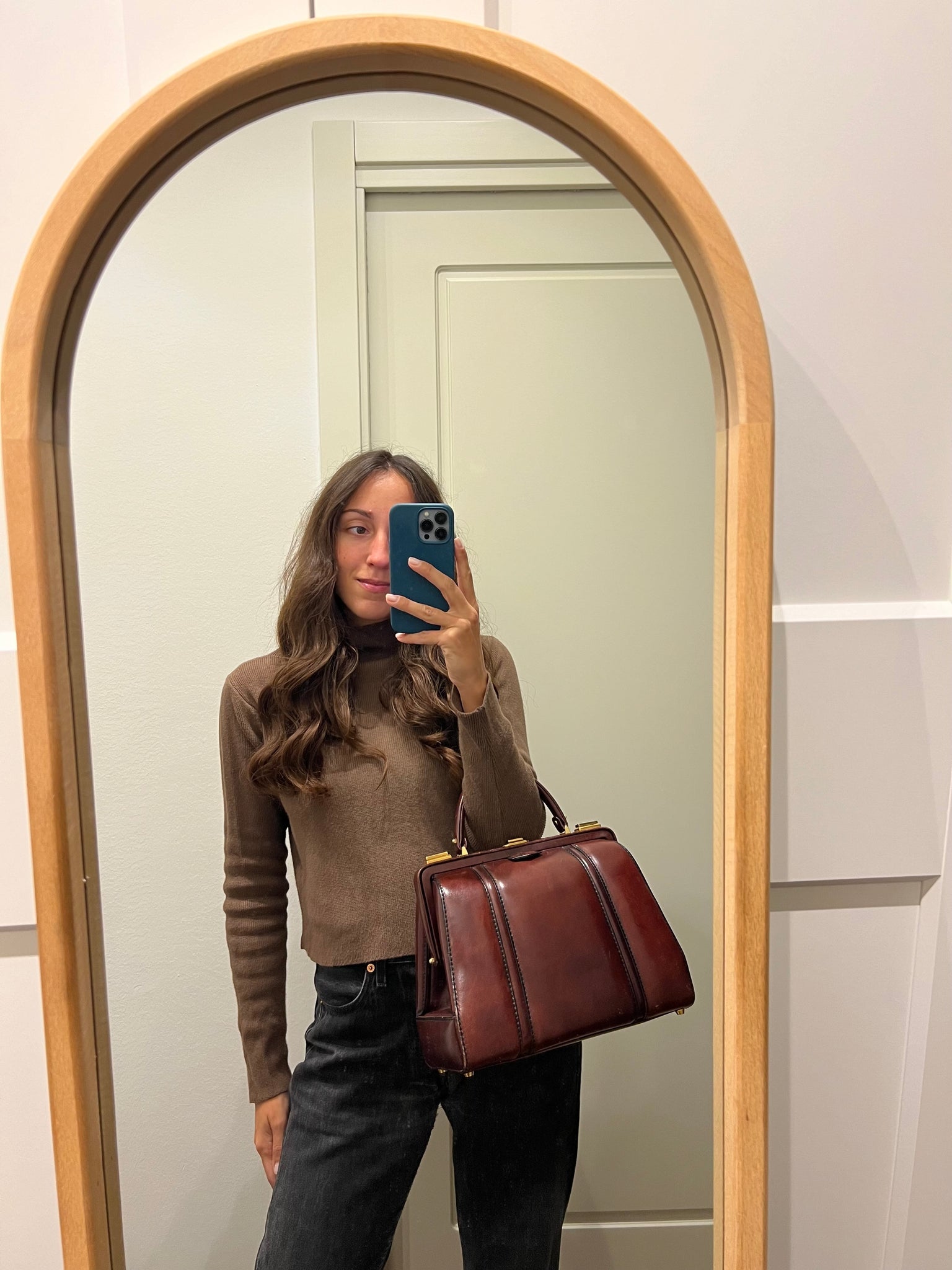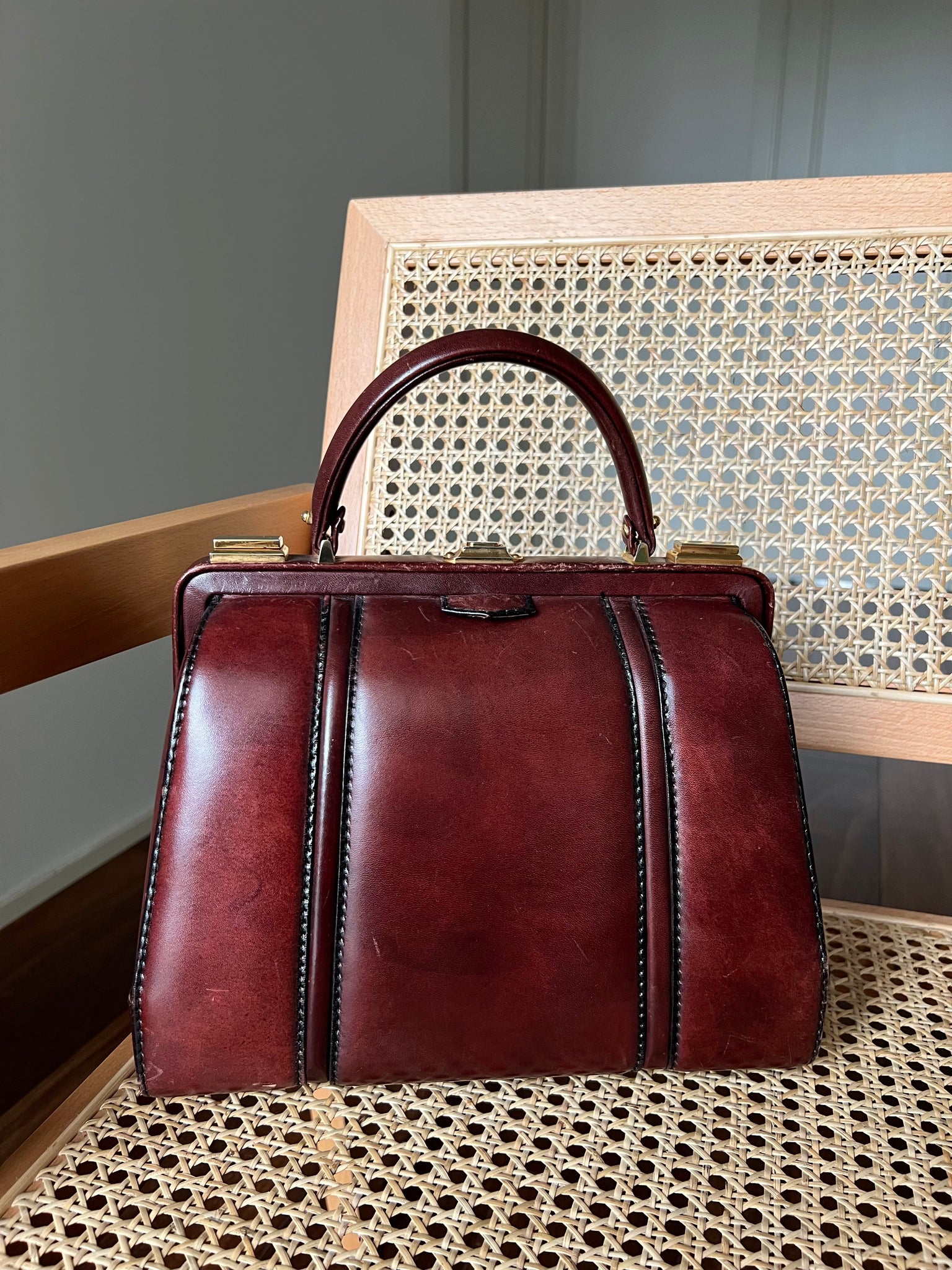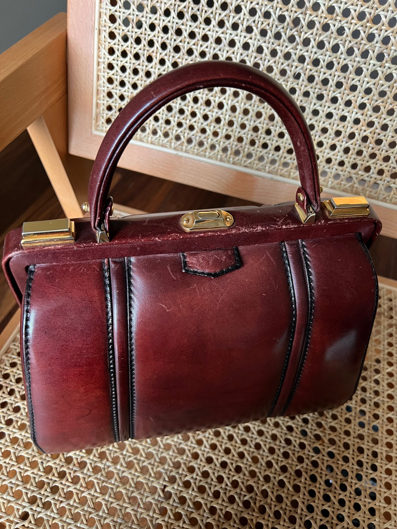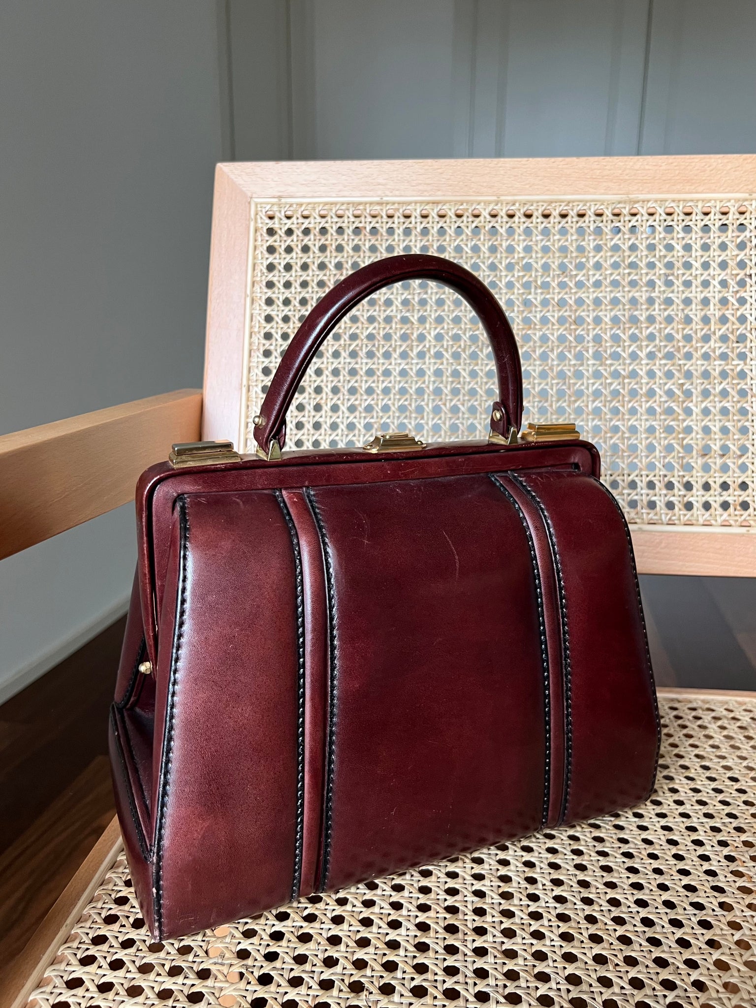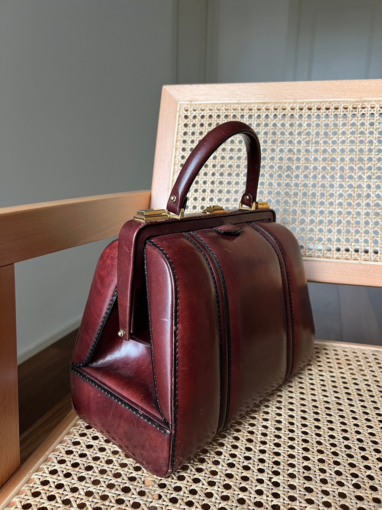 Borsa vintage in pelle rigida, modello tipo valigetta da medico.