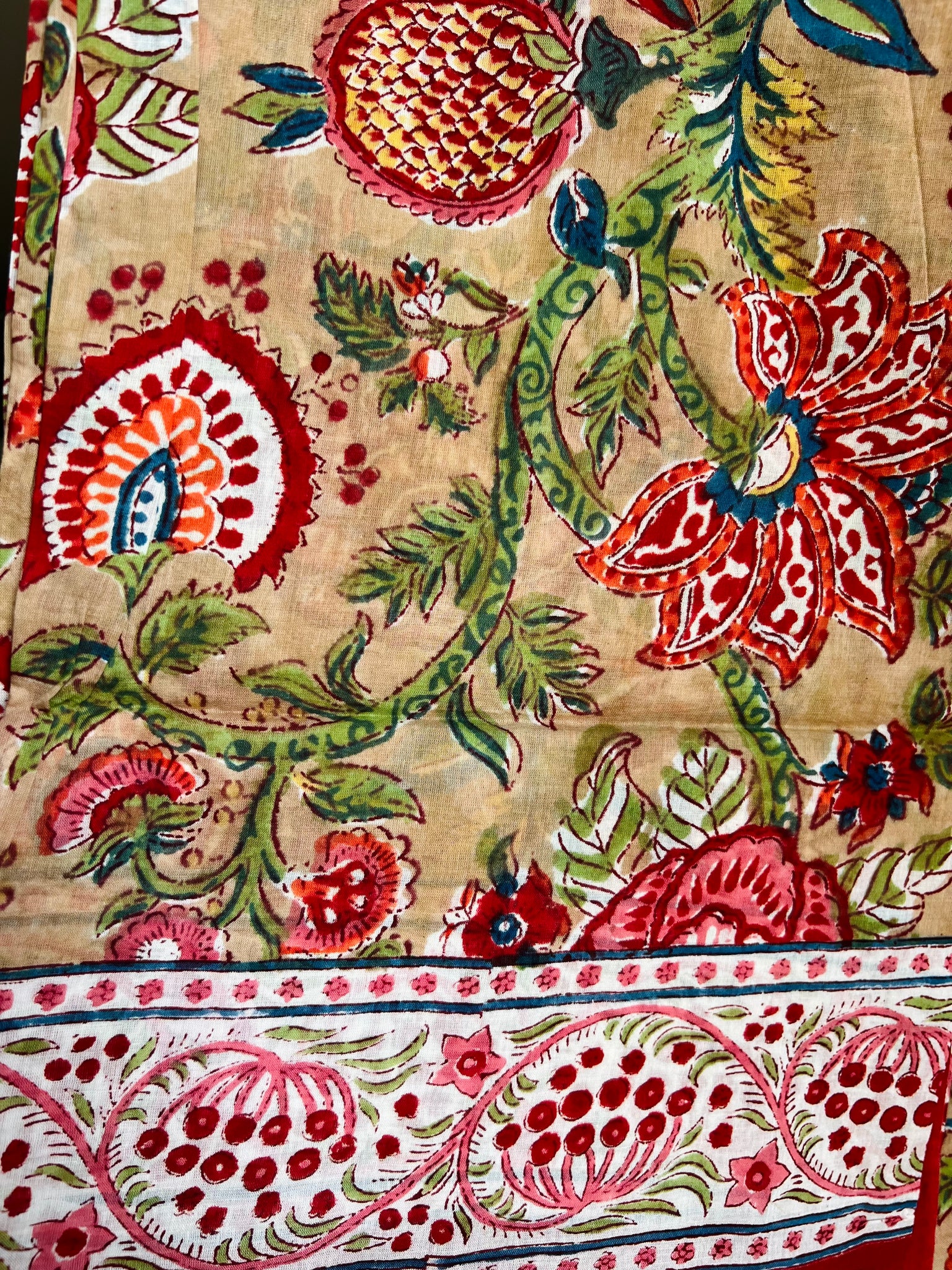 Il pareo è stampato in India con la tecnica del blockprinting, in cotone sottile, grande circa 110x185cm.