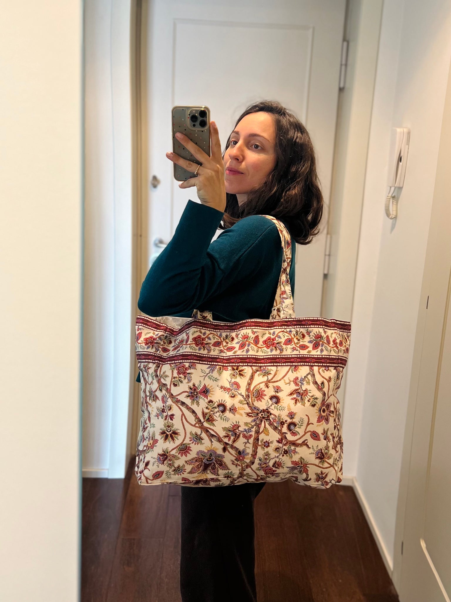Borsa in tela spessa 100% cotone. Made in India. 40 x 33 x 13 cm.