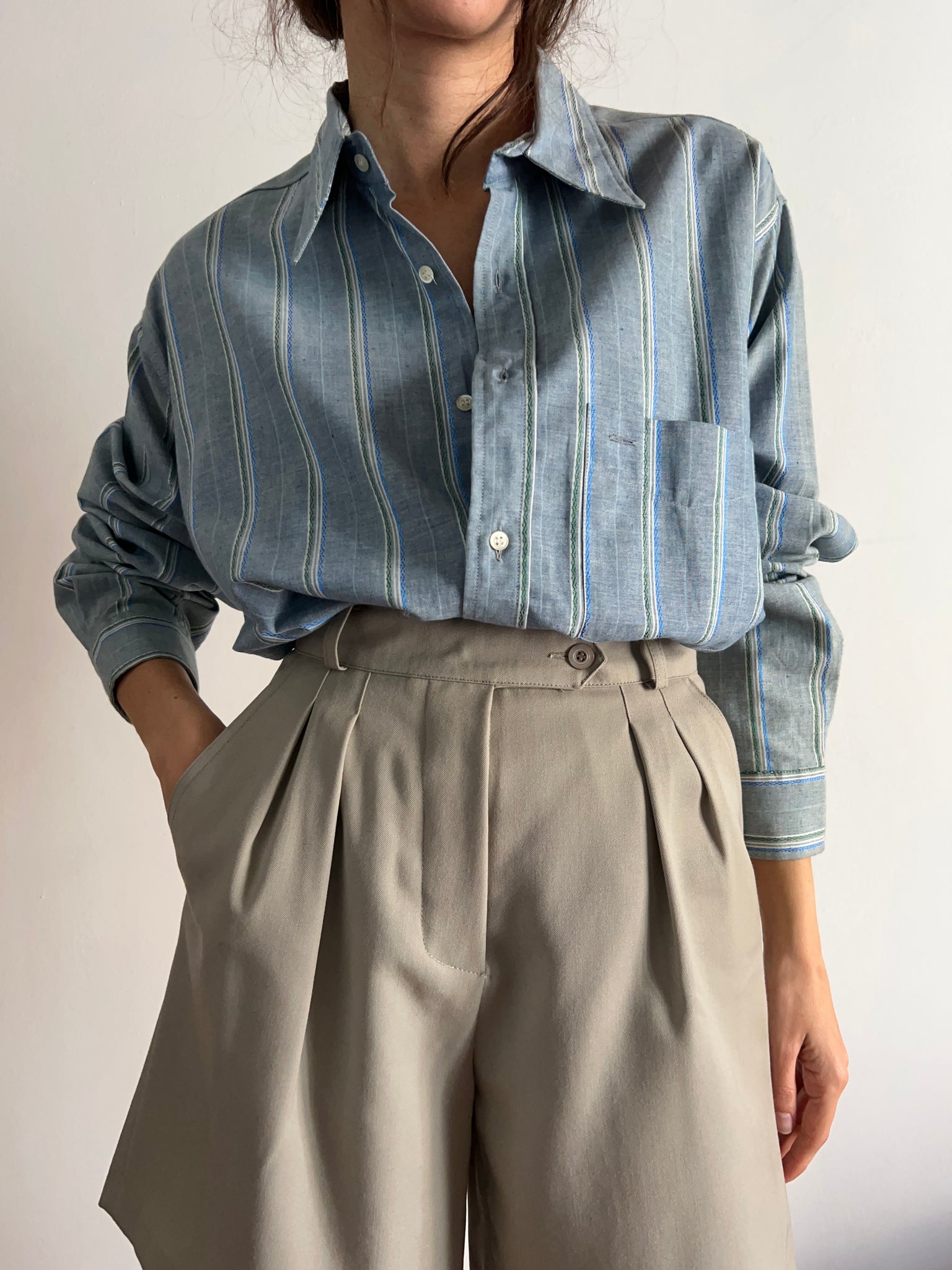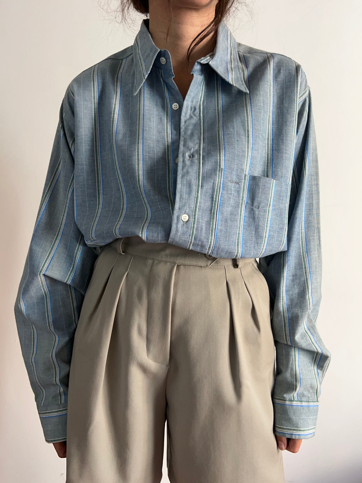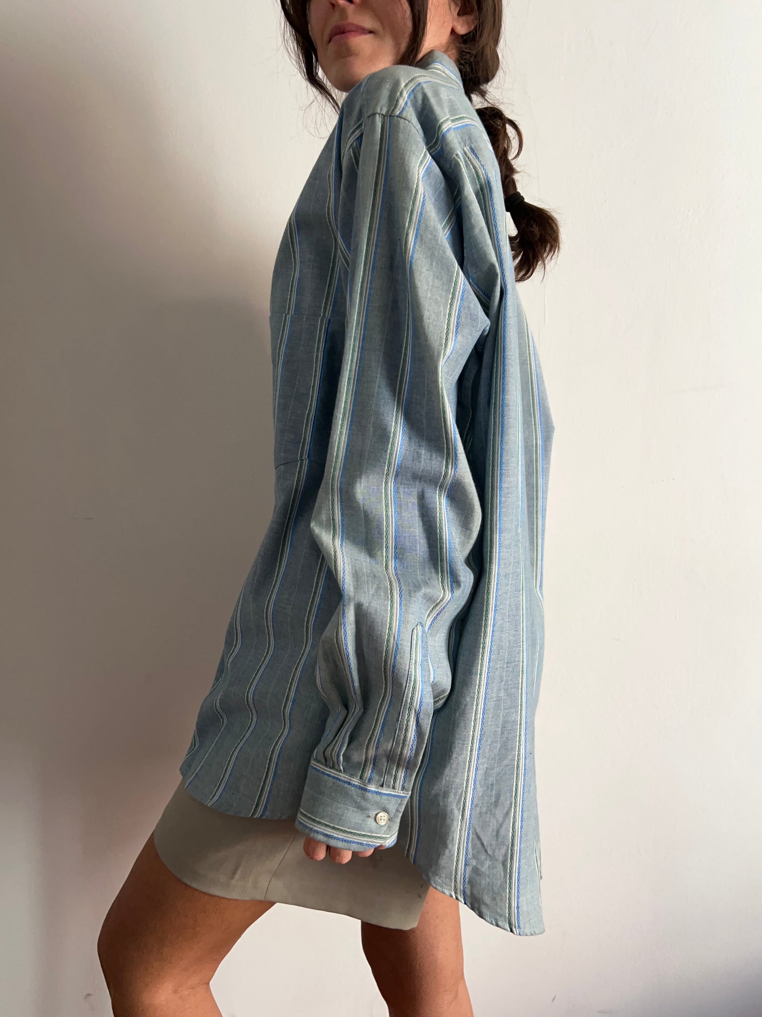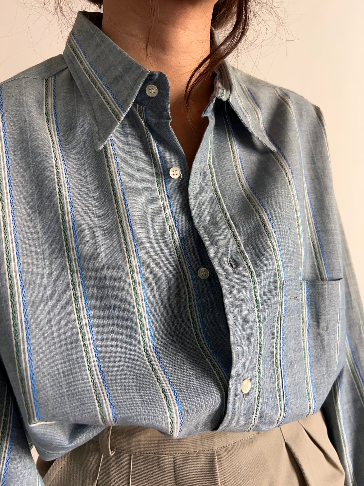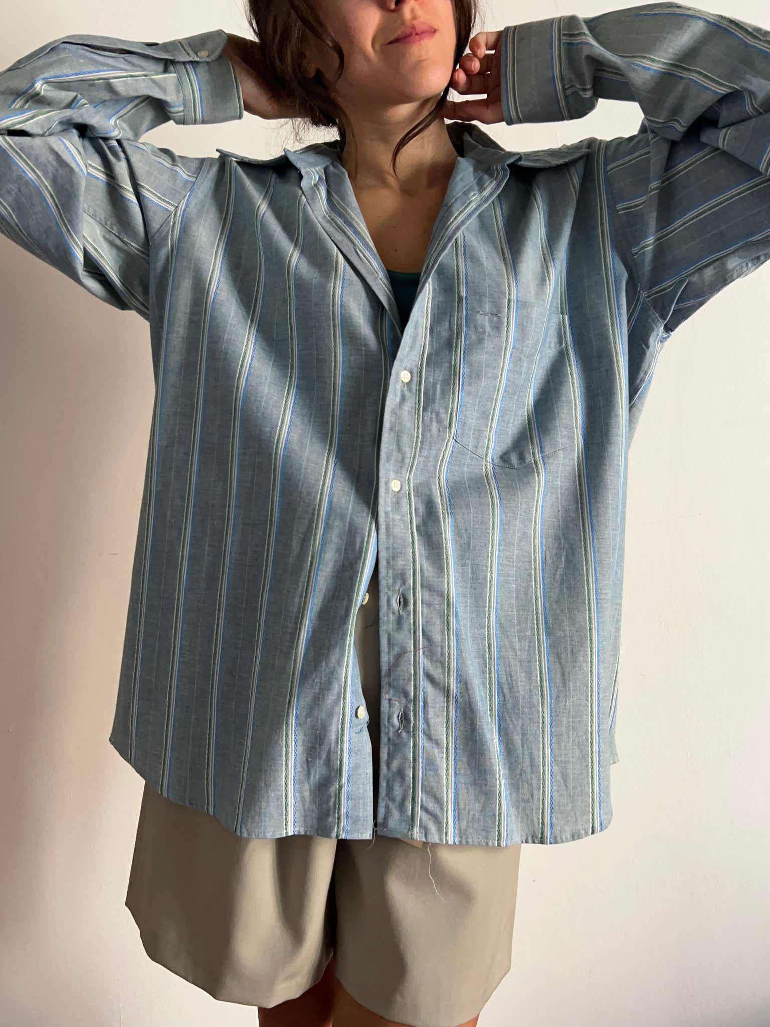 Camicia a righe azzurre e verdi