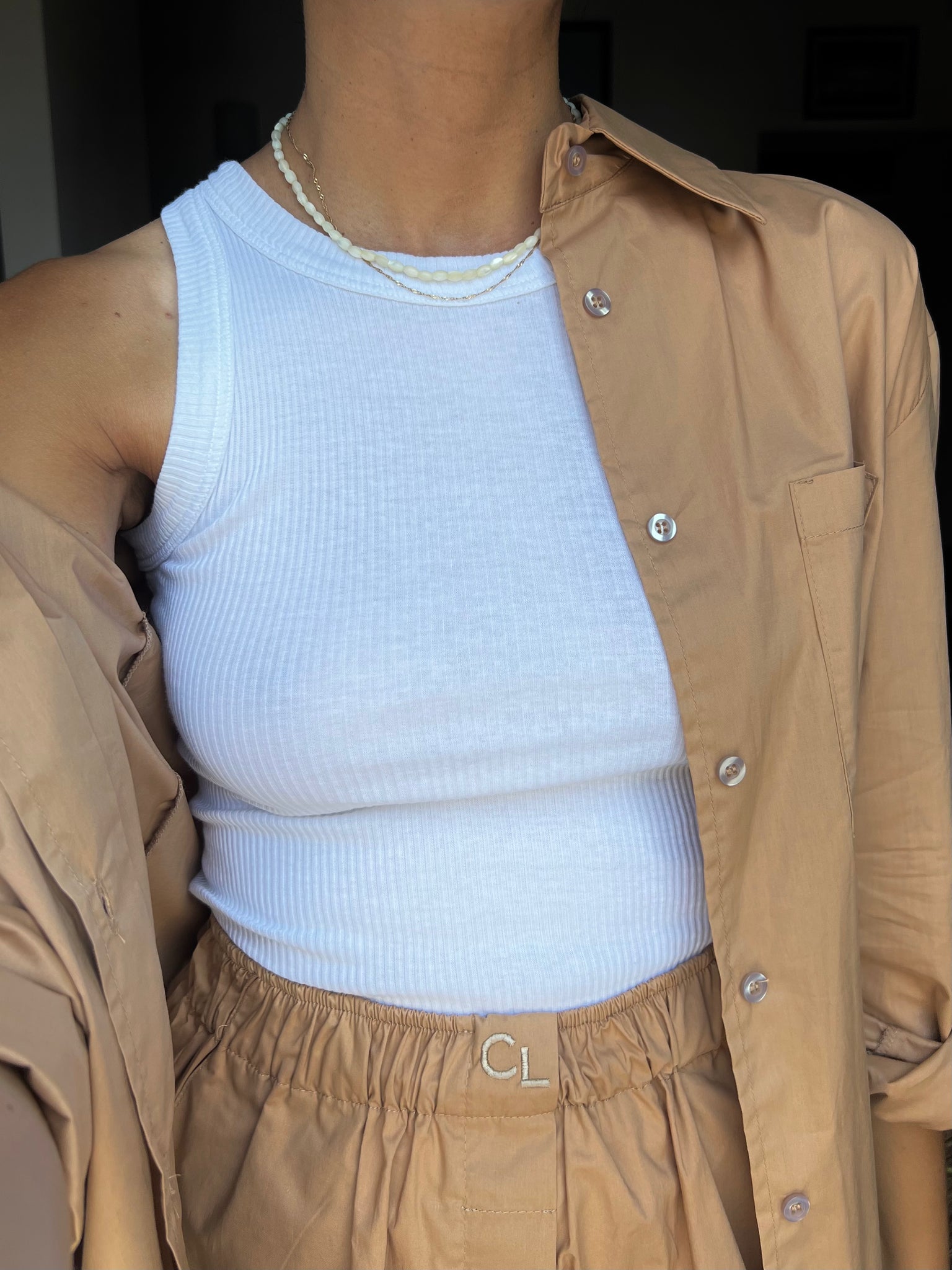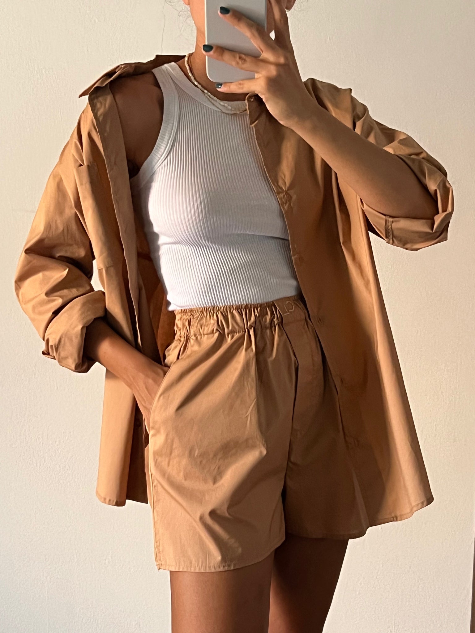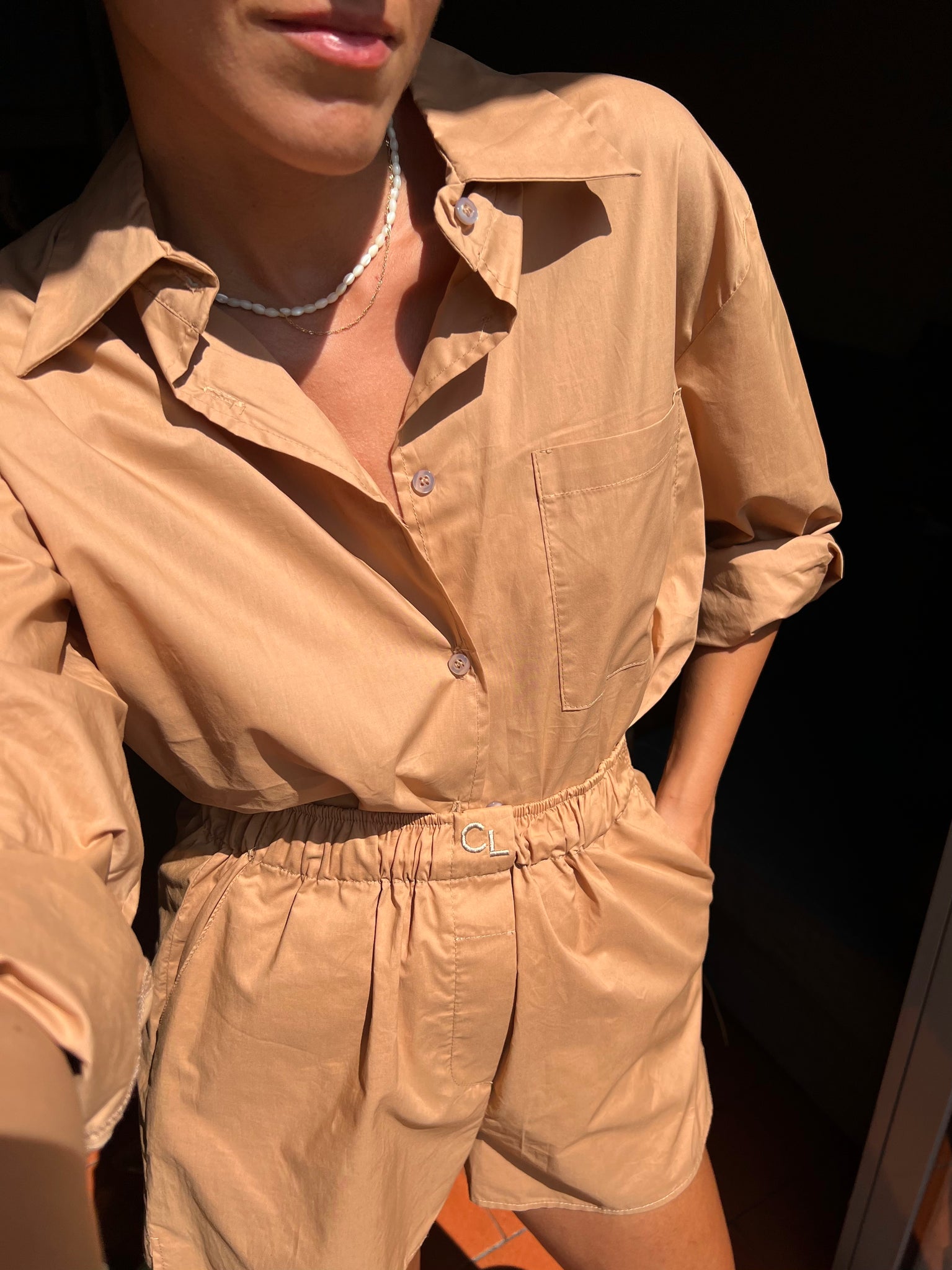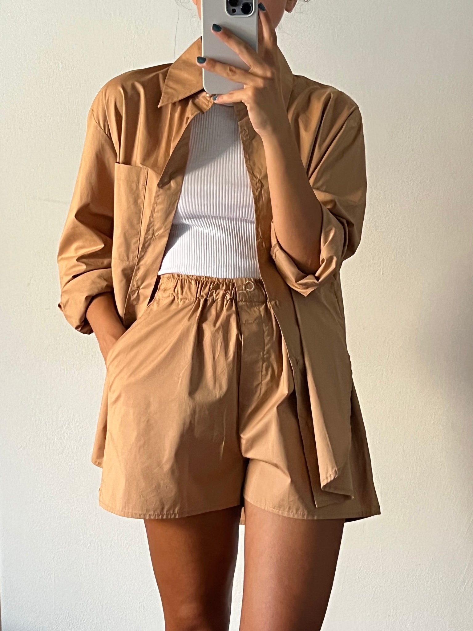 Camicia handmade by Chiara Luppi, modello ampio e lunghetto con tasca frontale e pieghe sul retro.