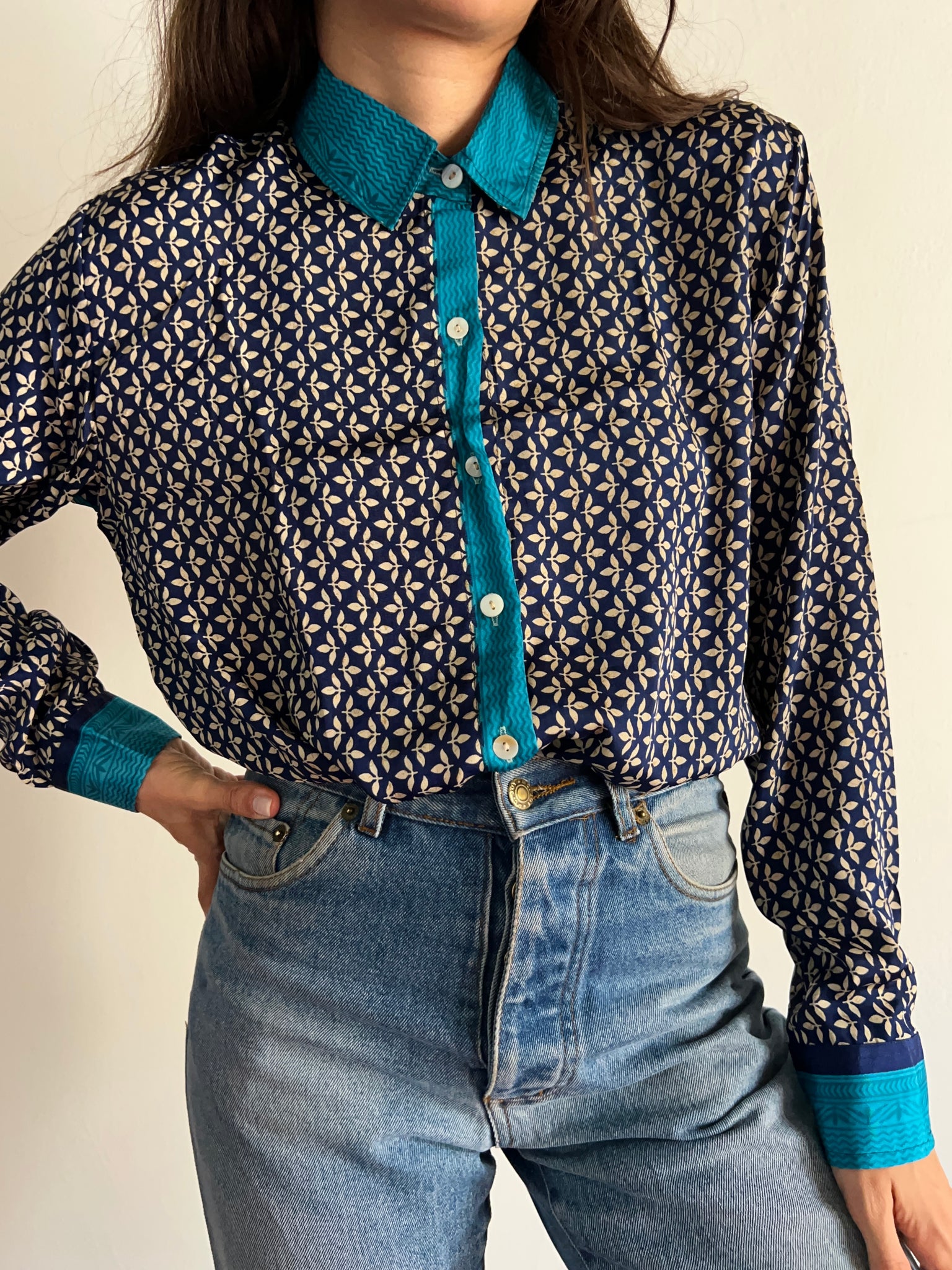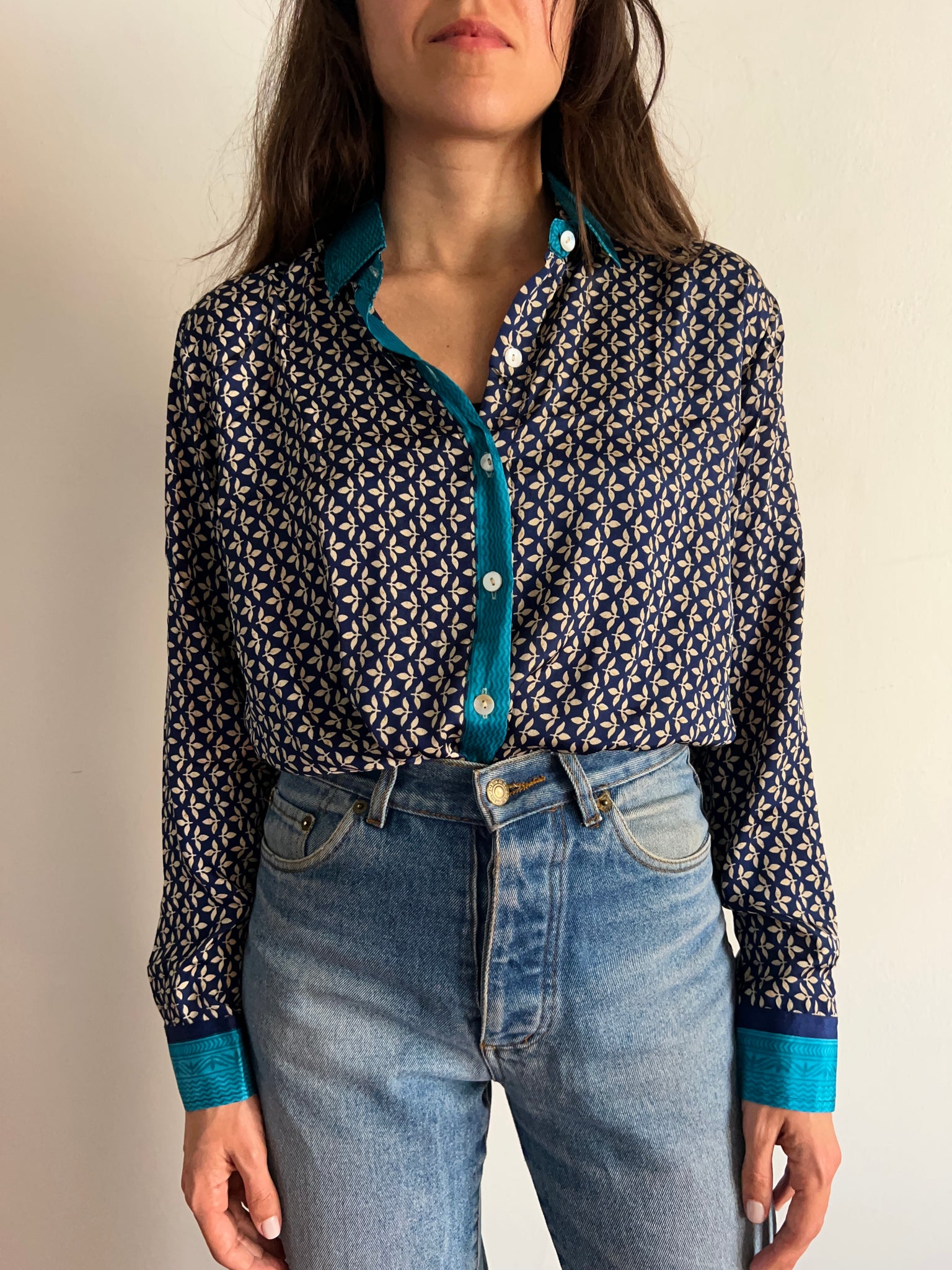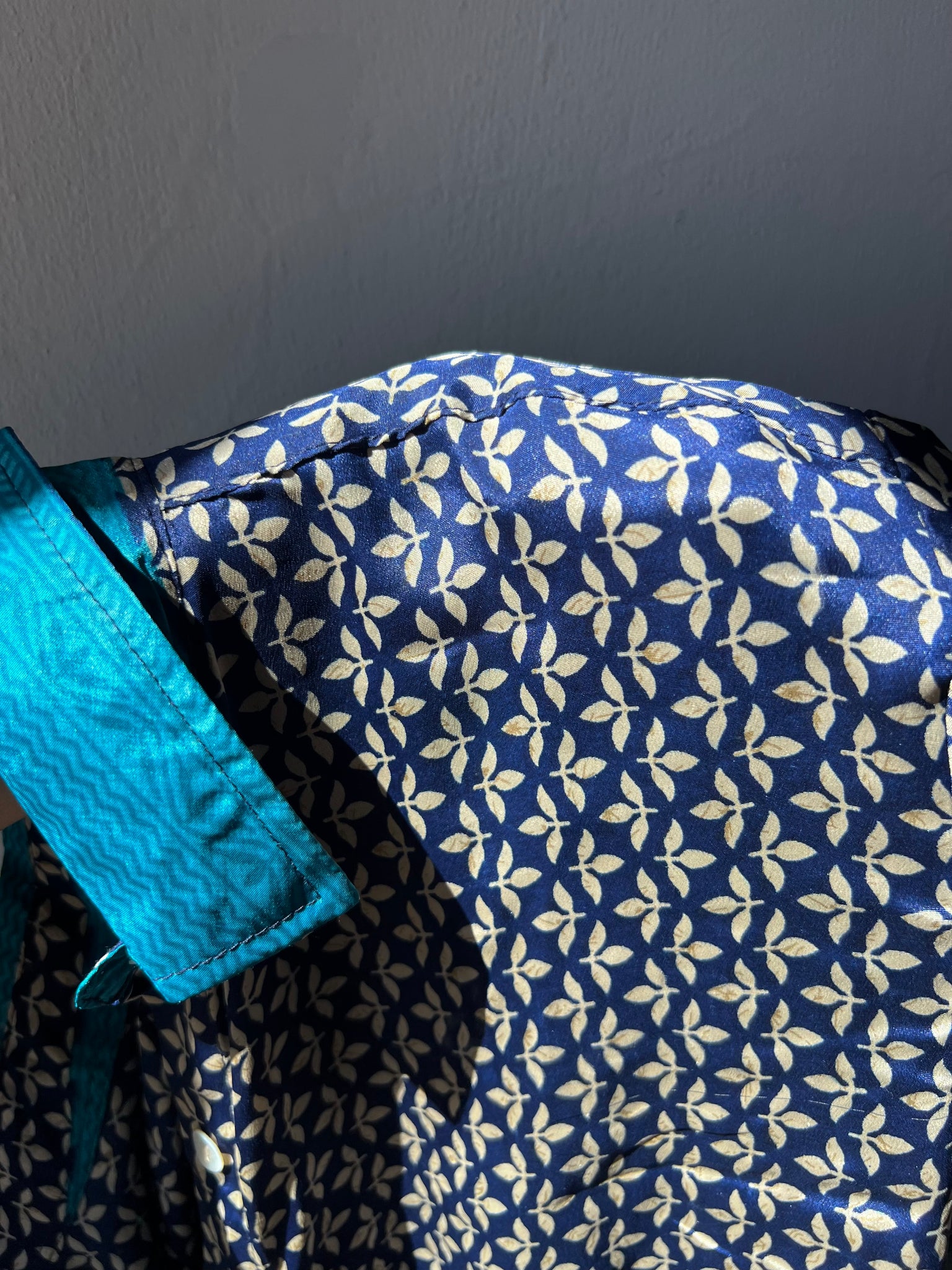 Camicia Made in India, edizione limitata realizzata con tessuto in pura seta ricavato da sari vintage.