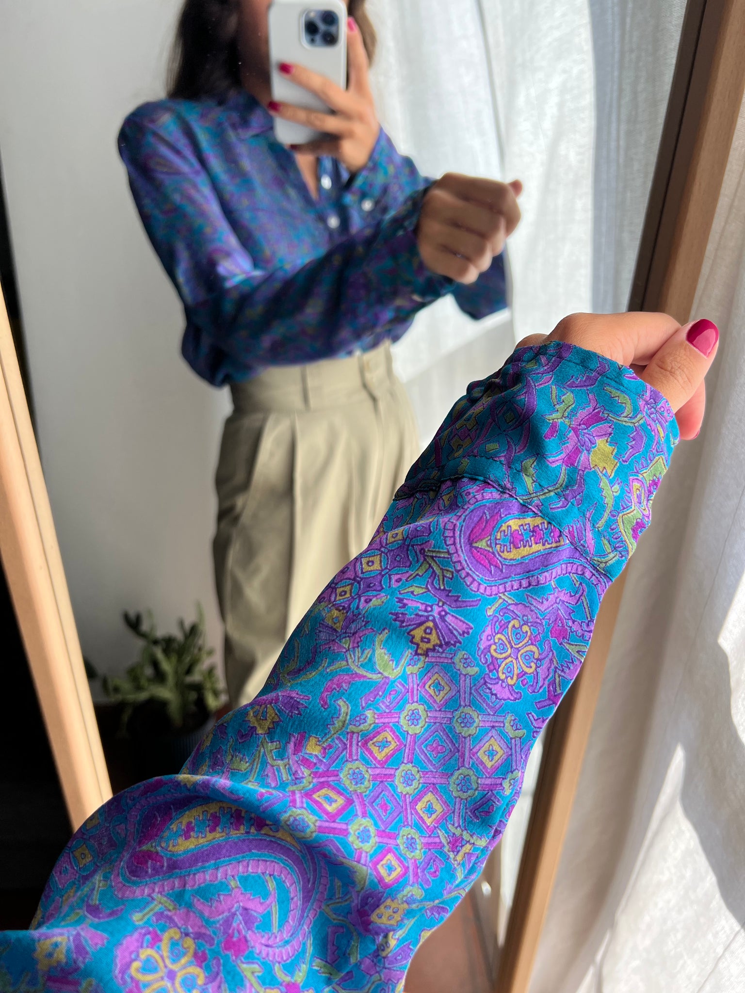 Camicia Made in India, edizione limitata realizzata con tessuto in pura seta ricavato da sari vintage.
