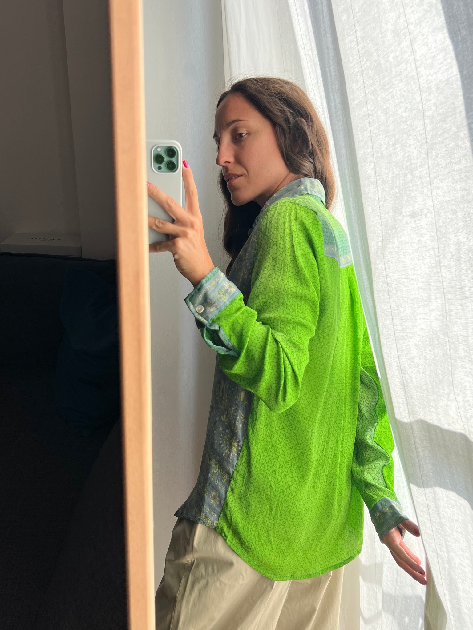 Camicia Made in India, edizione limitata realizzata con tessuto in pura seta ricavato da sari vintage.