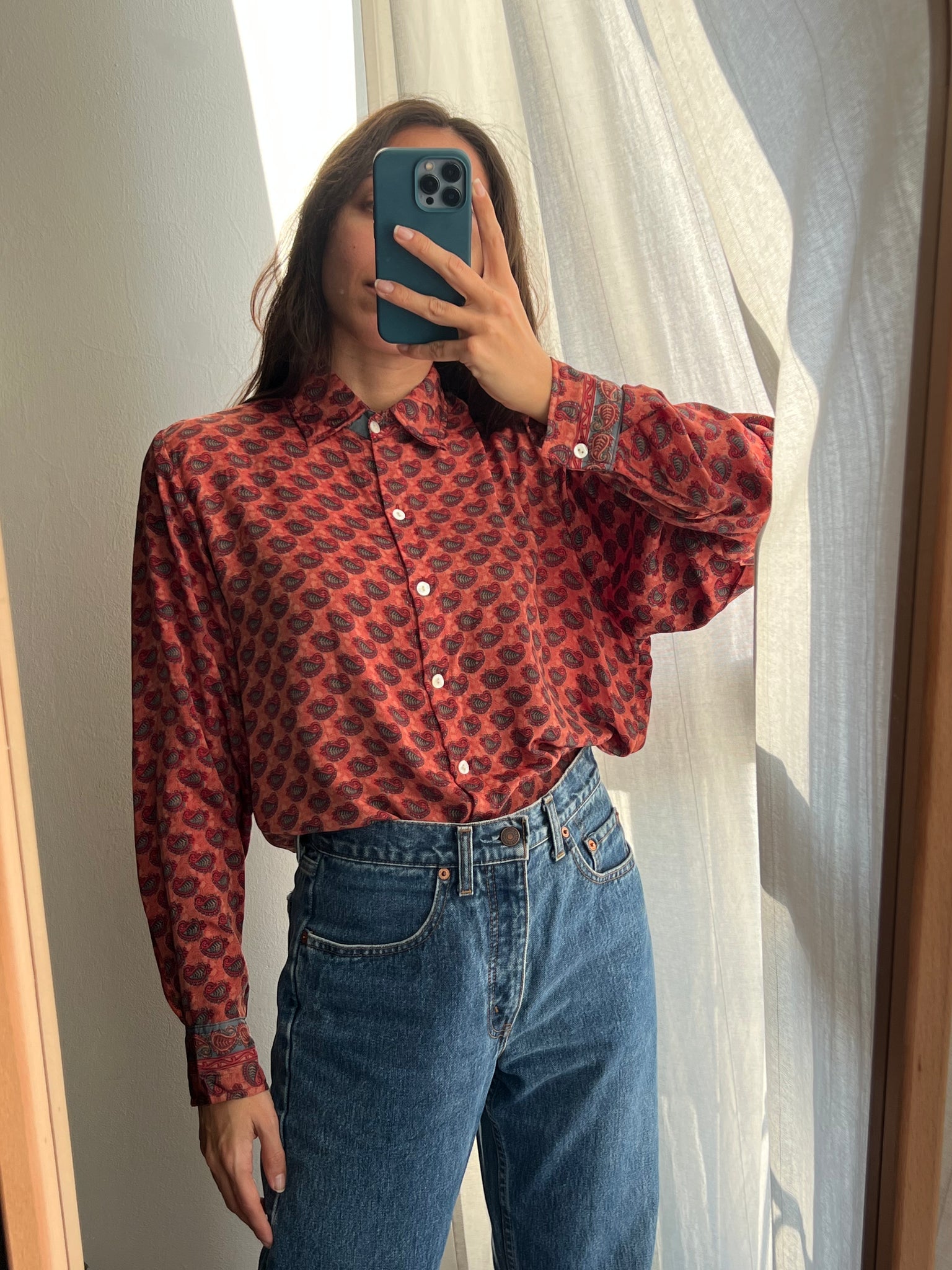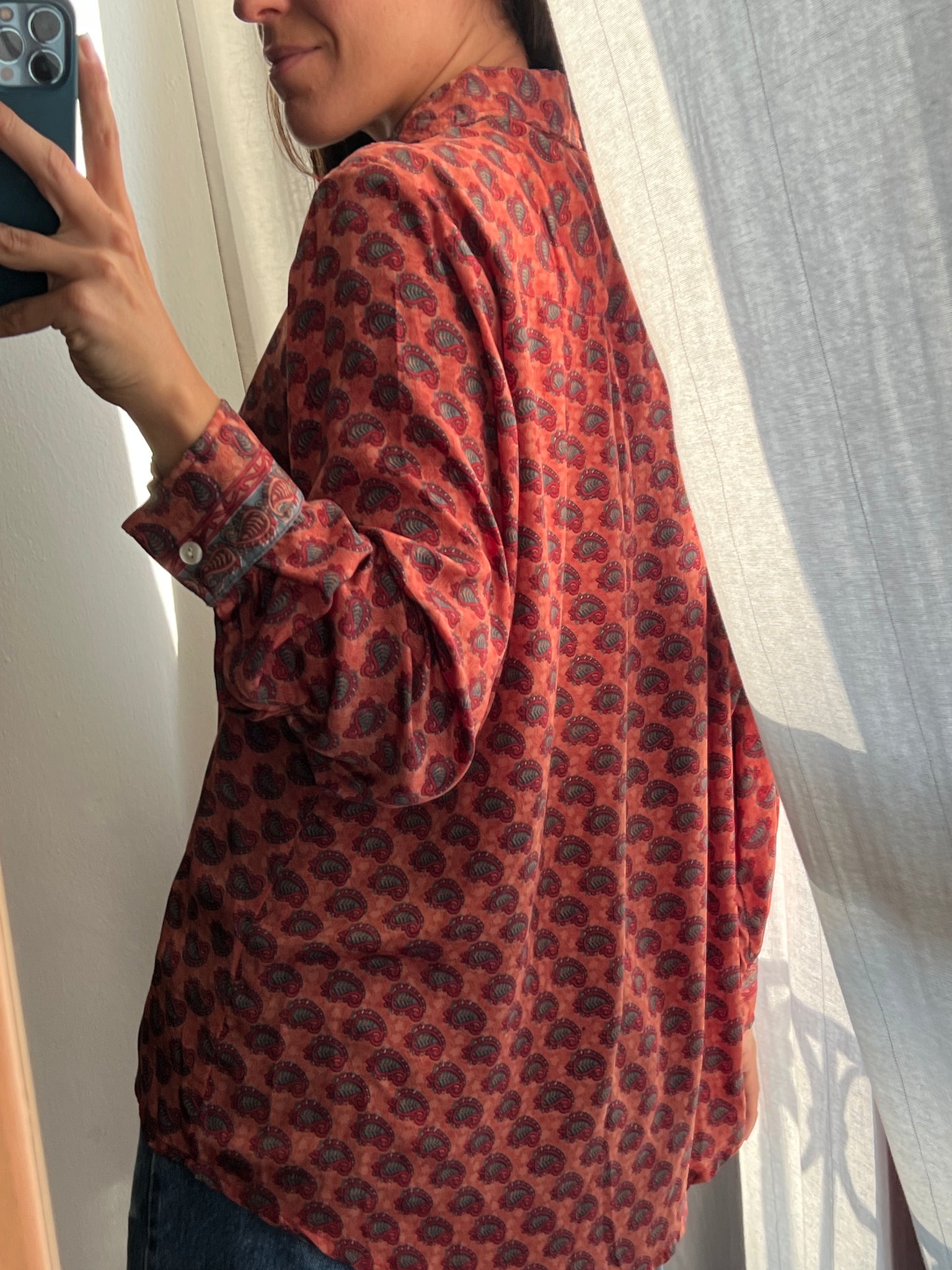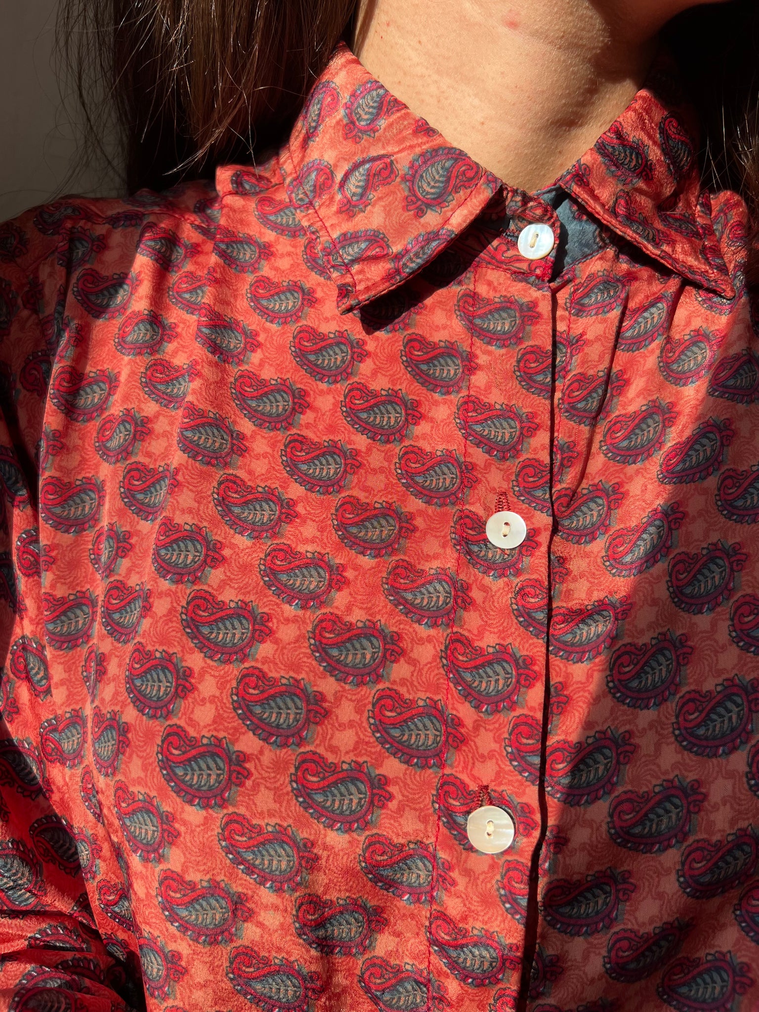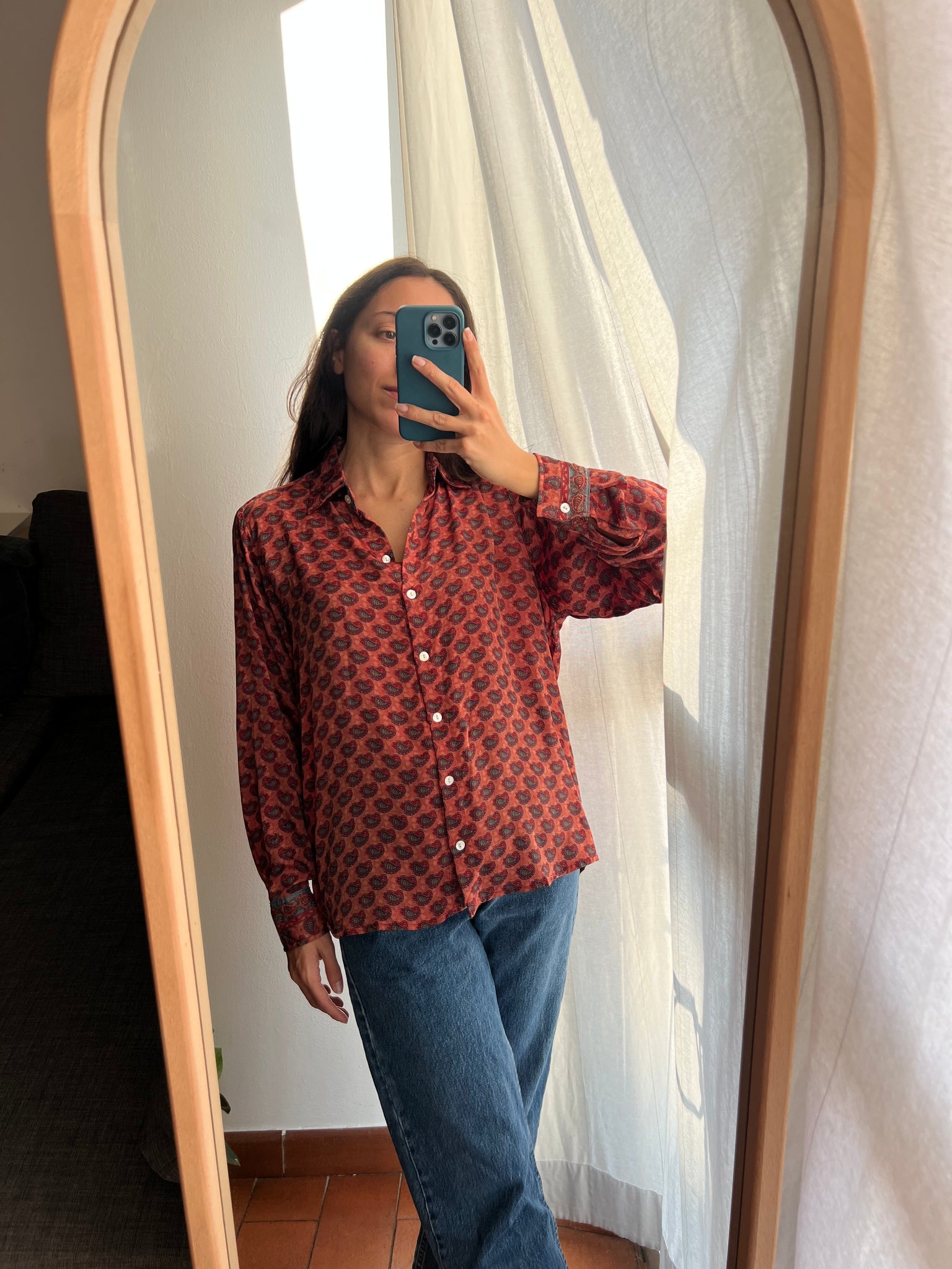 Camicia Made in India, edizione limitata realizzata con tessuto in pura seta ricavato da sari vintage.