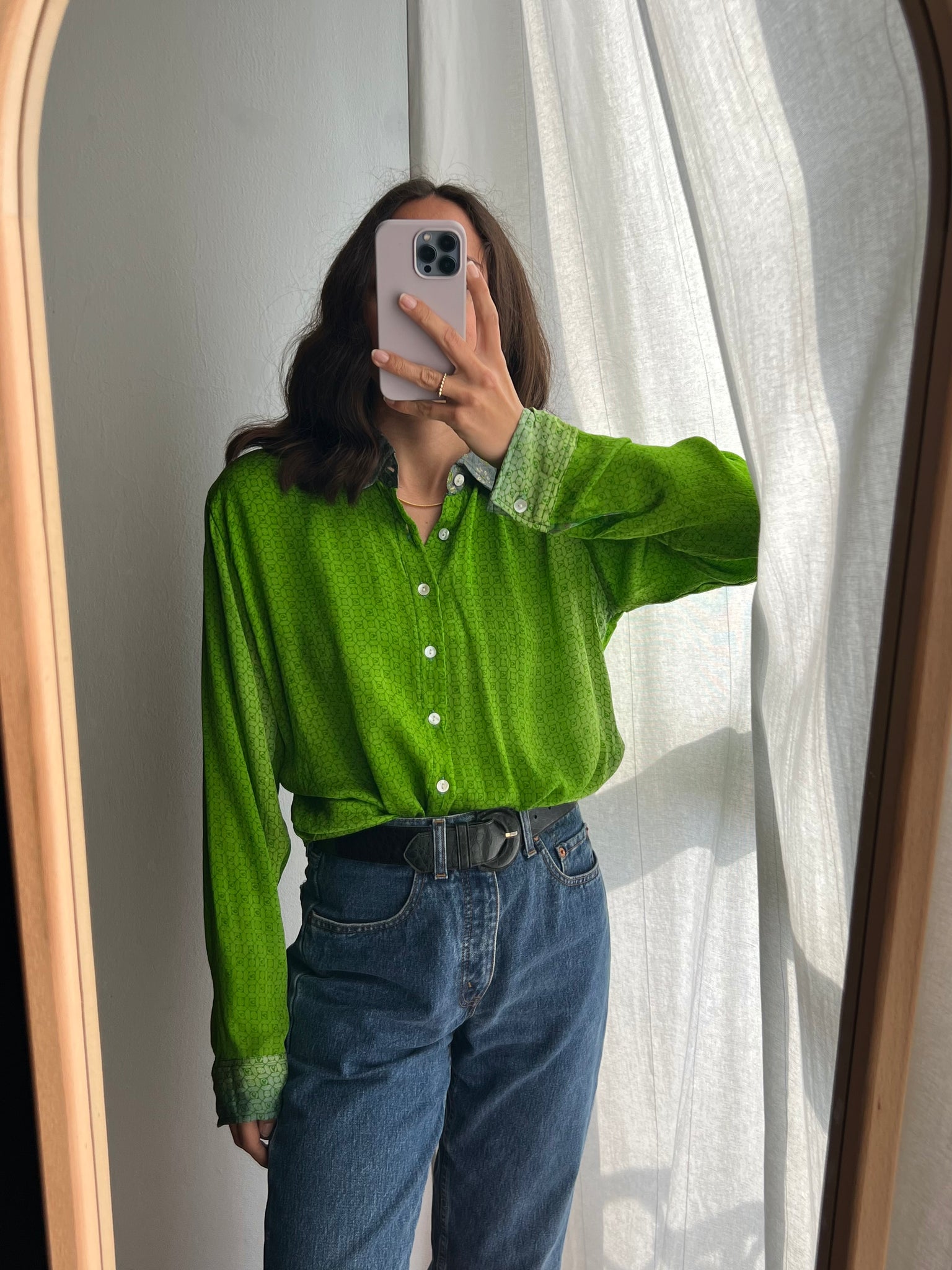 Camicia Made in India, edizione limitata realizzata con tessuto in pura seta ricavato da sari vintage.