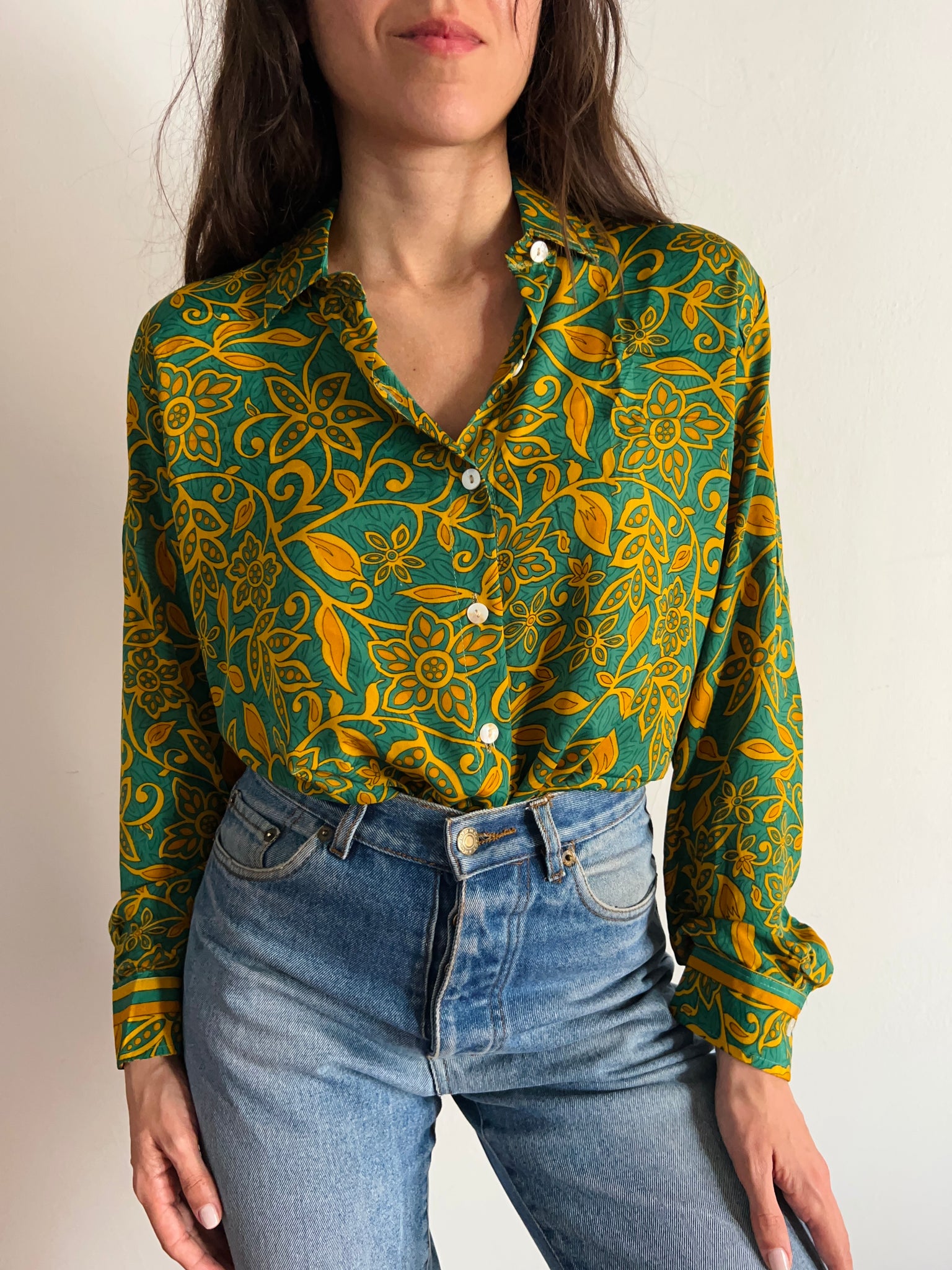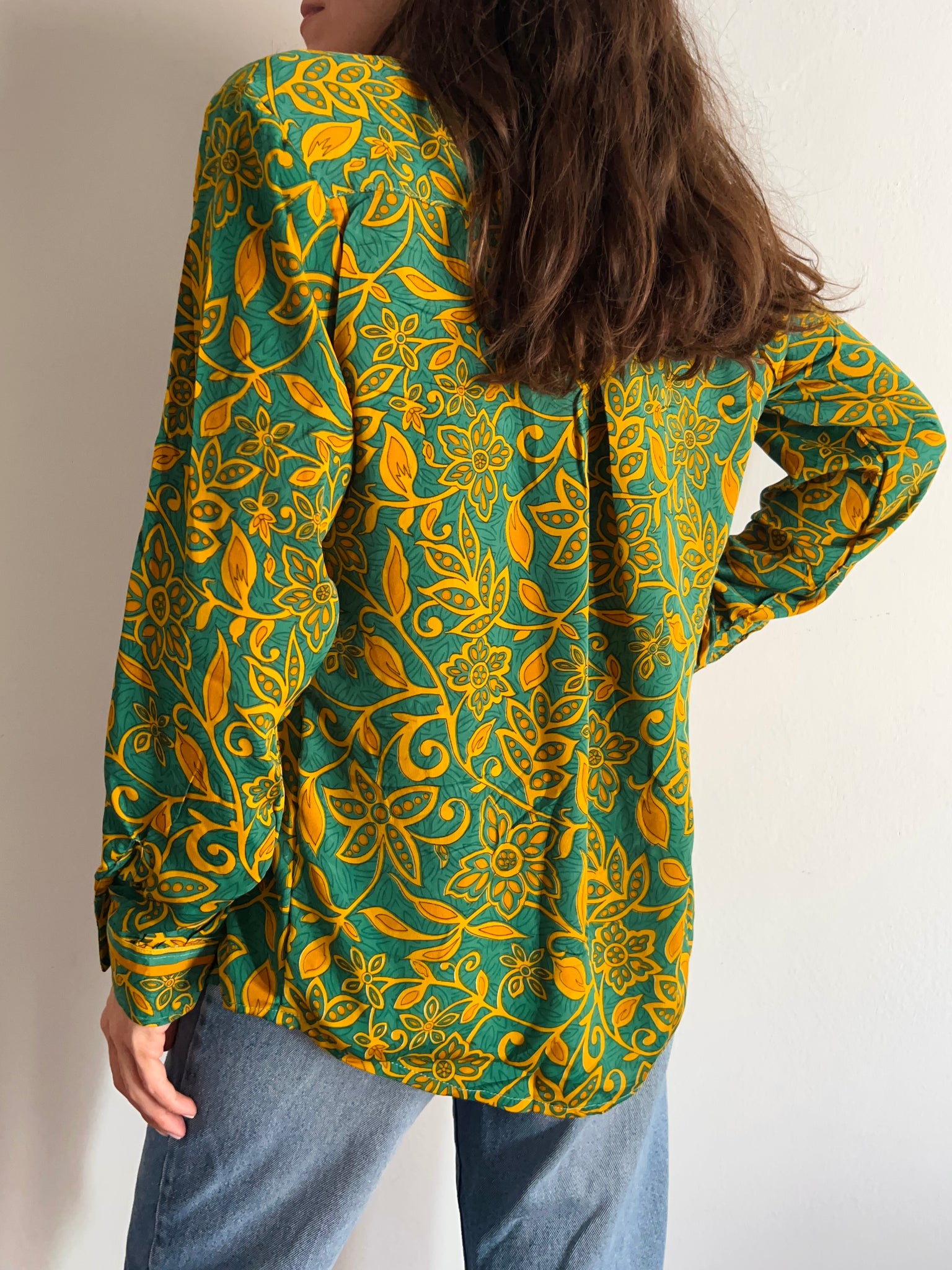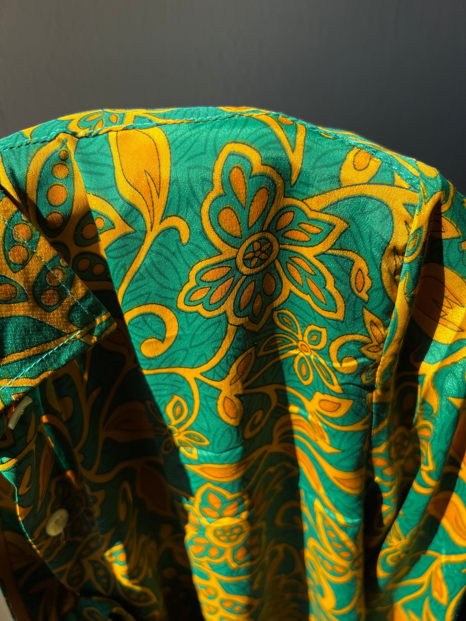 Camicia Made in India, edizione limitata realizzata con tessuto in pura seta ricavato da sari vintage.