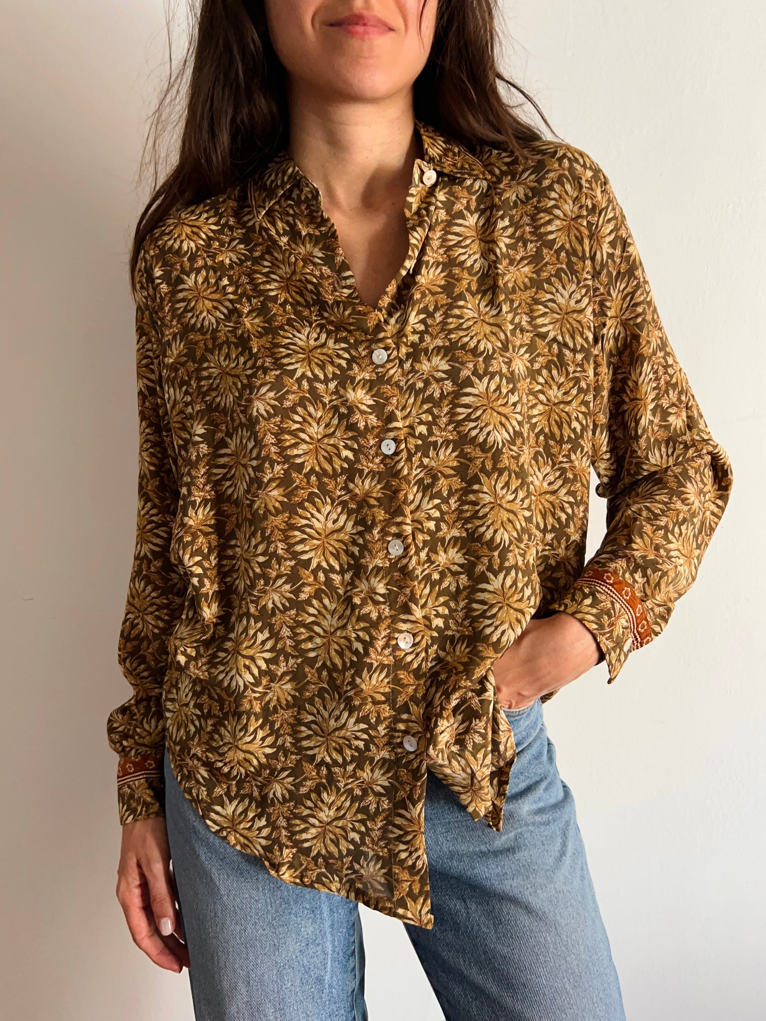 Camicia Made in India, edizione limitata realizzata con tessuto in pura seta ricavato da sari vintage.