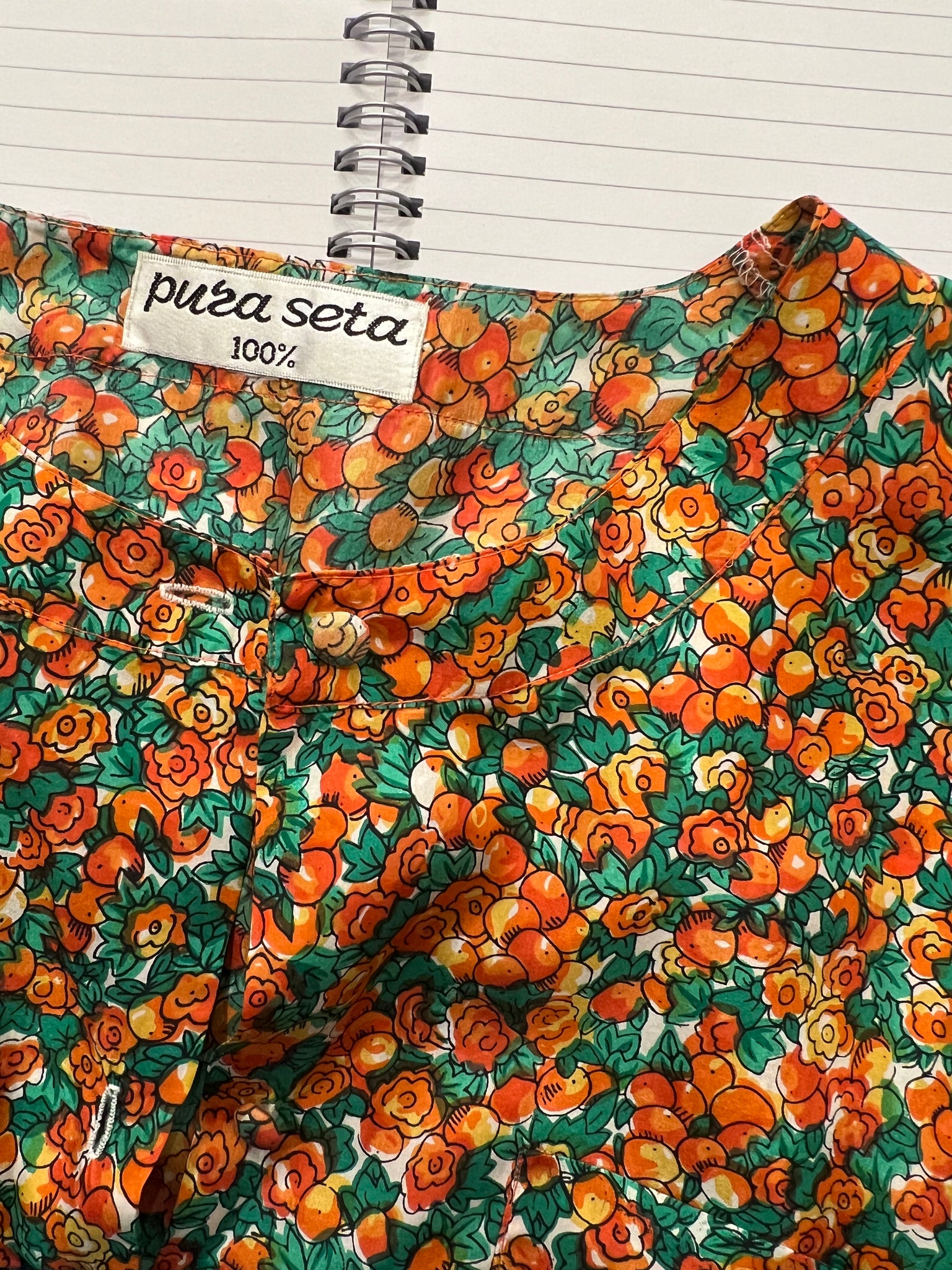 Camicia vintage 100% seta con bottoncini ricoperti e tasca.