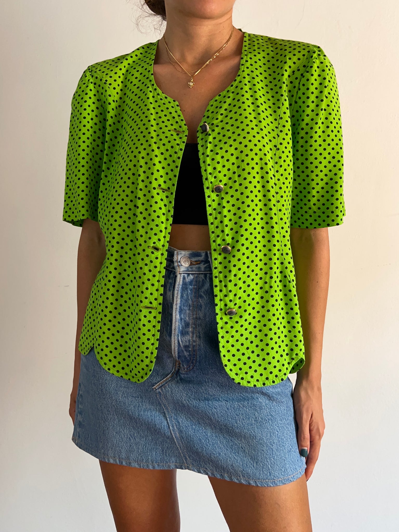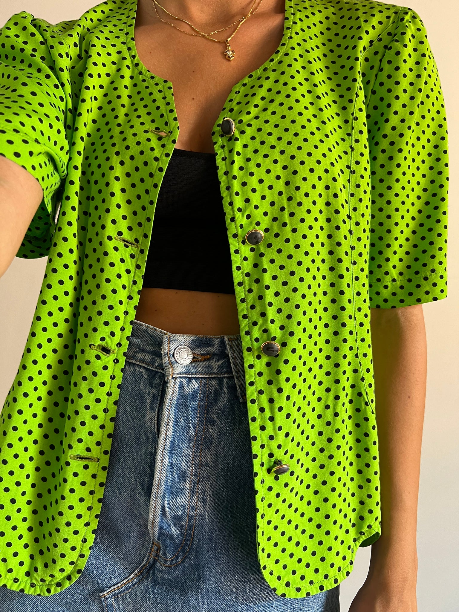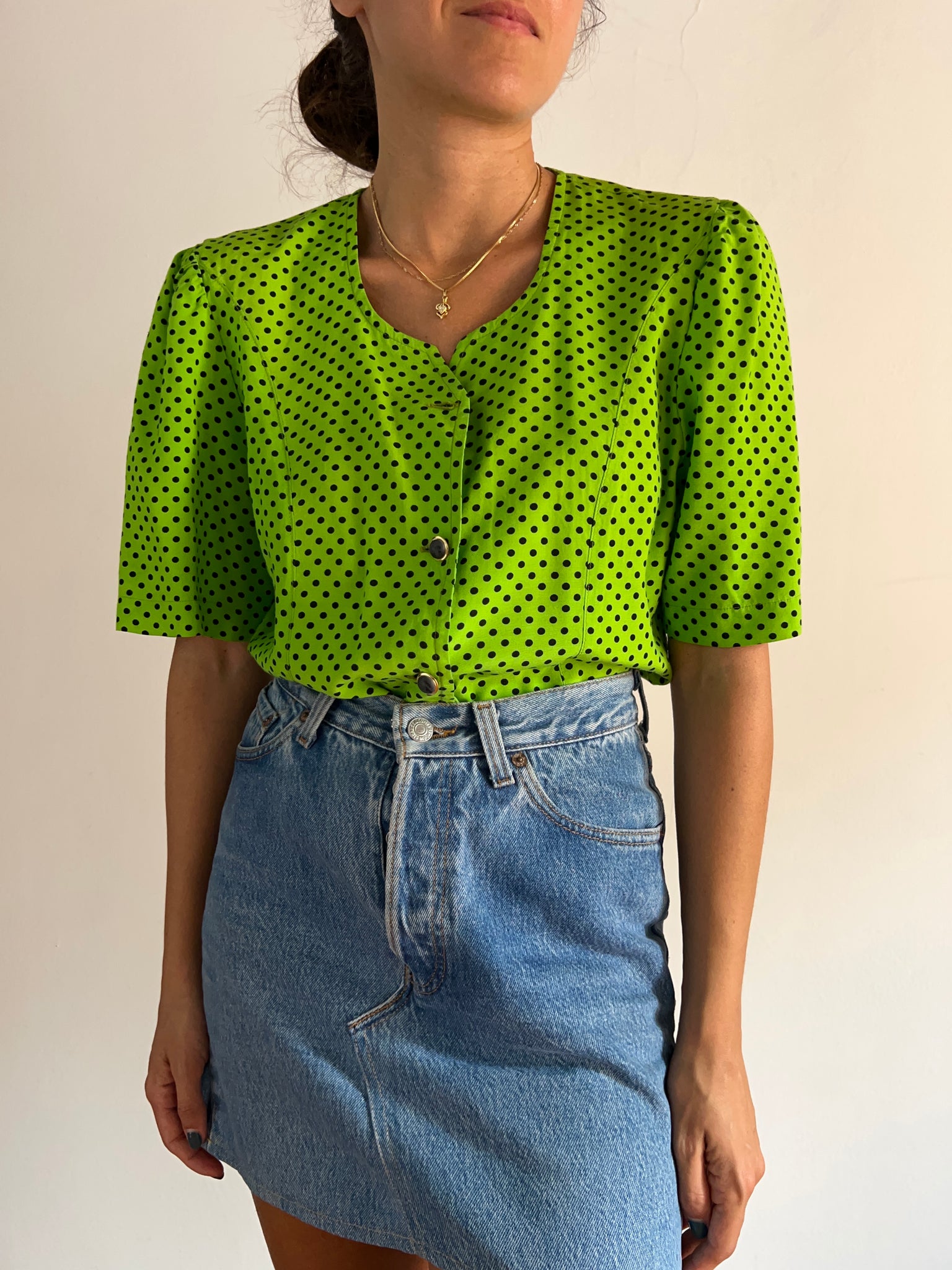 Camicetta vintage di viscosa con manica un po’ a sbuffo.