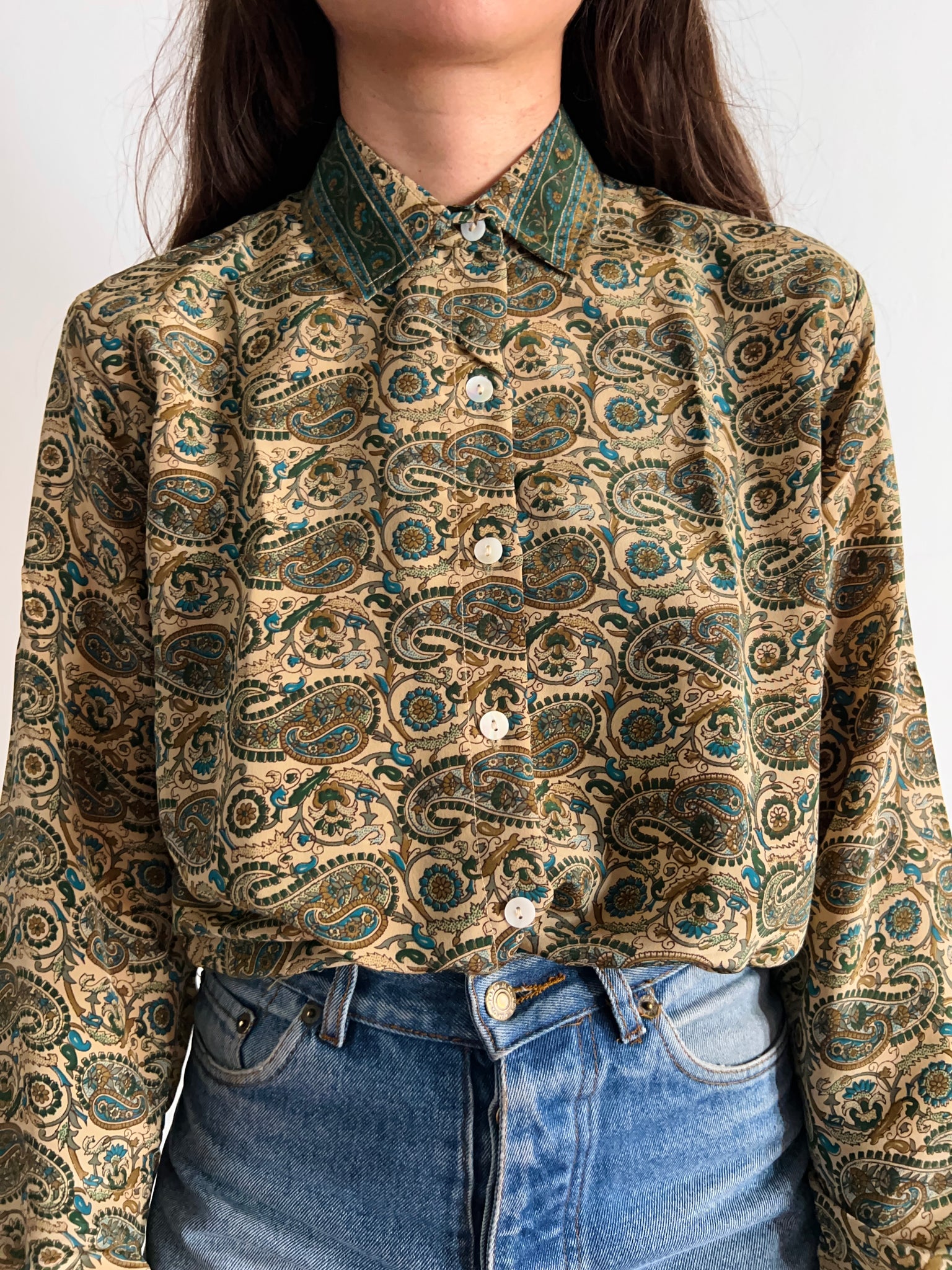 Camicia Made in India, edizione limitata realizzata con tessuto in pura seta ricavato da sari vintage.