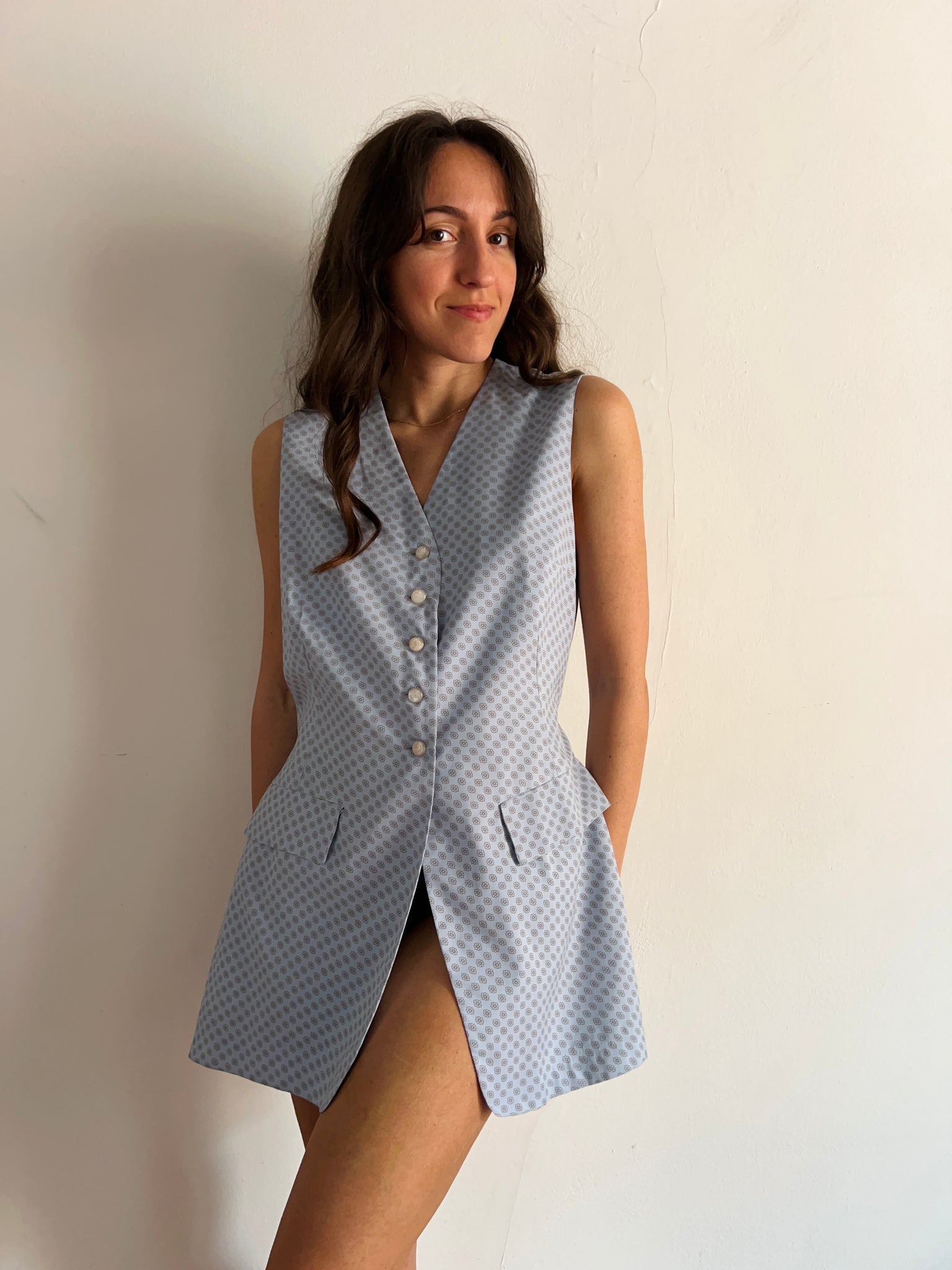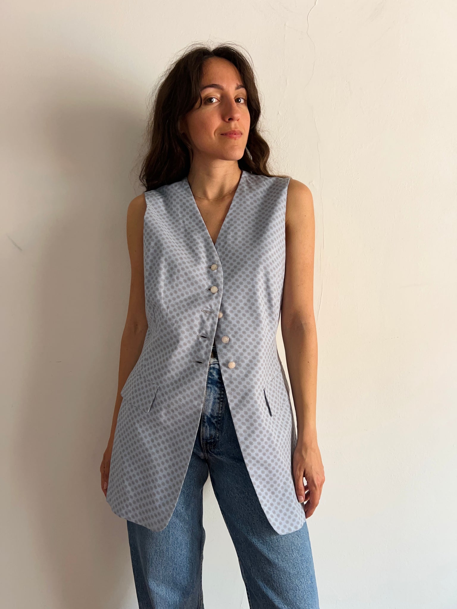 Gilet lungo azzurro di cupro