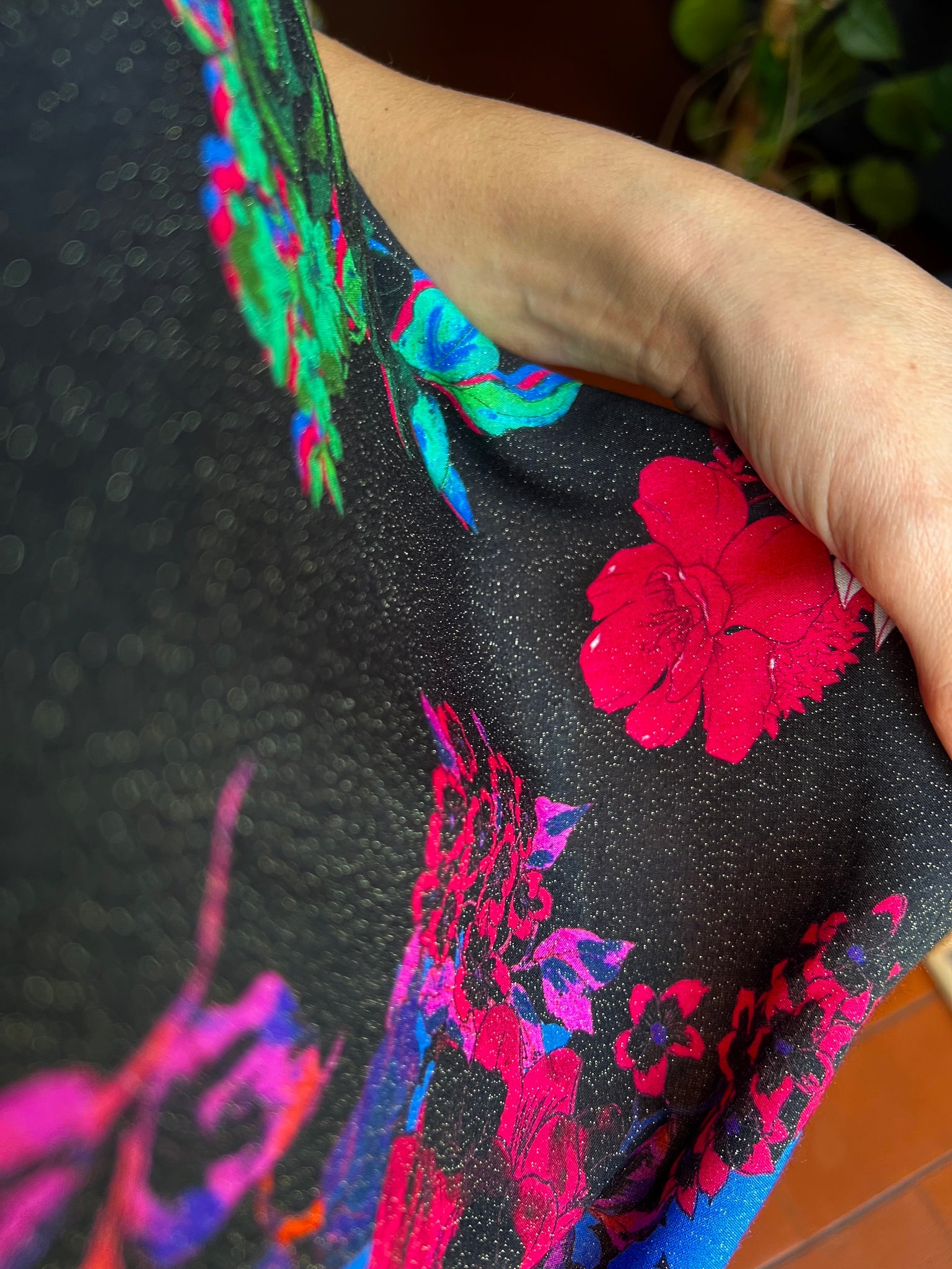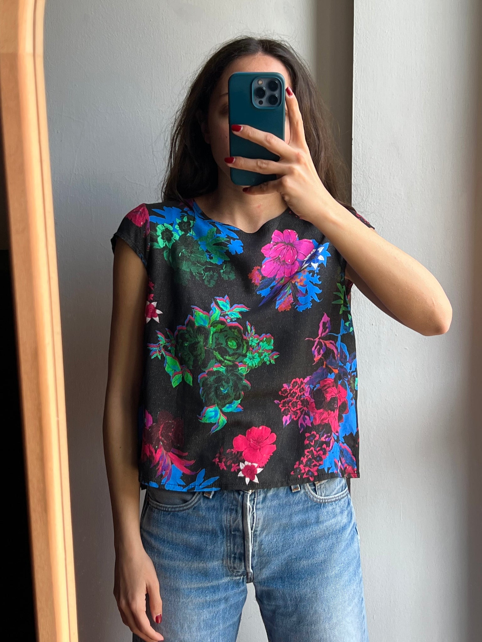 Maglietta nera fiorata con lurex