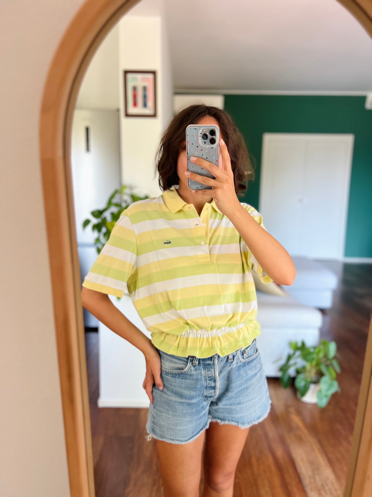 Polo Gilbi Lacoste righe verdine e gialline