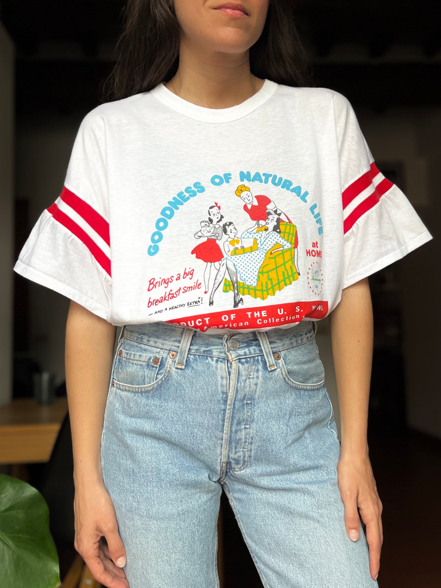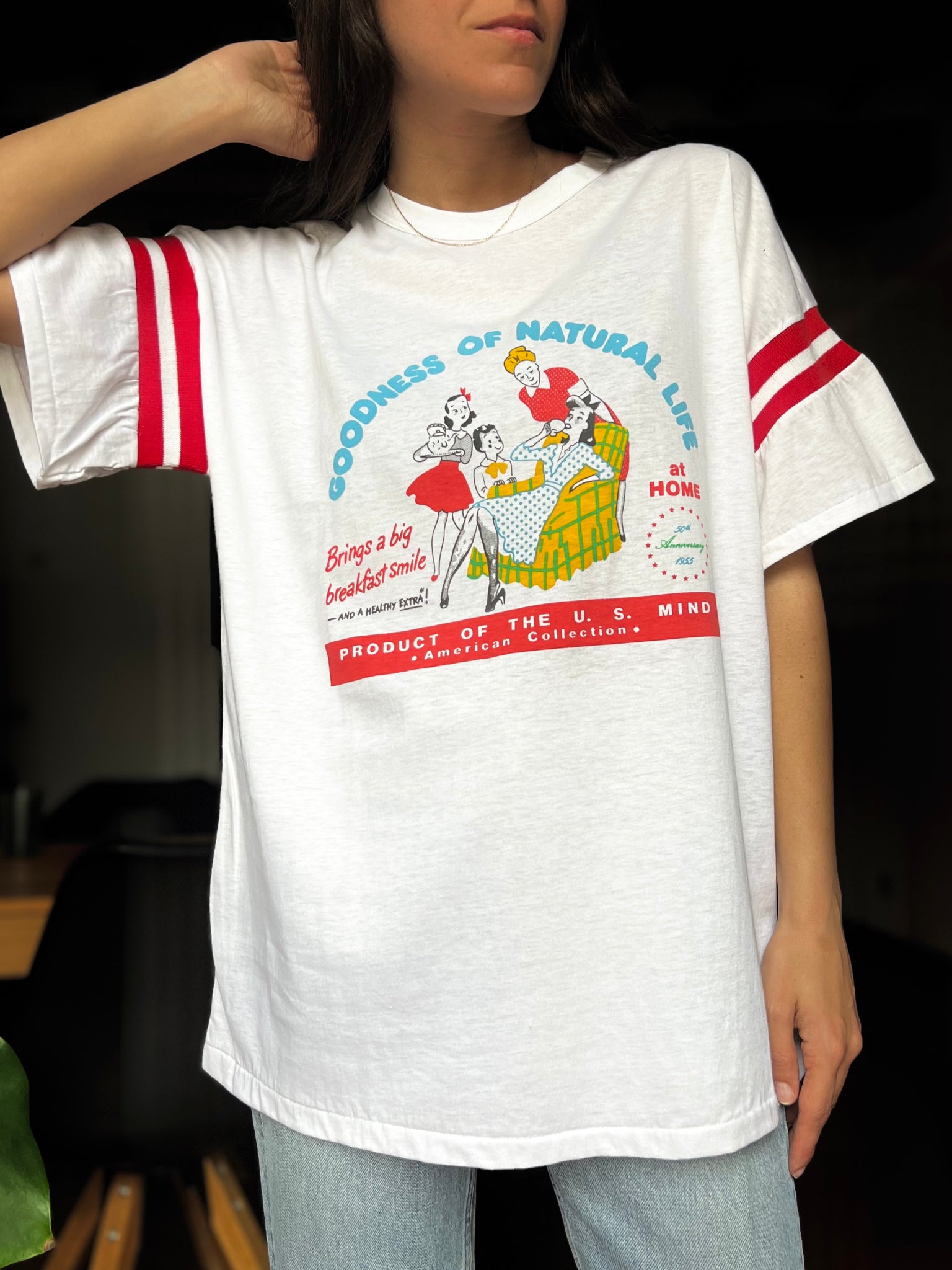 Maglietta vintage nuova dall’archivio di un’attività storica.
