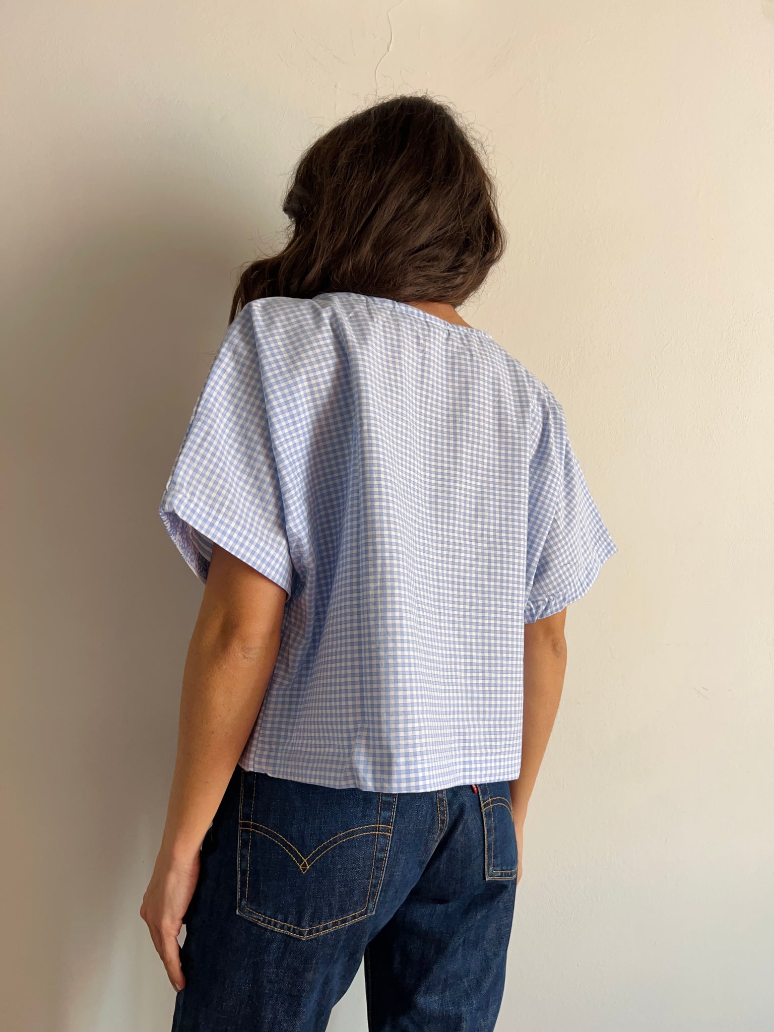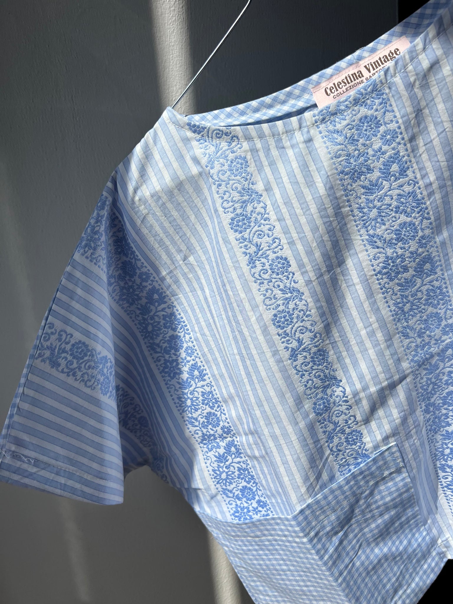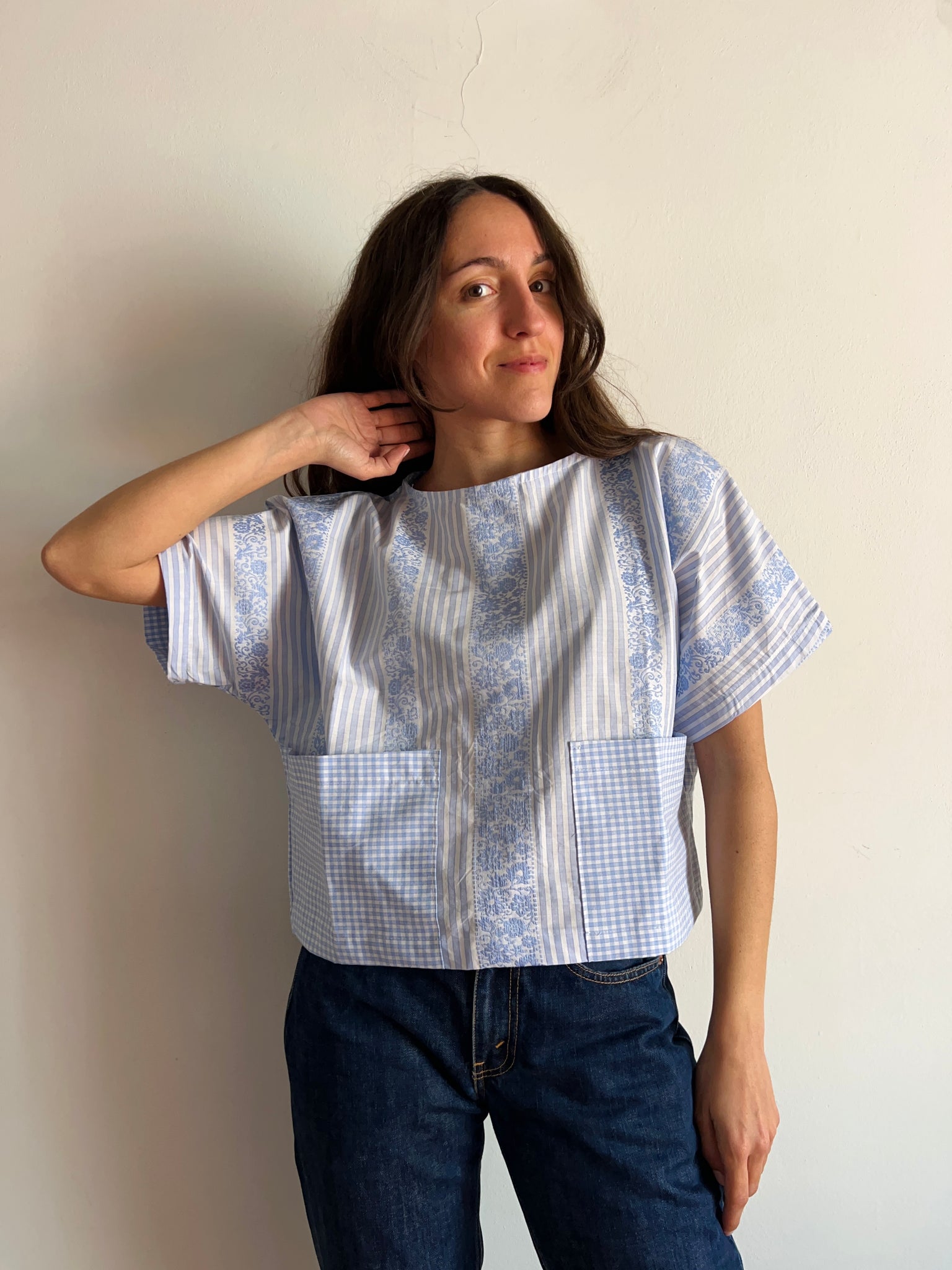T-shirt Leggerissima con tasche • azzurrina righe-fiori-quadretti