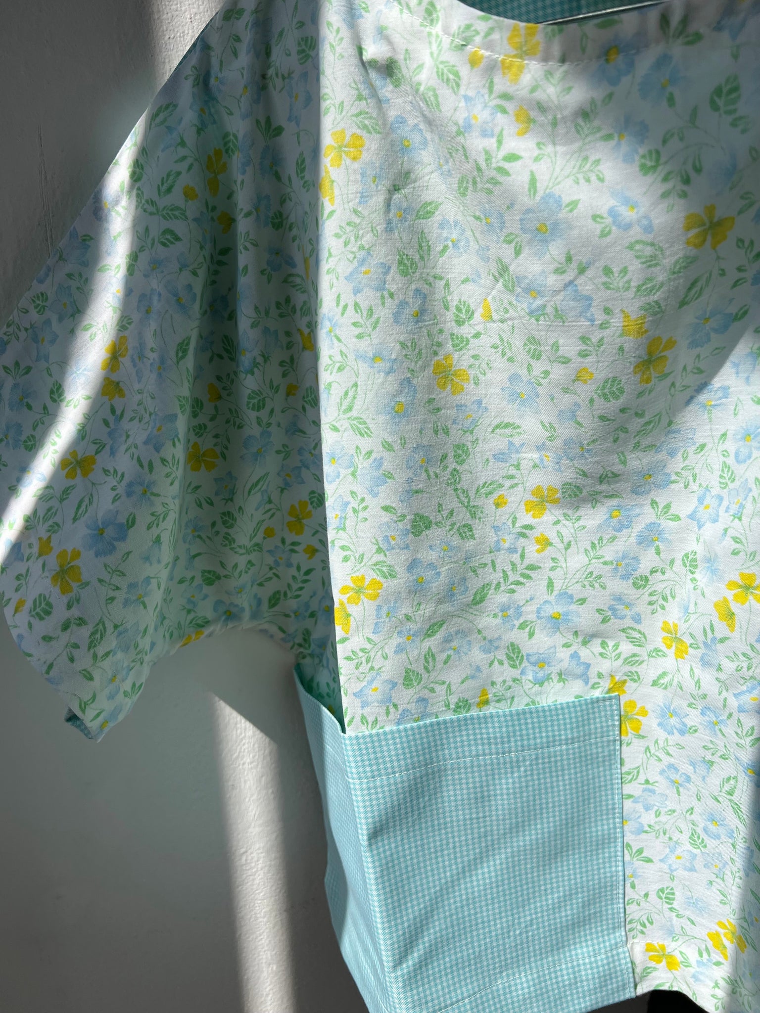 T-shirt Leggerissima con tasche • verde acqua fiorellini gialli