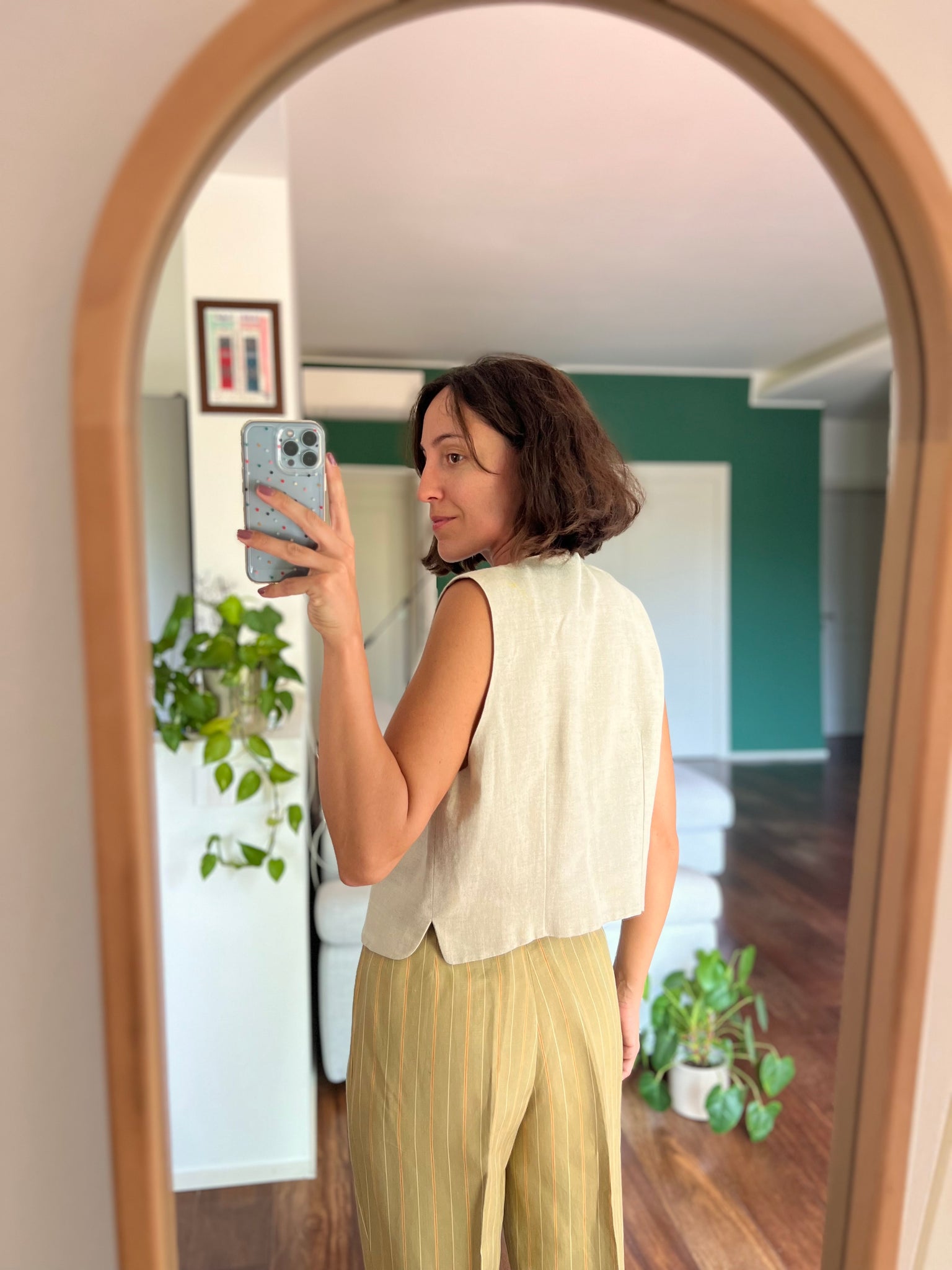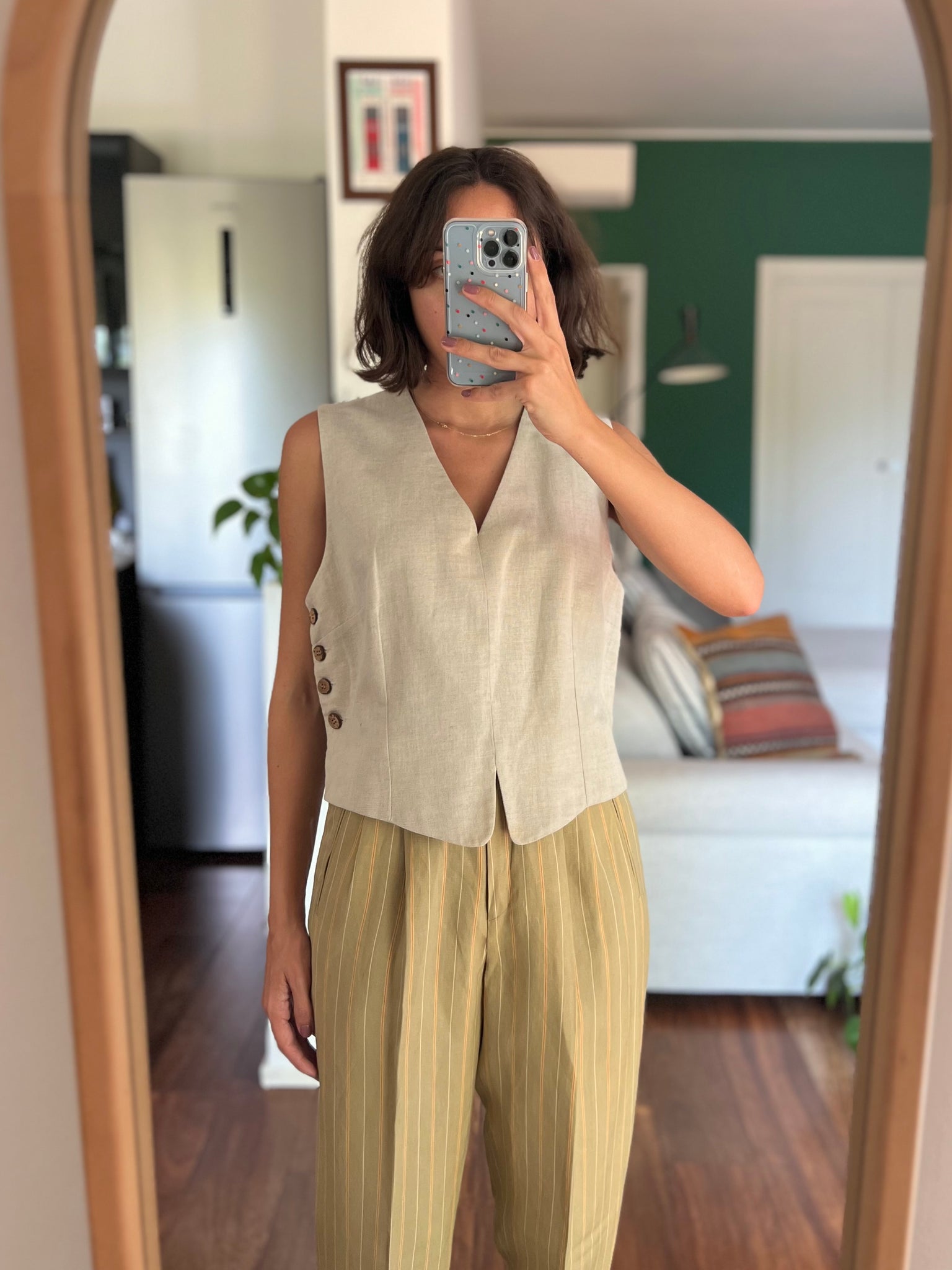 Top vintage modello tipo gilet con bottoni su un solo fianco.