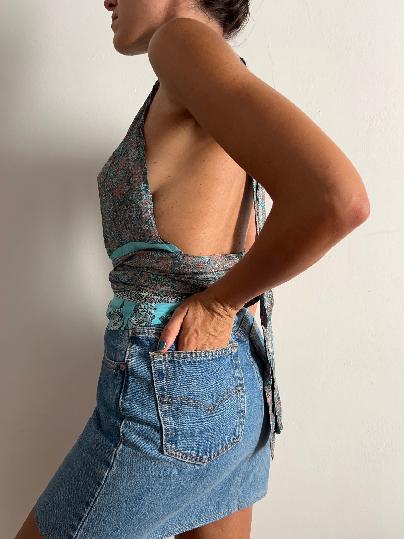 Top Made in India realizzato con tessuto in pura seta proveniente da sari vintage.