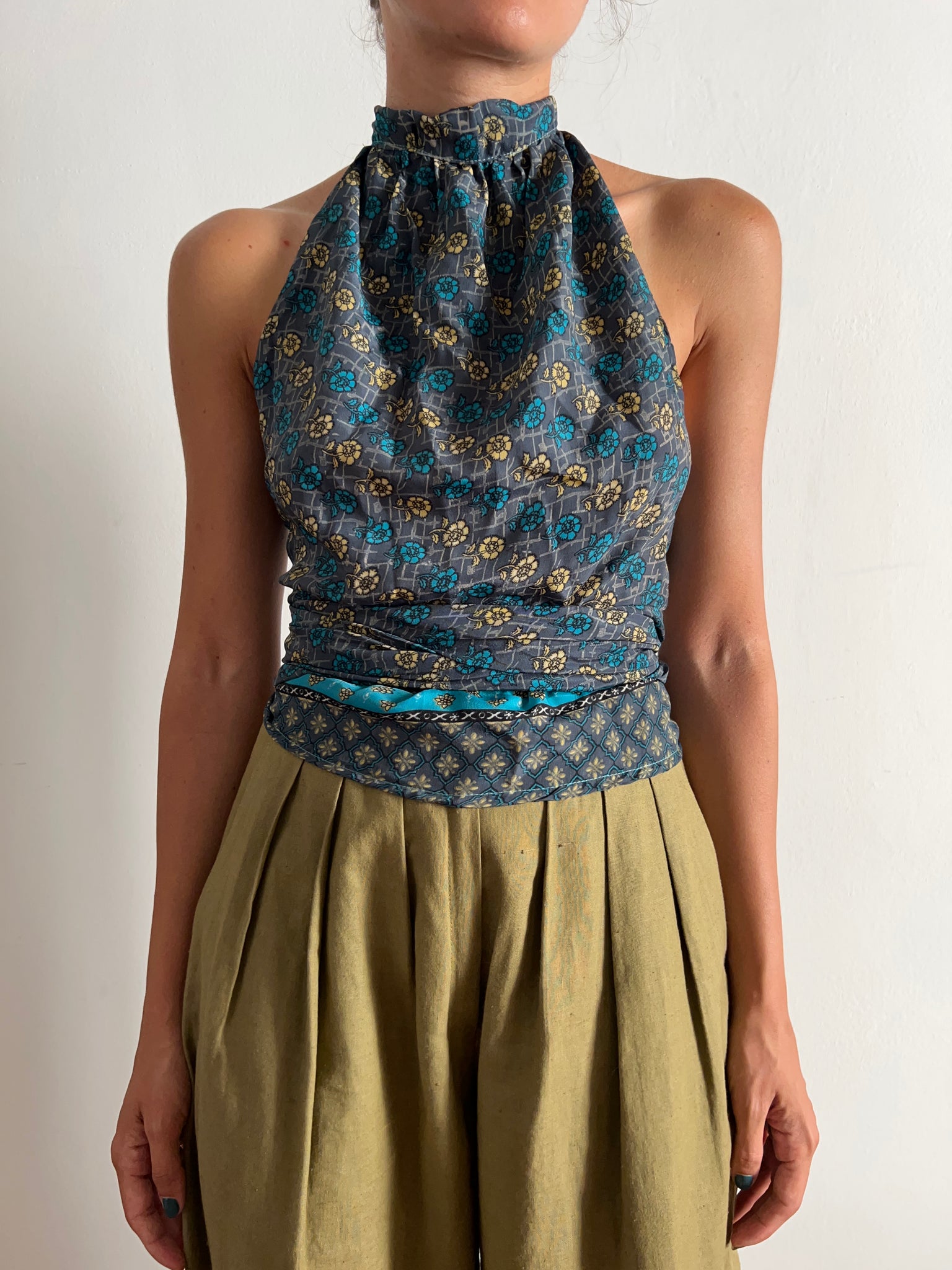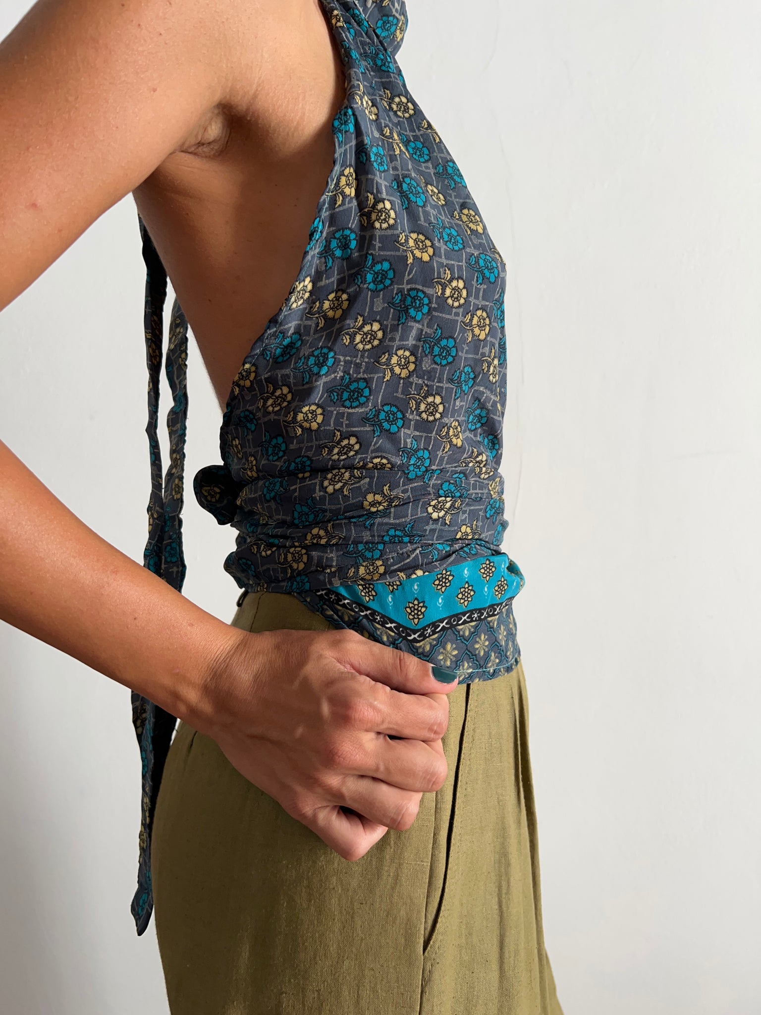 Top Made in India realizzato con tessuto in pura seta proveniente da sari vintage.