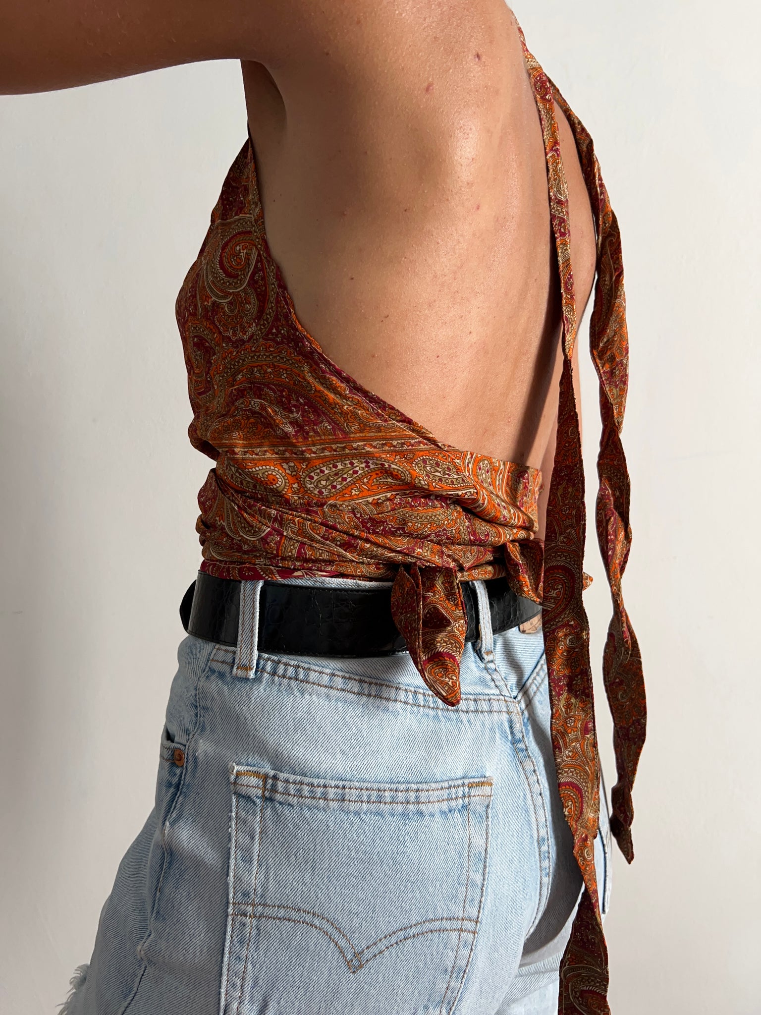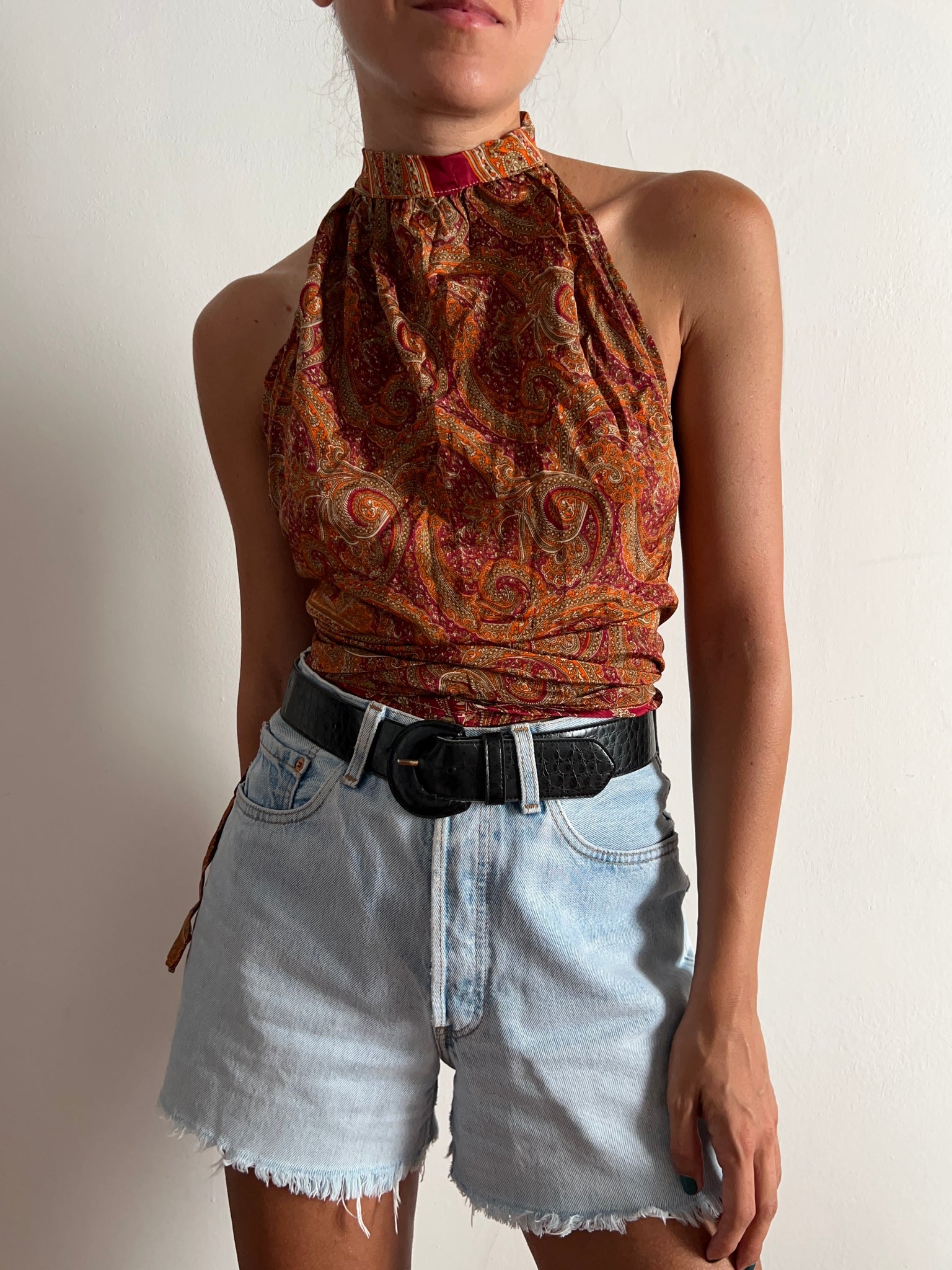 Top Made in India realizzato con tessuto in pura seta proveniente da sari vintage.
