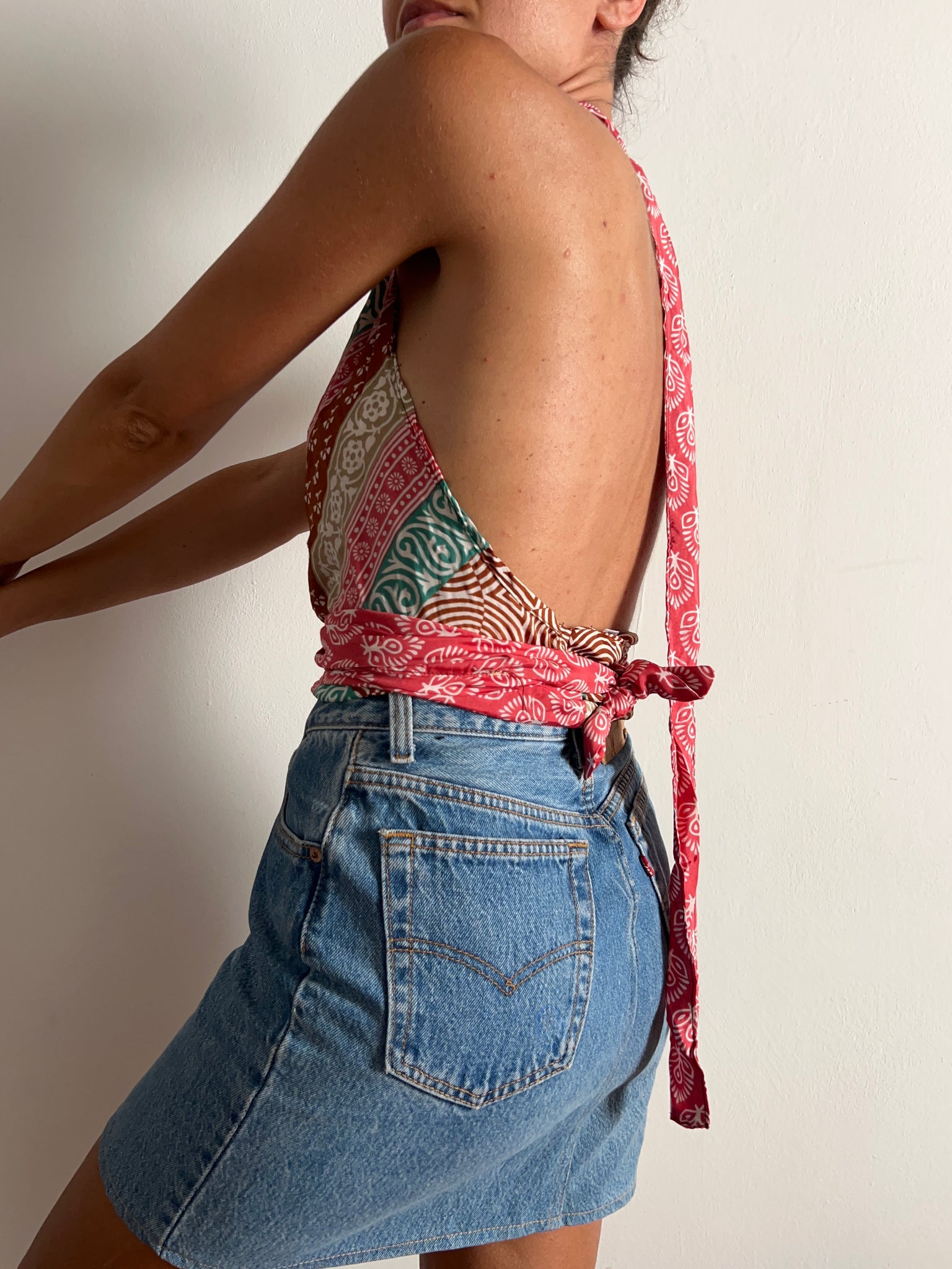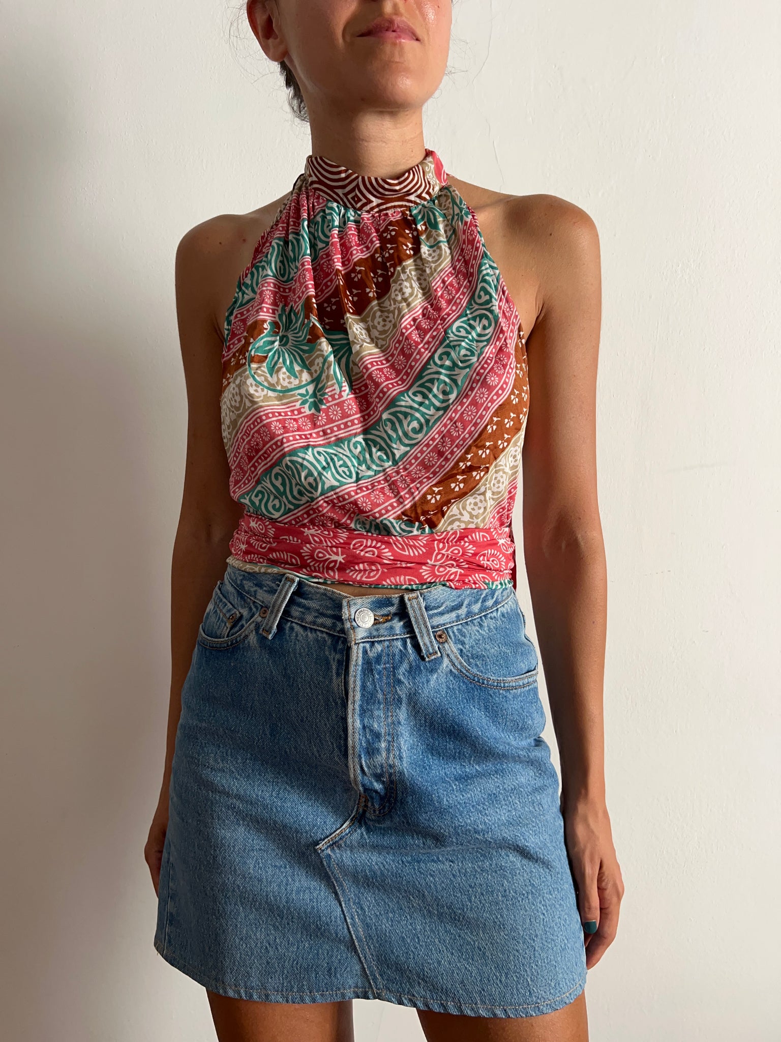 Top Made in India realizzato con tessuto in pura seta proveniente da sari vintage.