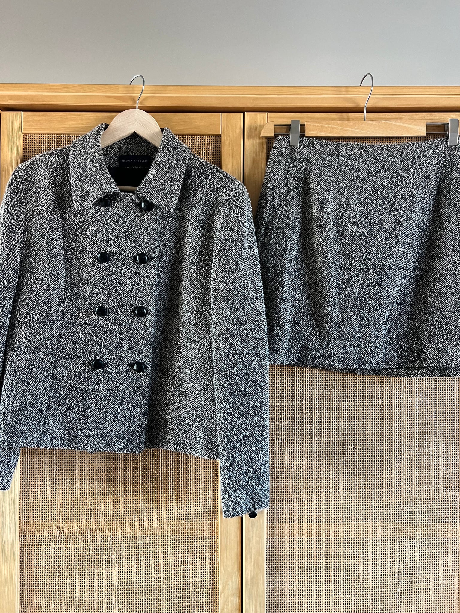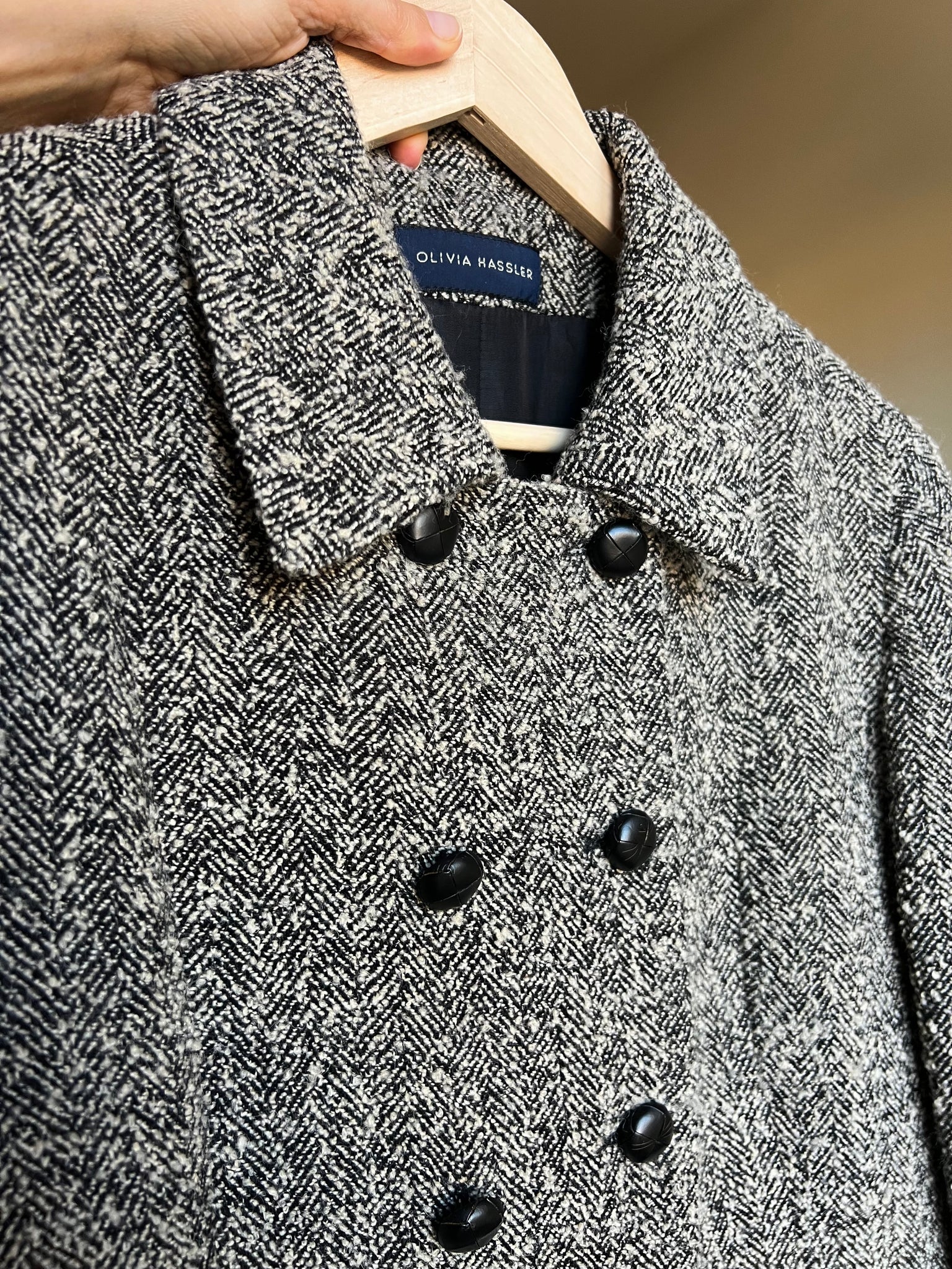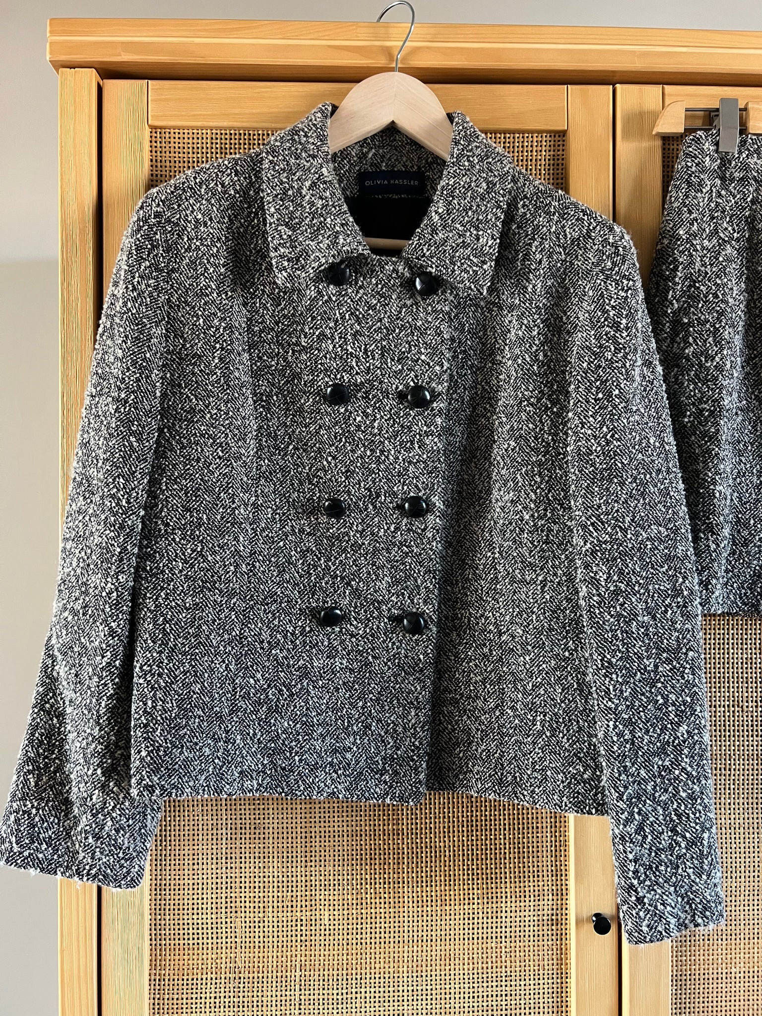 Giacca cortina, doppio petto, con colletto. Spalle 42cm. Lunghezza 54cm.