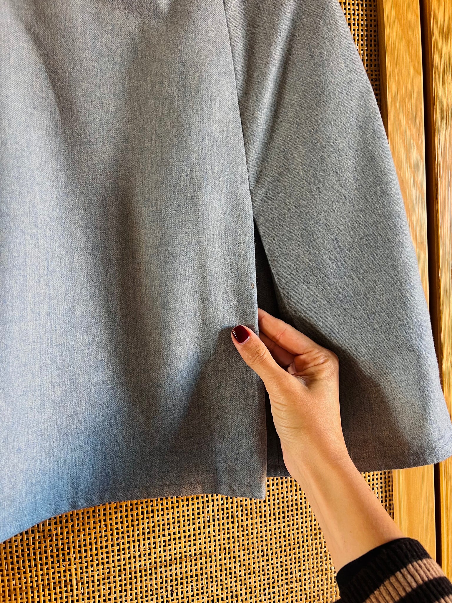 Di chiude dietro con cerniera a scomparsa e bottone.
