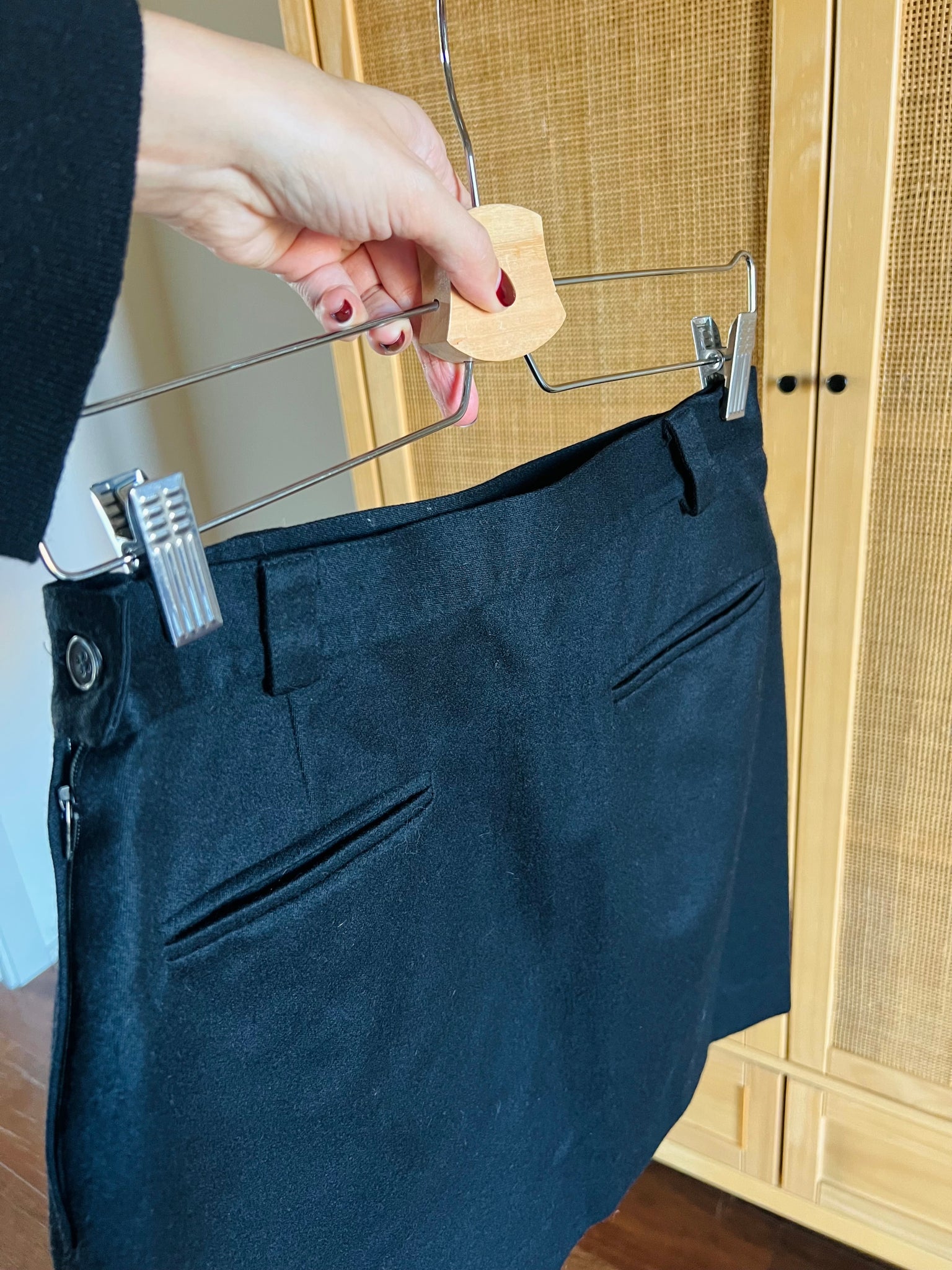 Gonna corta vintage a vita alta con taschine davanti e dietro.