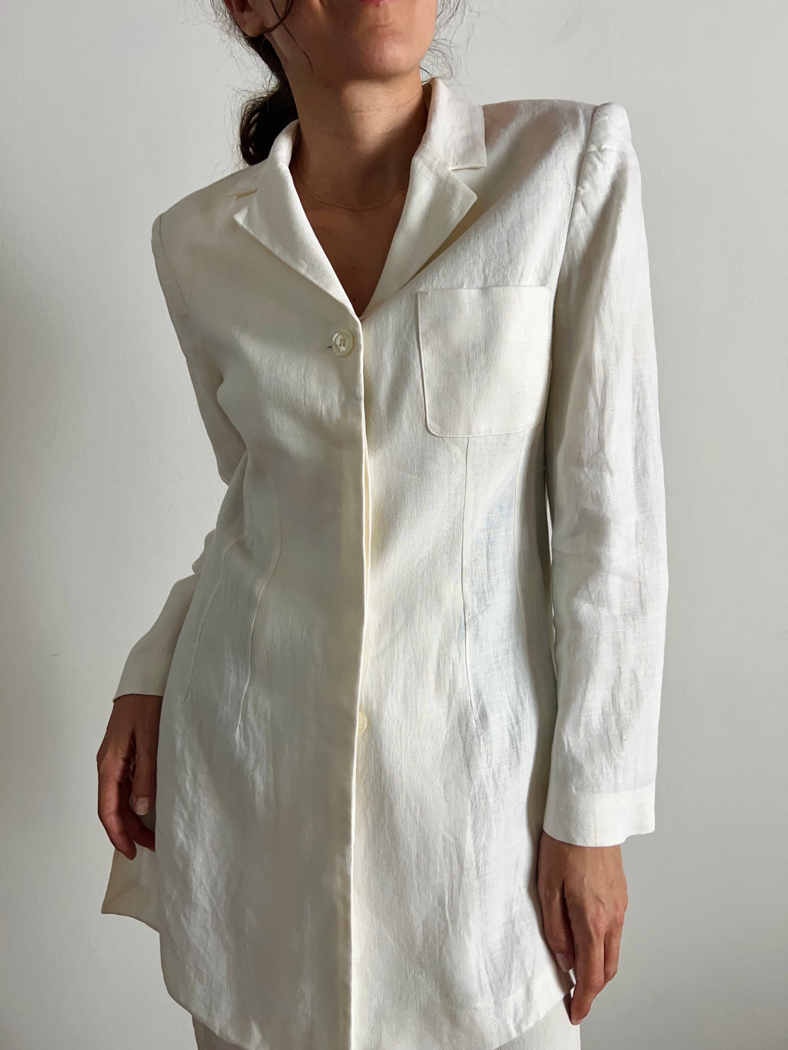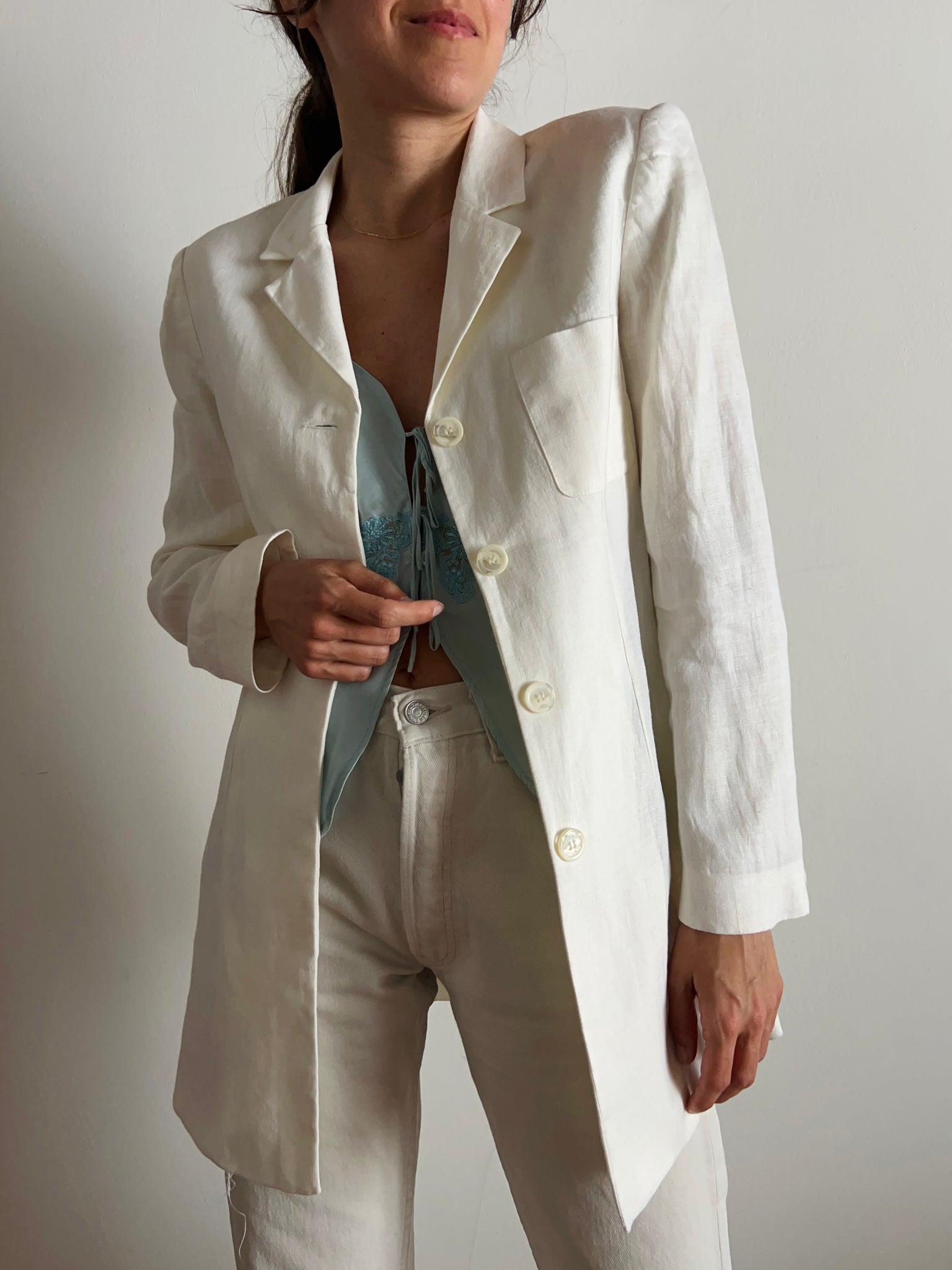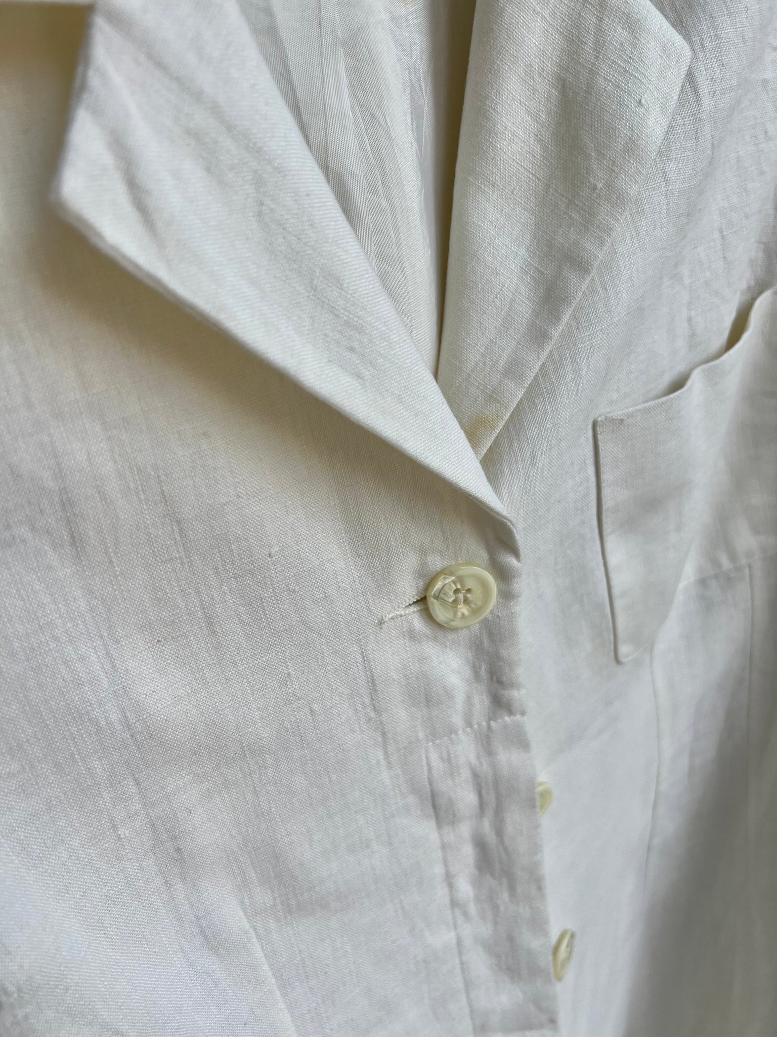 Blazer vintage 100% lino, con primo bottone a vista e gli altri nascosti.