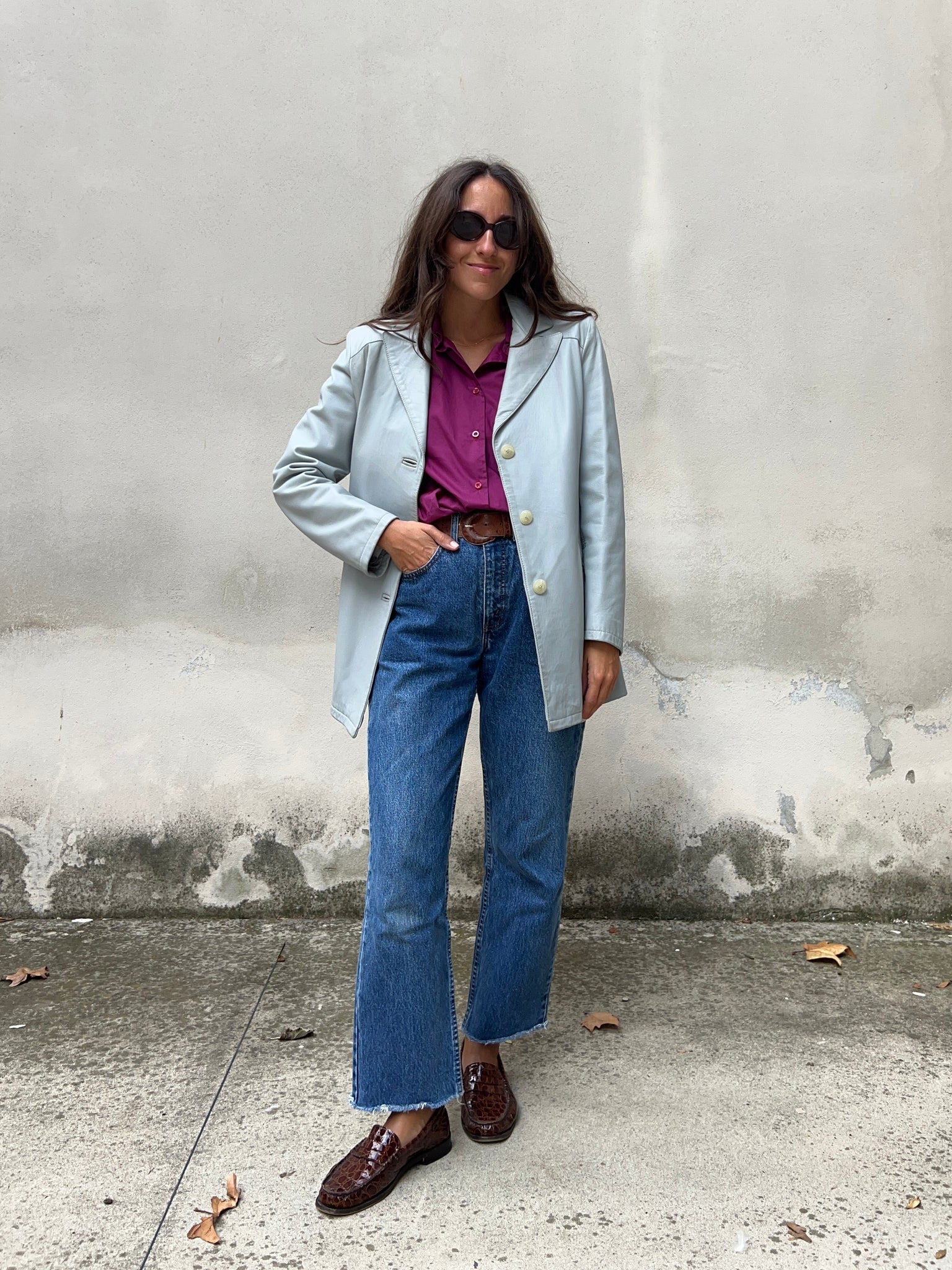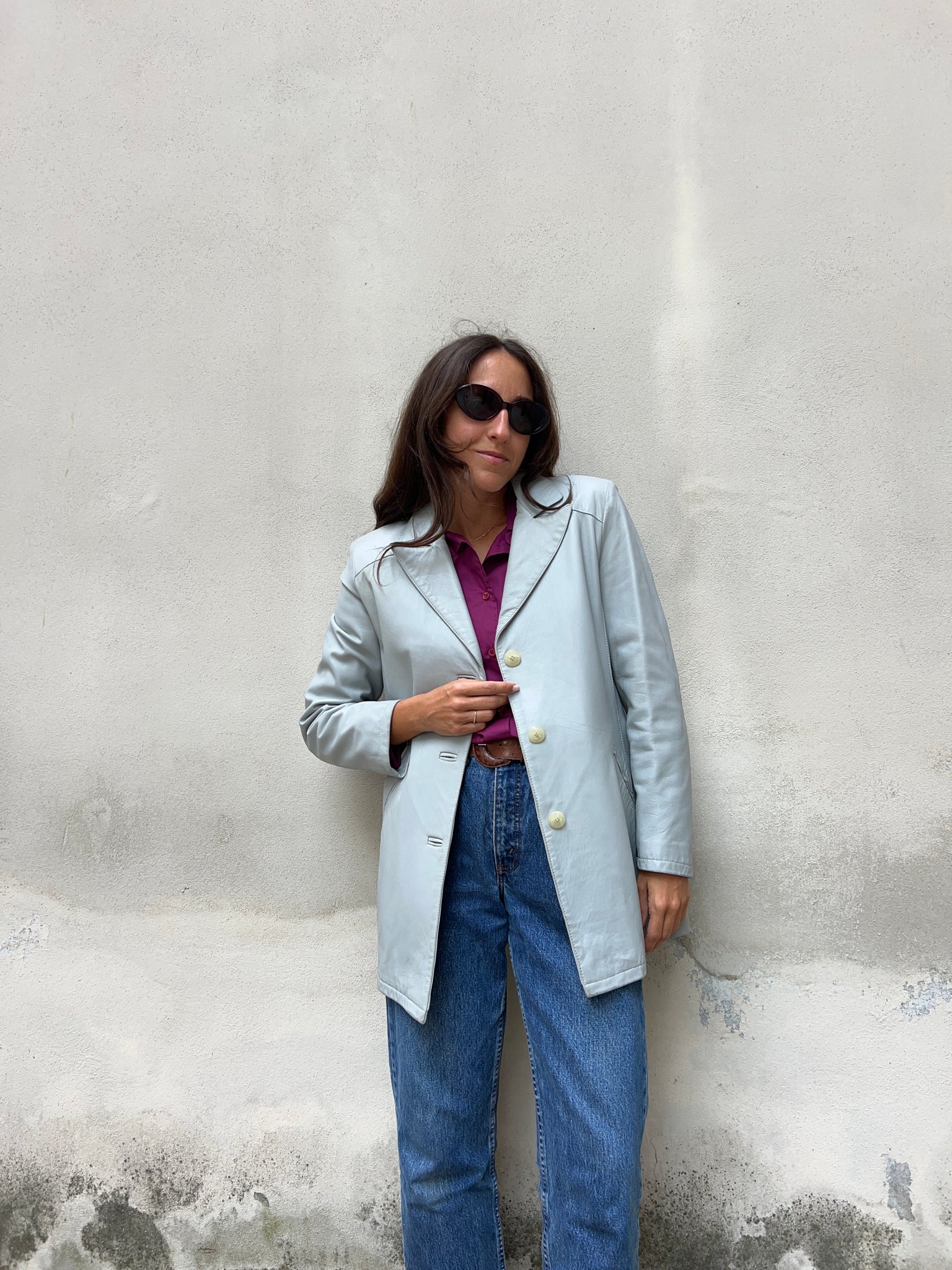 Blazer in pelle grigio-azzurro