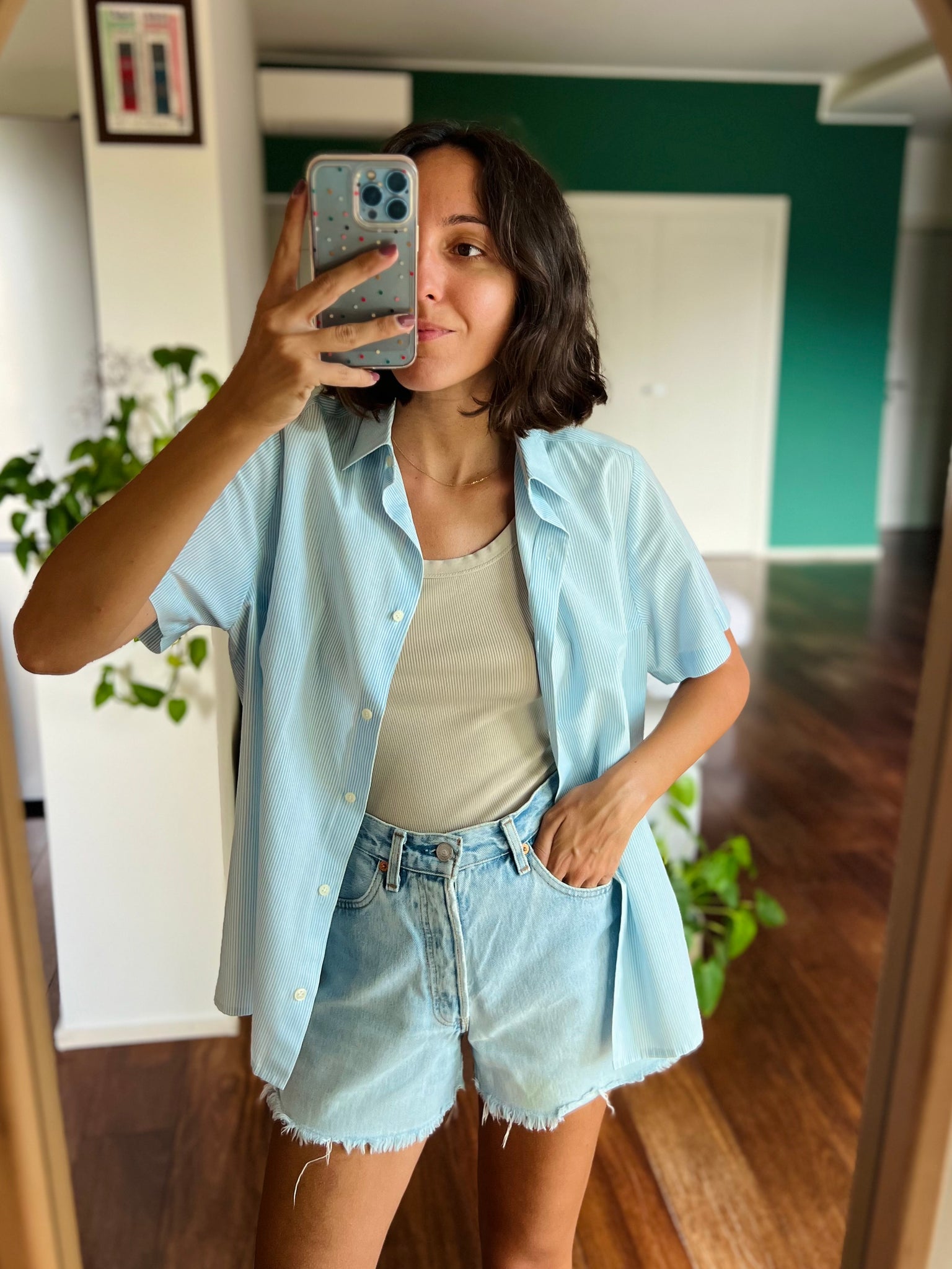 Camicia di cotone righine azzurre