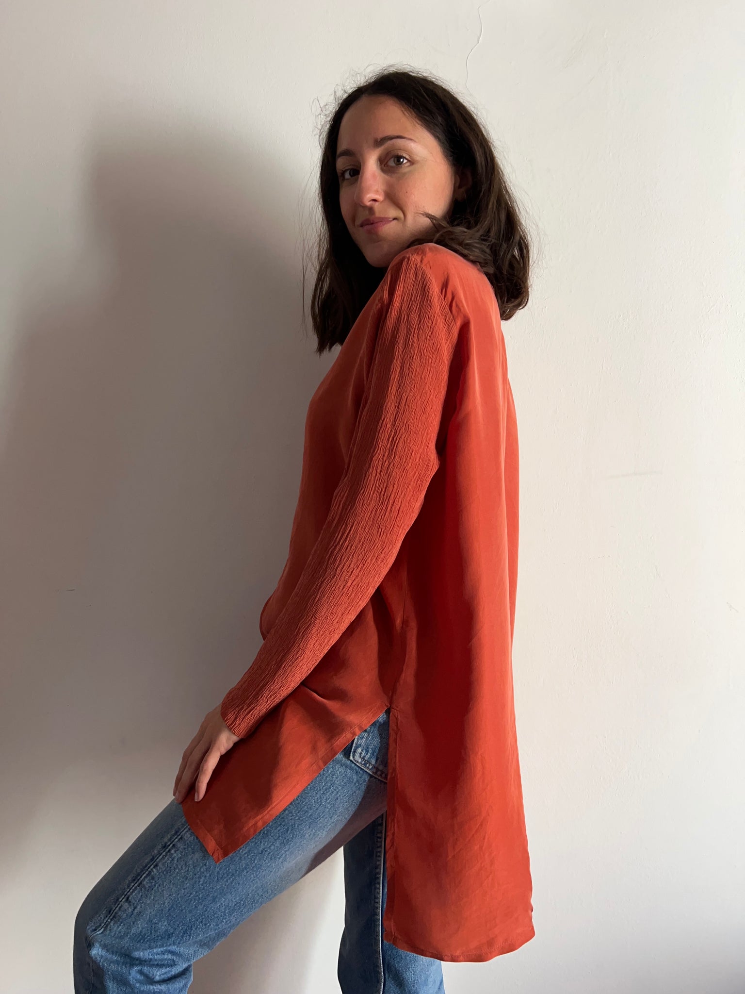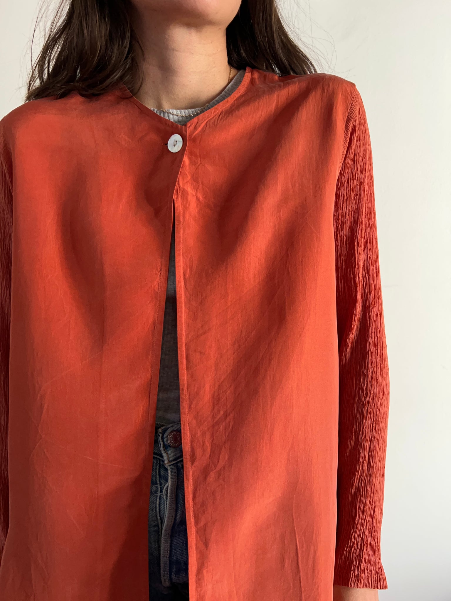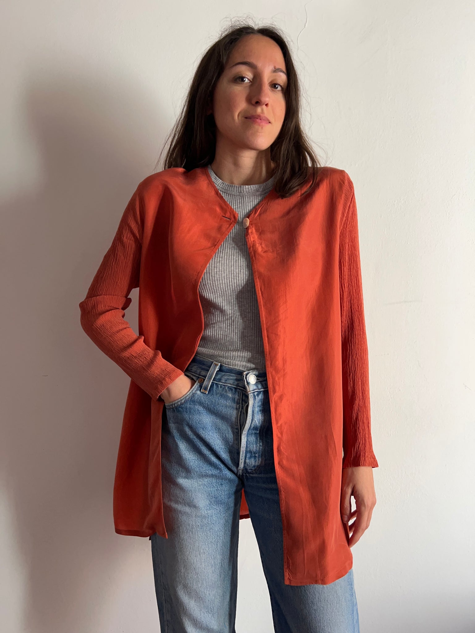 Bellissimo capo vintage in pura seta che è una via di mezzo tra una camicia e un soprabito.