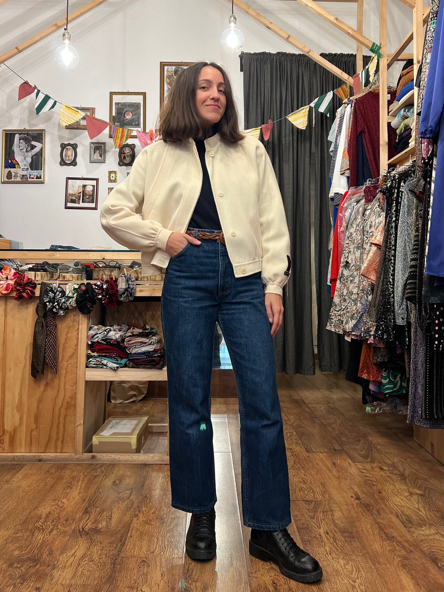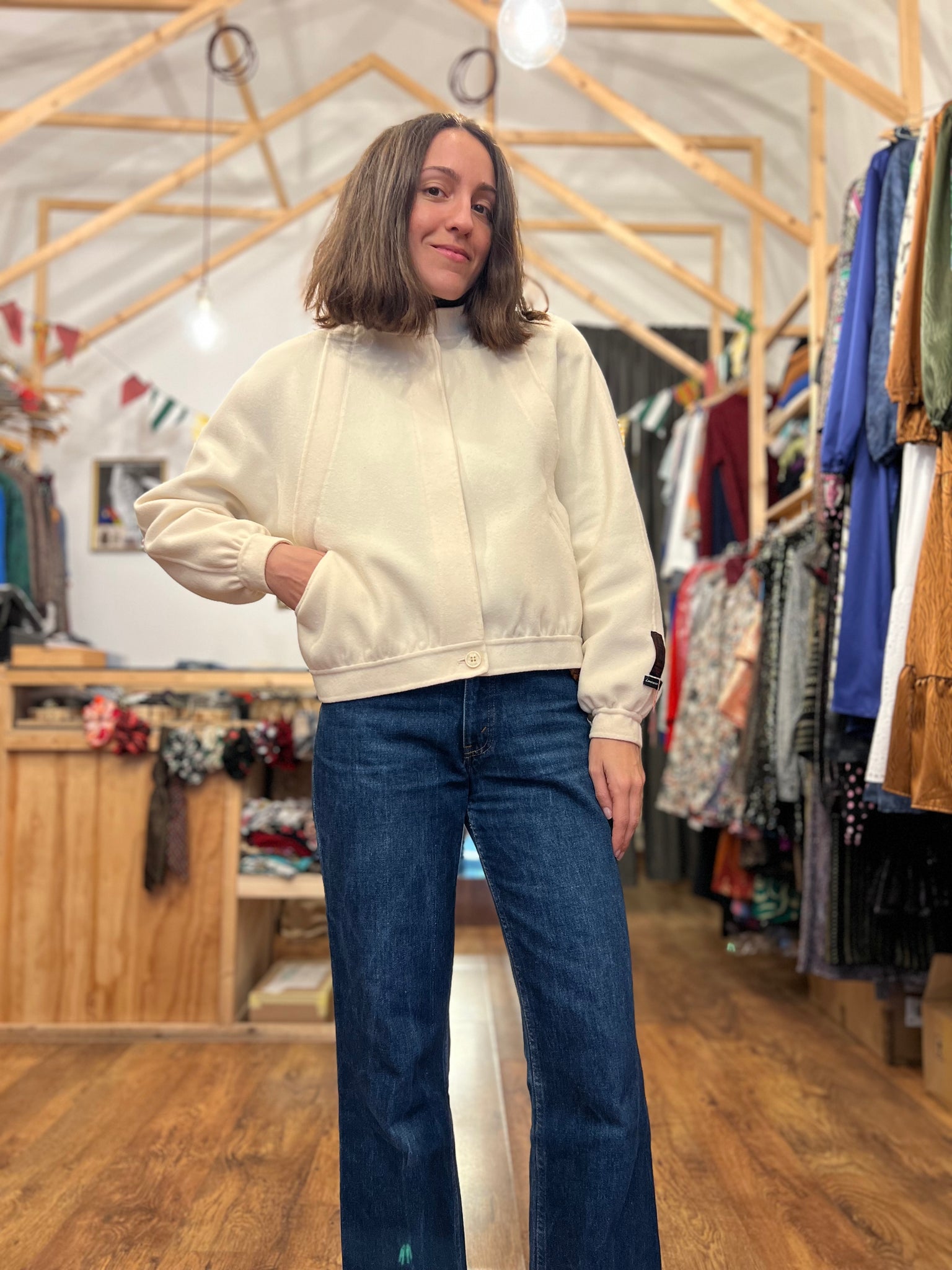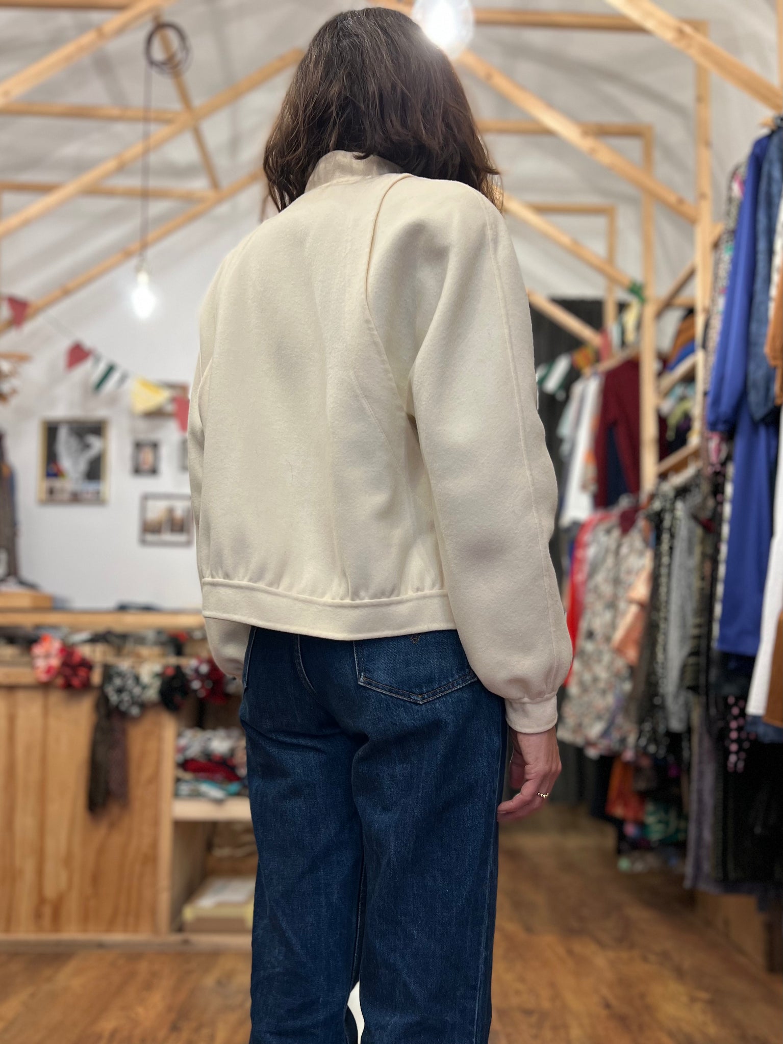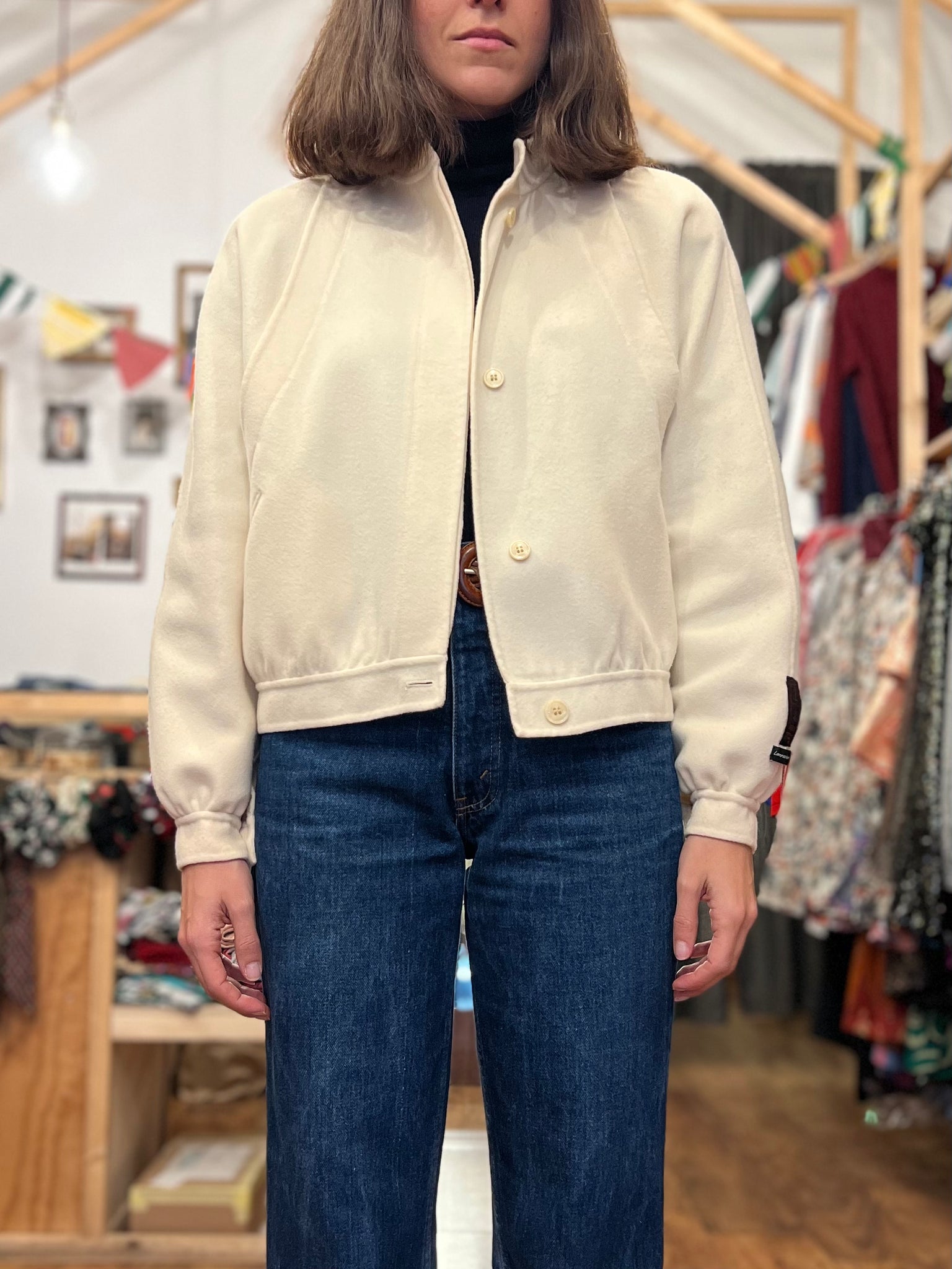 Giacca vintage in pura lana vergine, modello corto stile bomber. Taglia S.