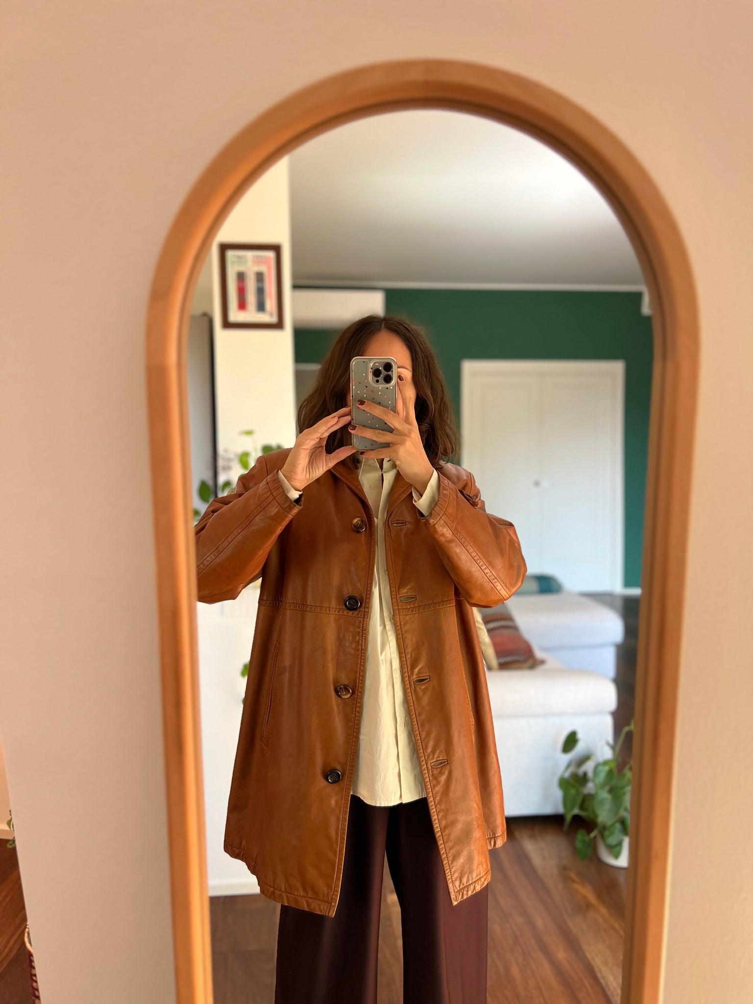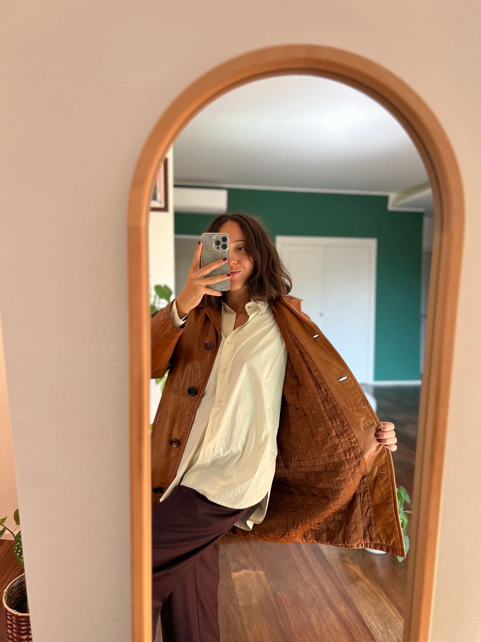 È foderata internamente con una leggera imbottitura. Taglia indicata 42, veste abbondante.