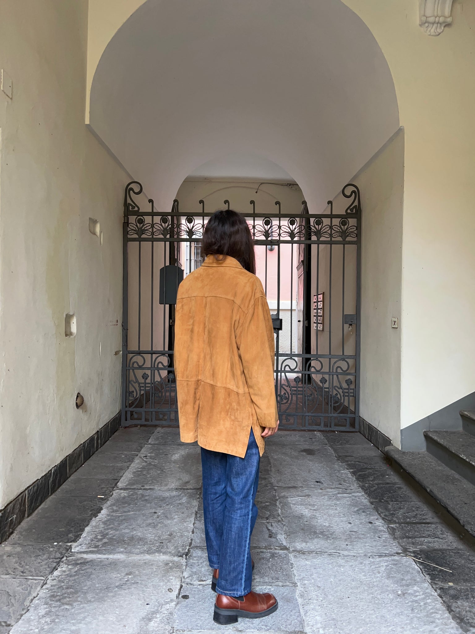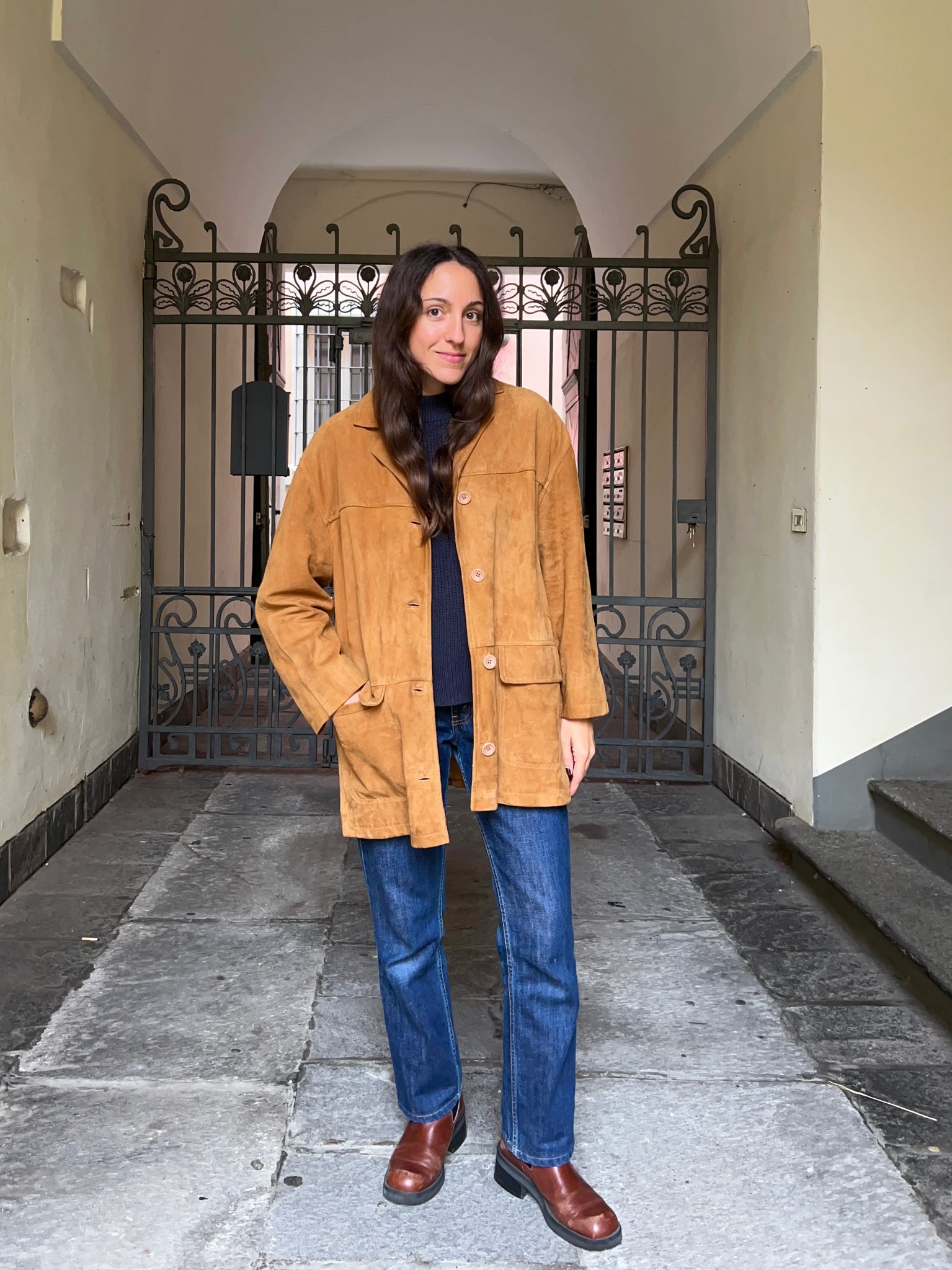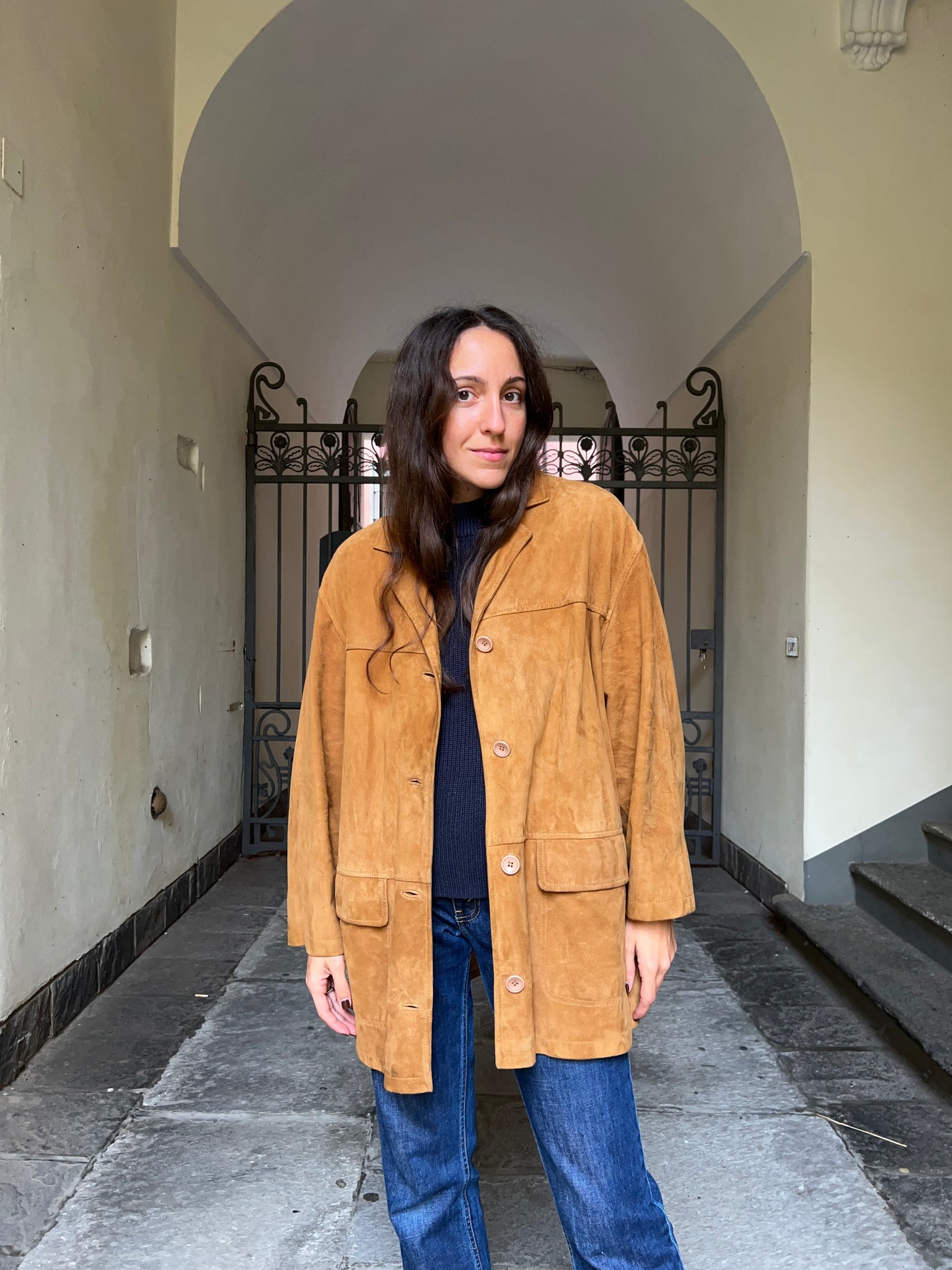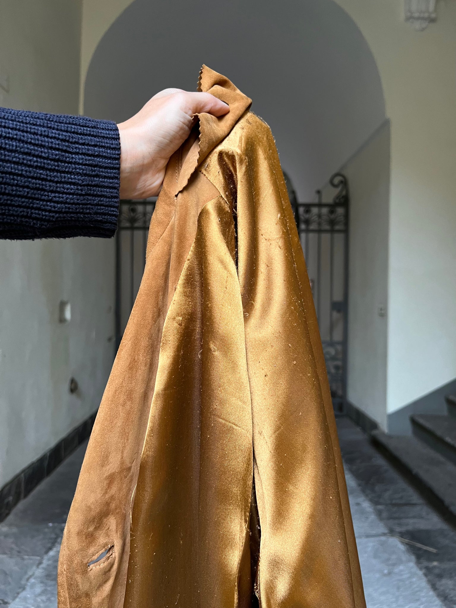 Ha un paio di piccole macchiette ma come potete vedere non si notano quasi. La fodera ha fatto qualche filetto, vedi ultima foto.