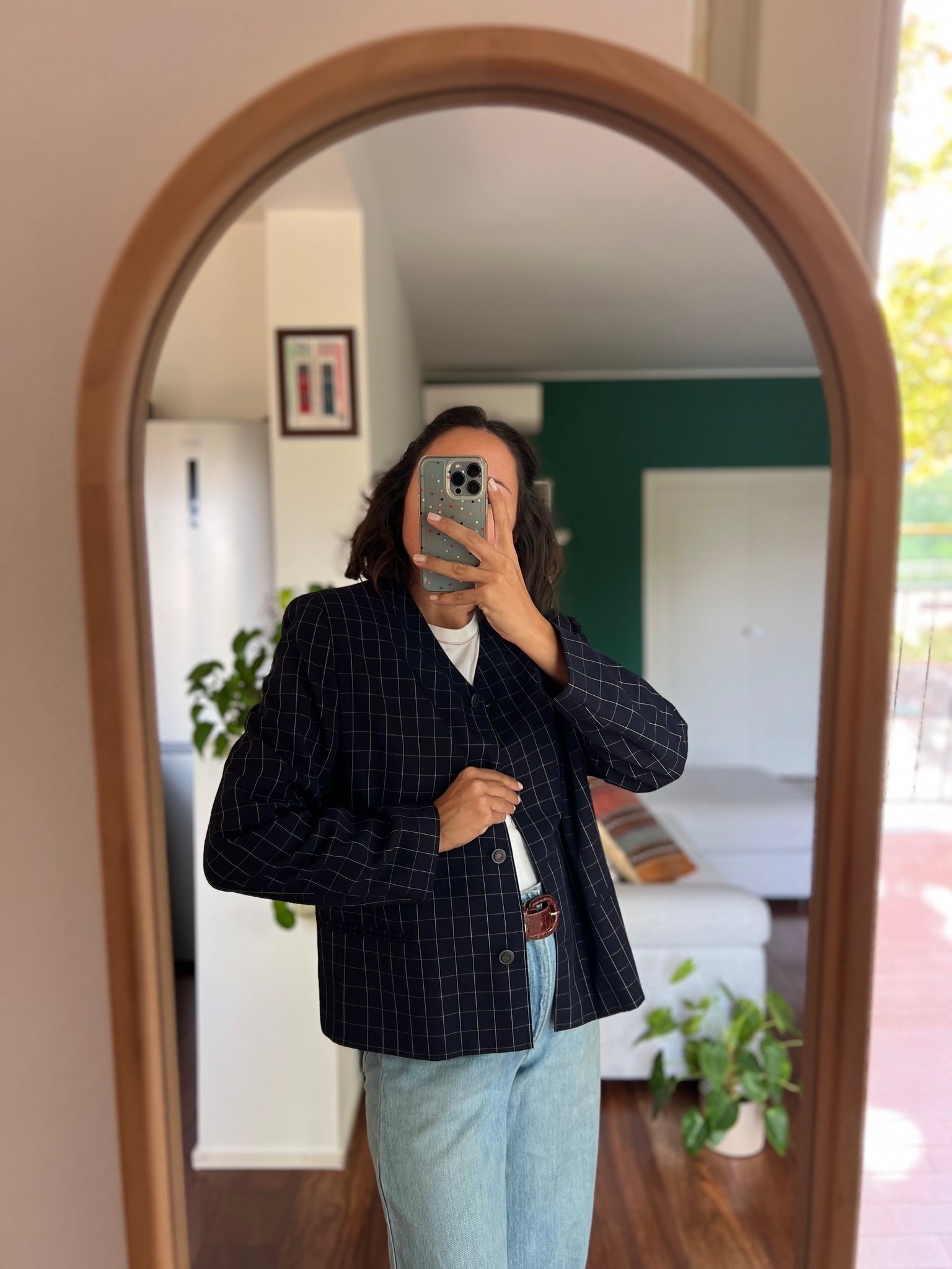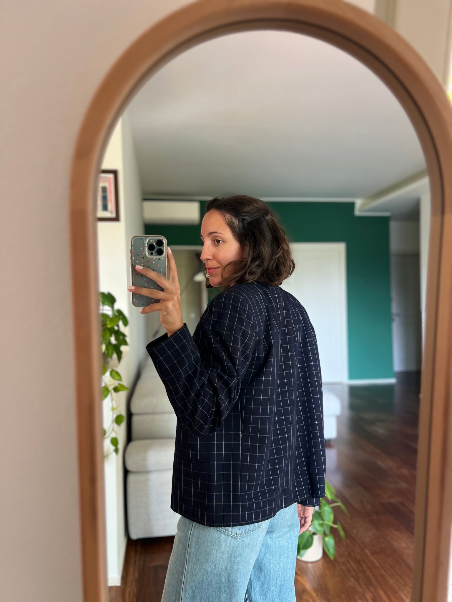 Giacca squadrata blu a quadretti