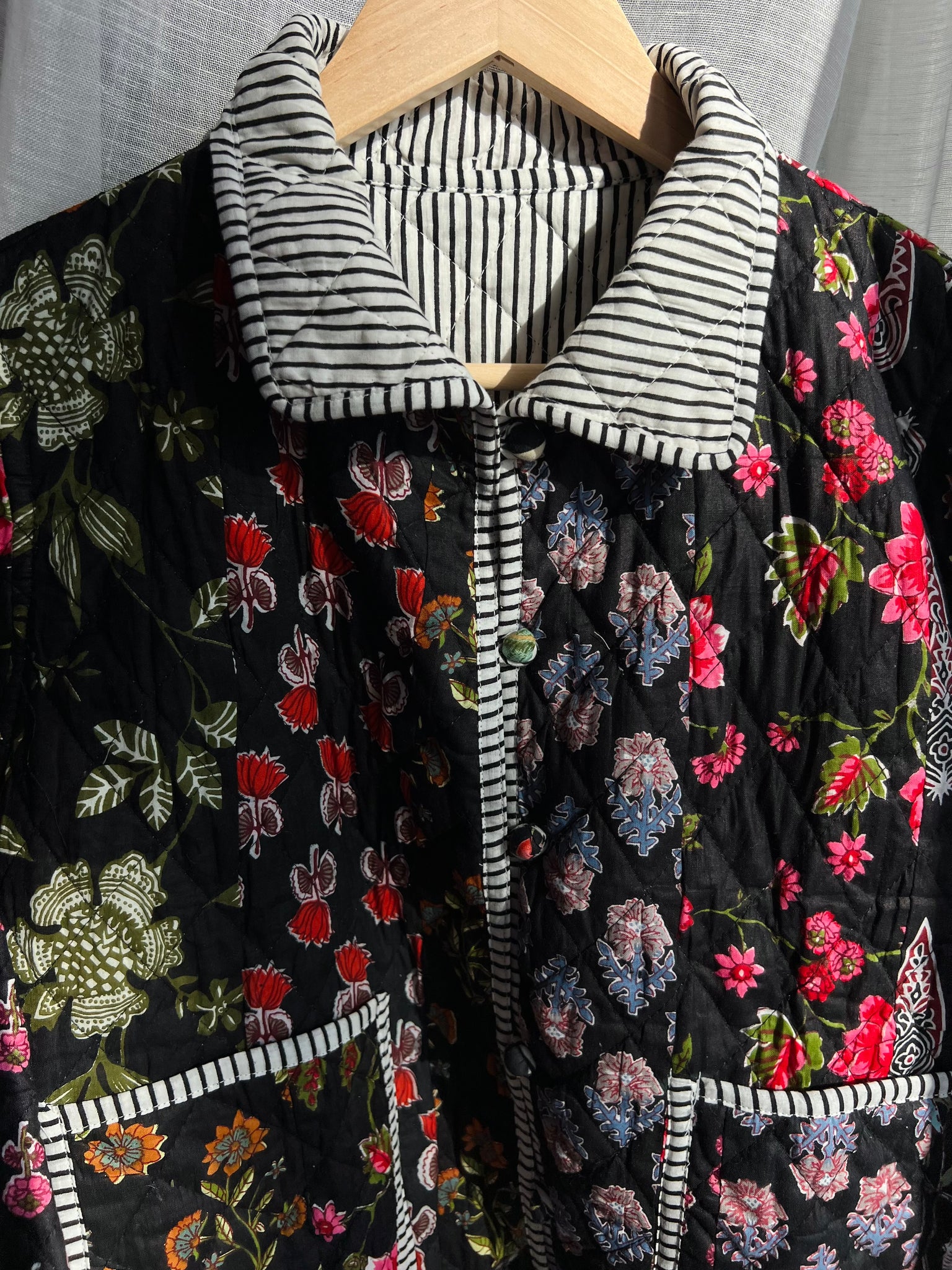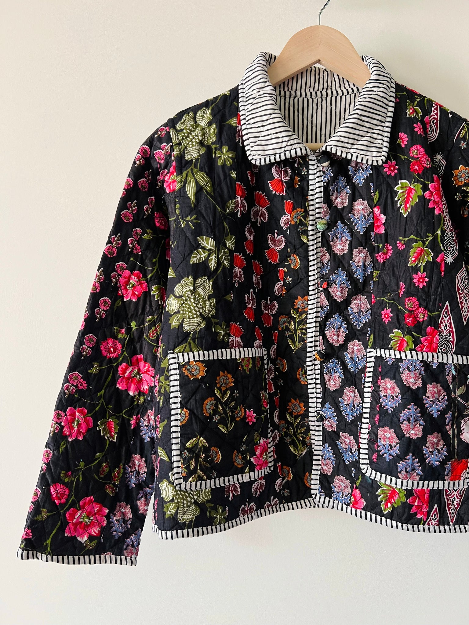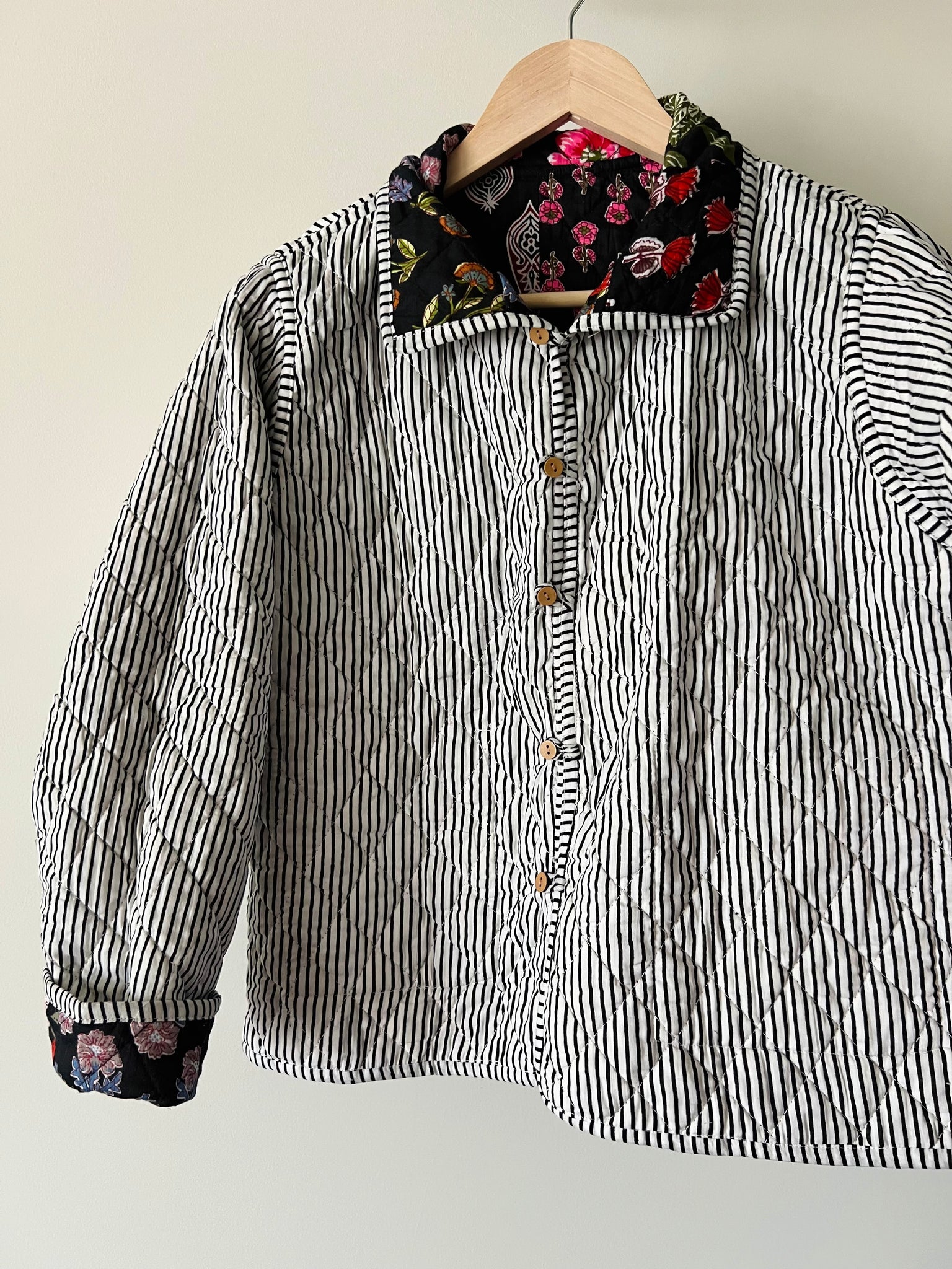 Giacca trapuntata double-face • modello con colletto • nera