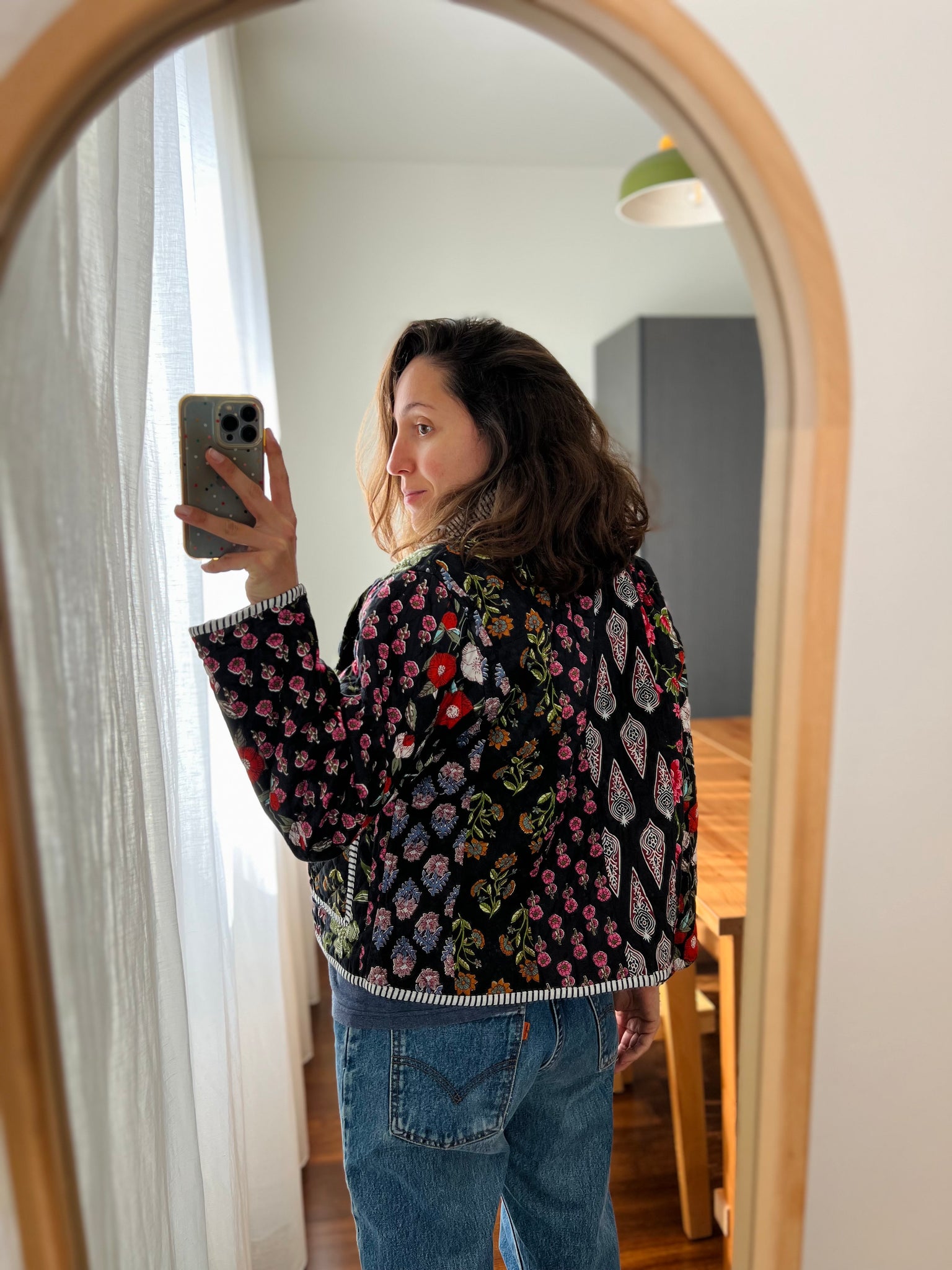 Si può indossare da entrambi i lati, da un lato ha i bottoncini a pallina ricoperti, dall’altro piatti.