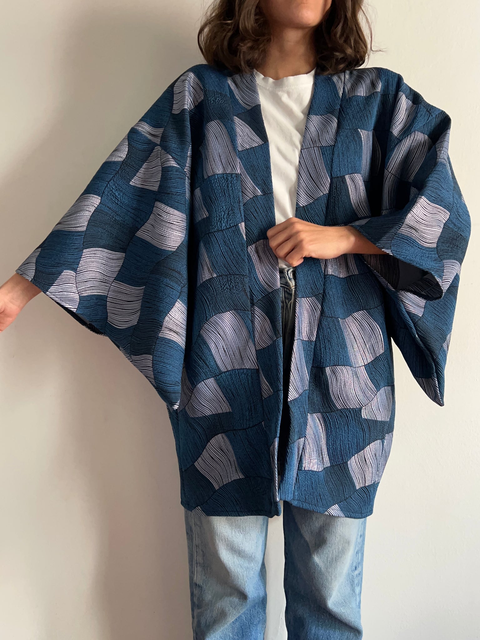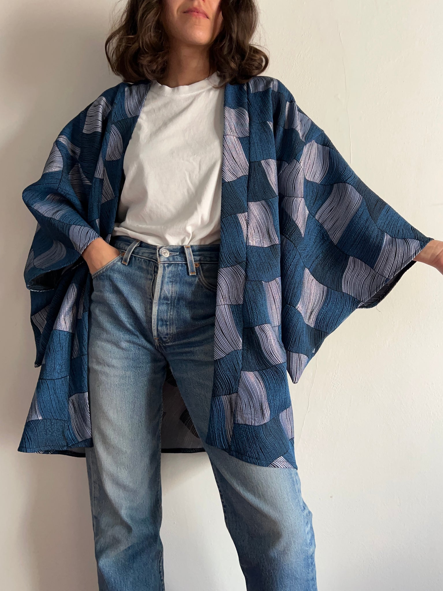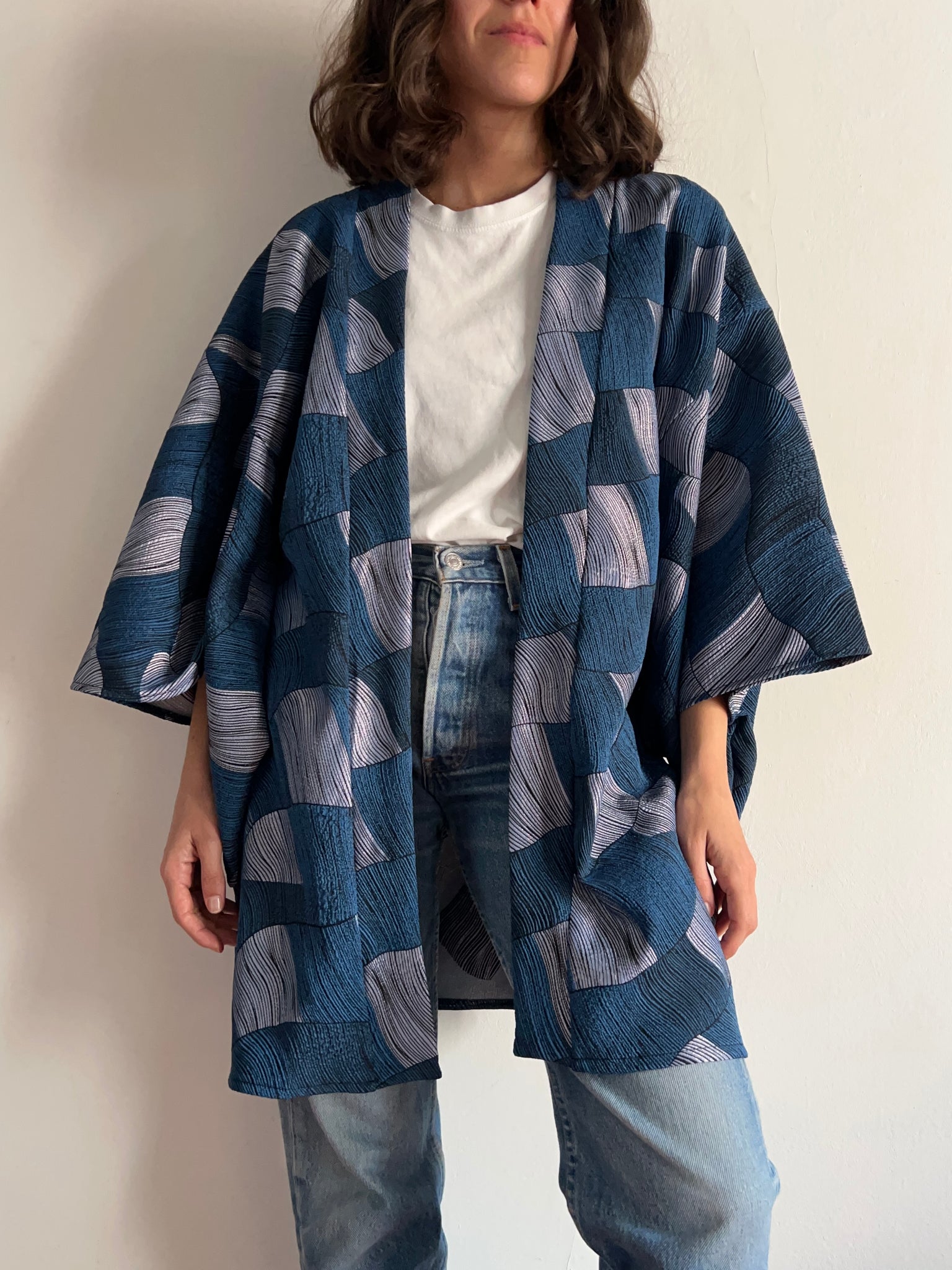 Kimono jacquard blu